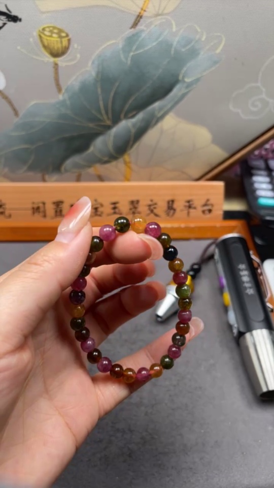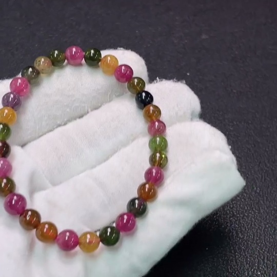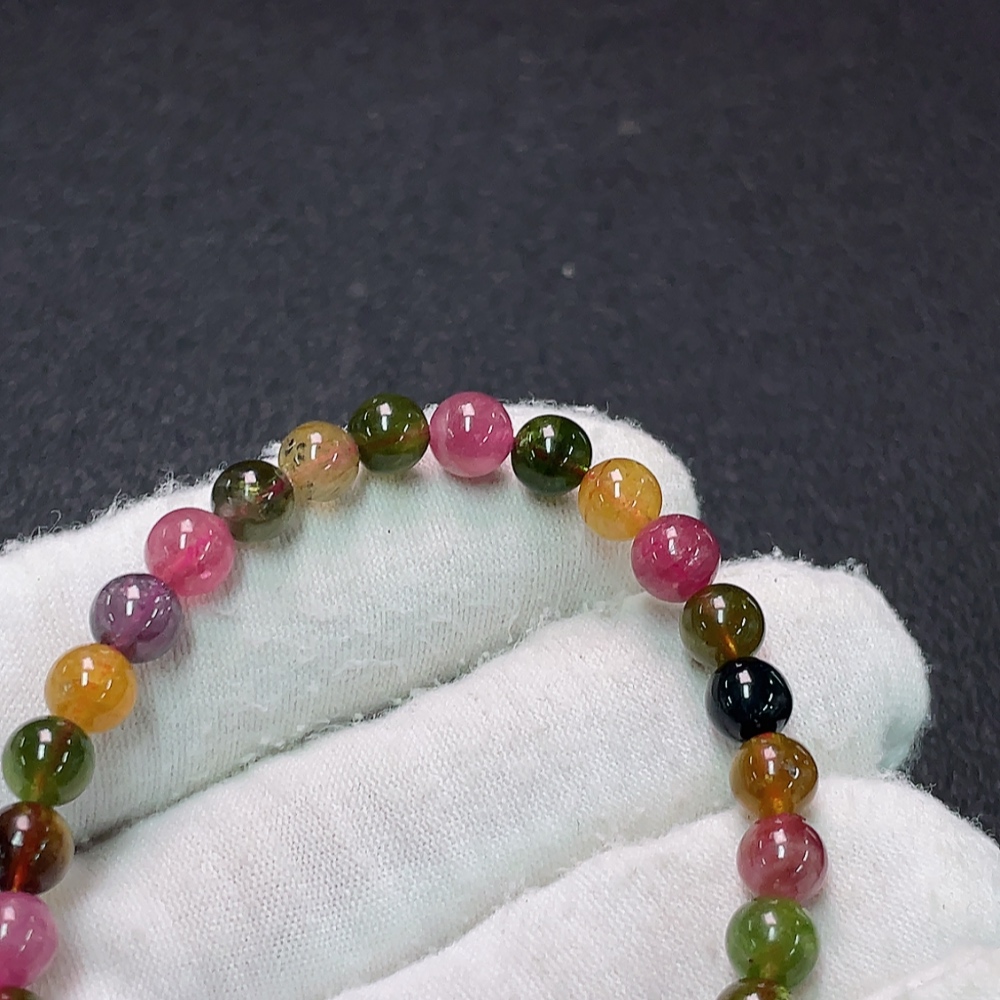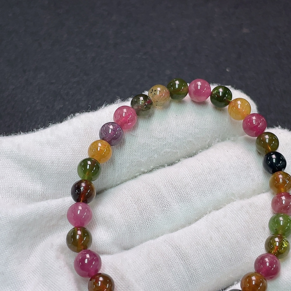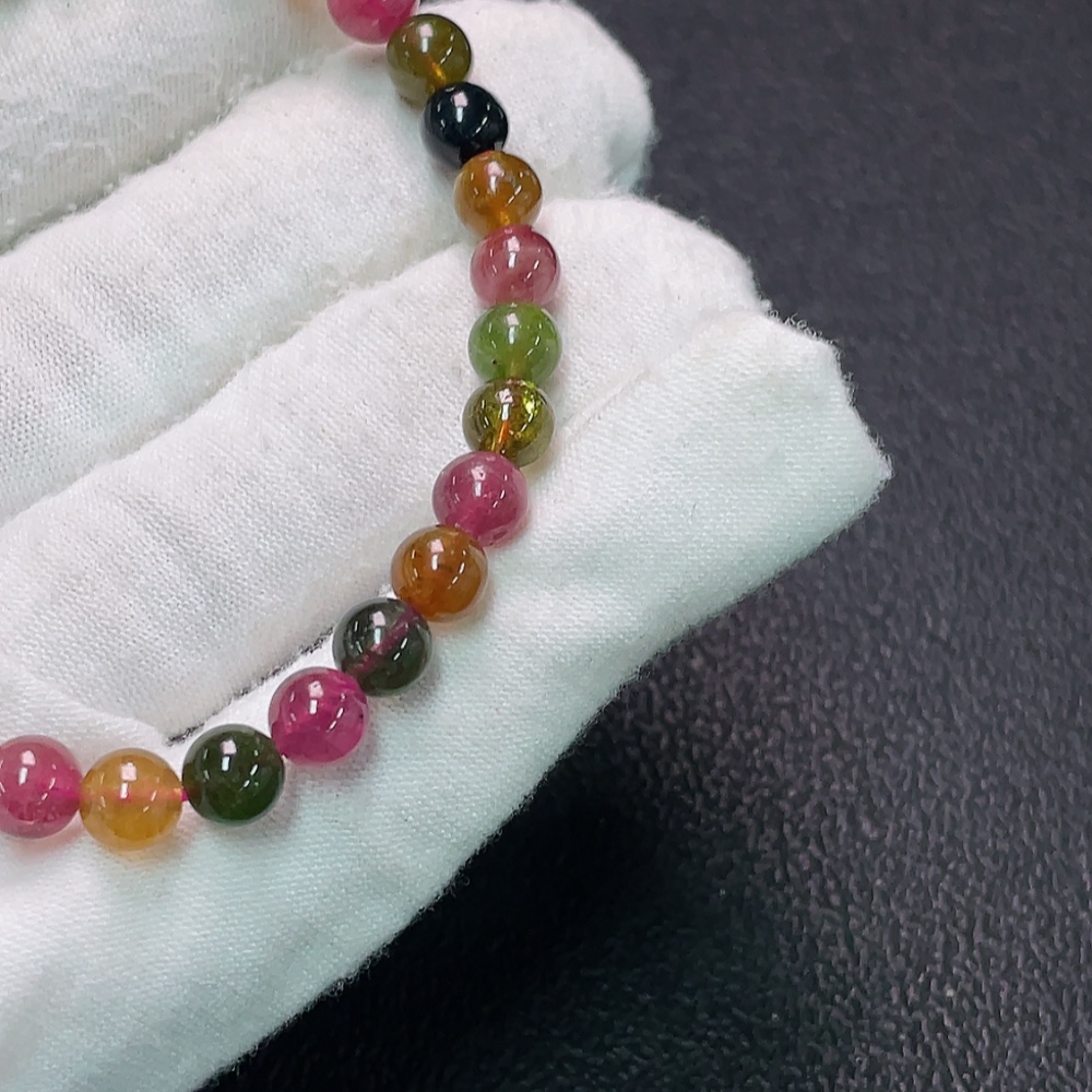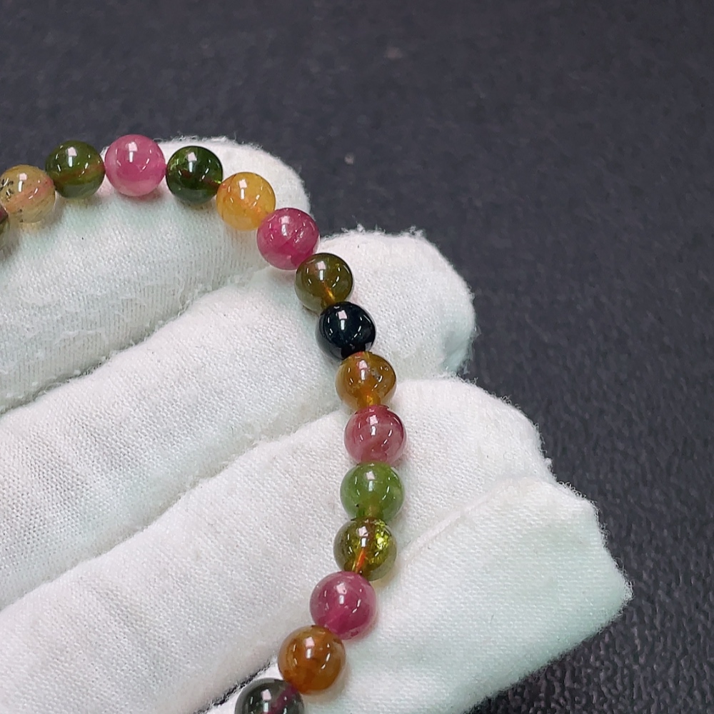 Tourmaline bracelet containing other mineral components with visible organic matter, total weight approximately 10.5g, size about 6.1mm