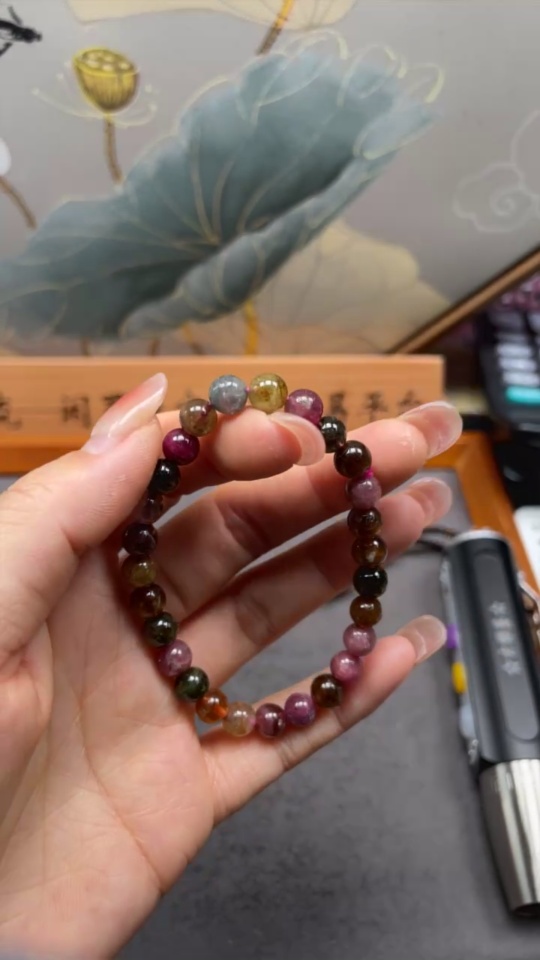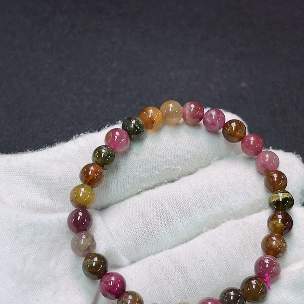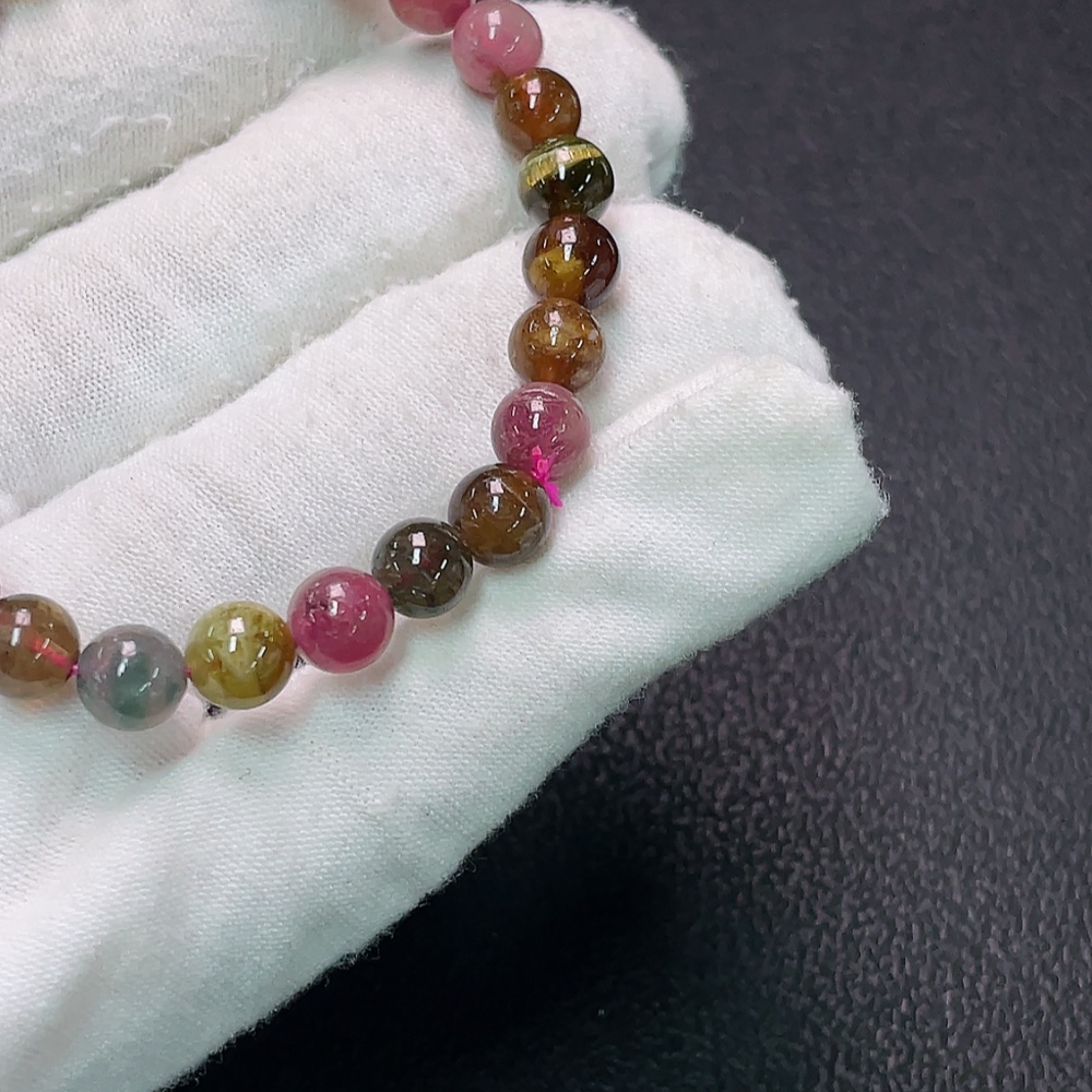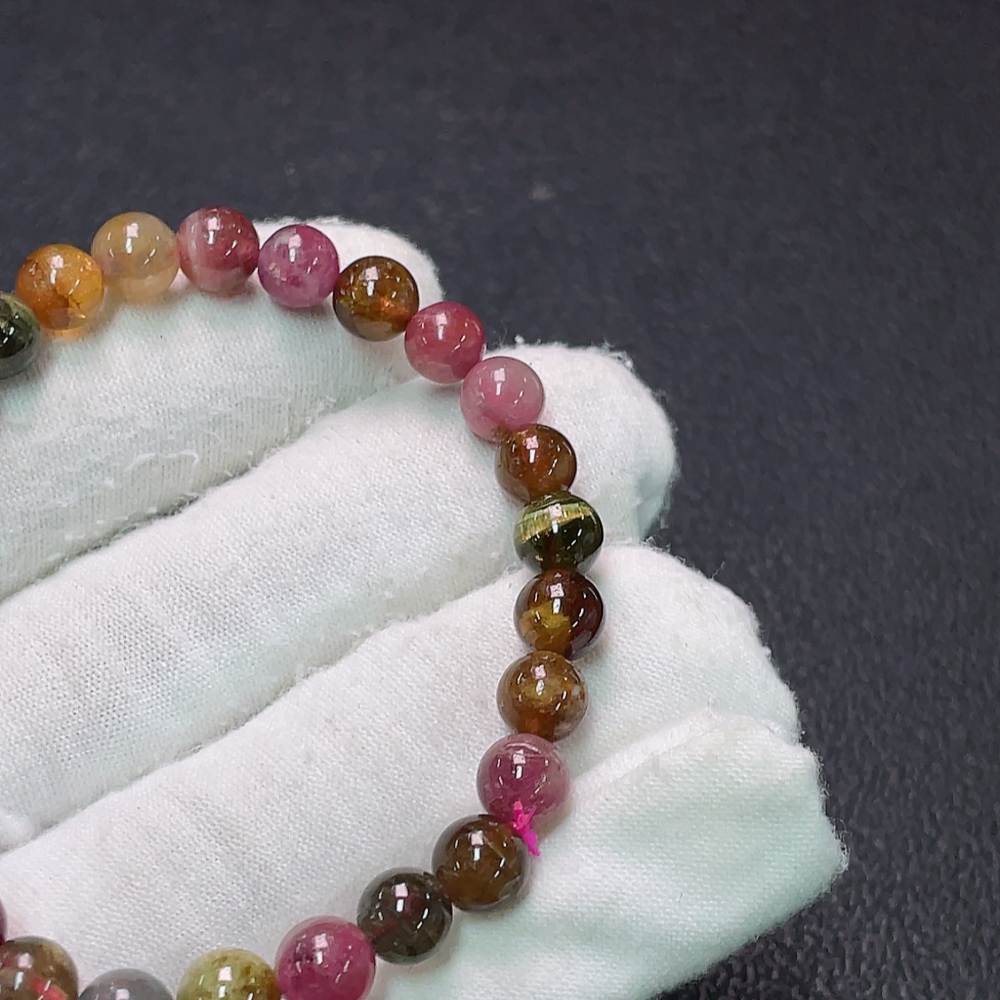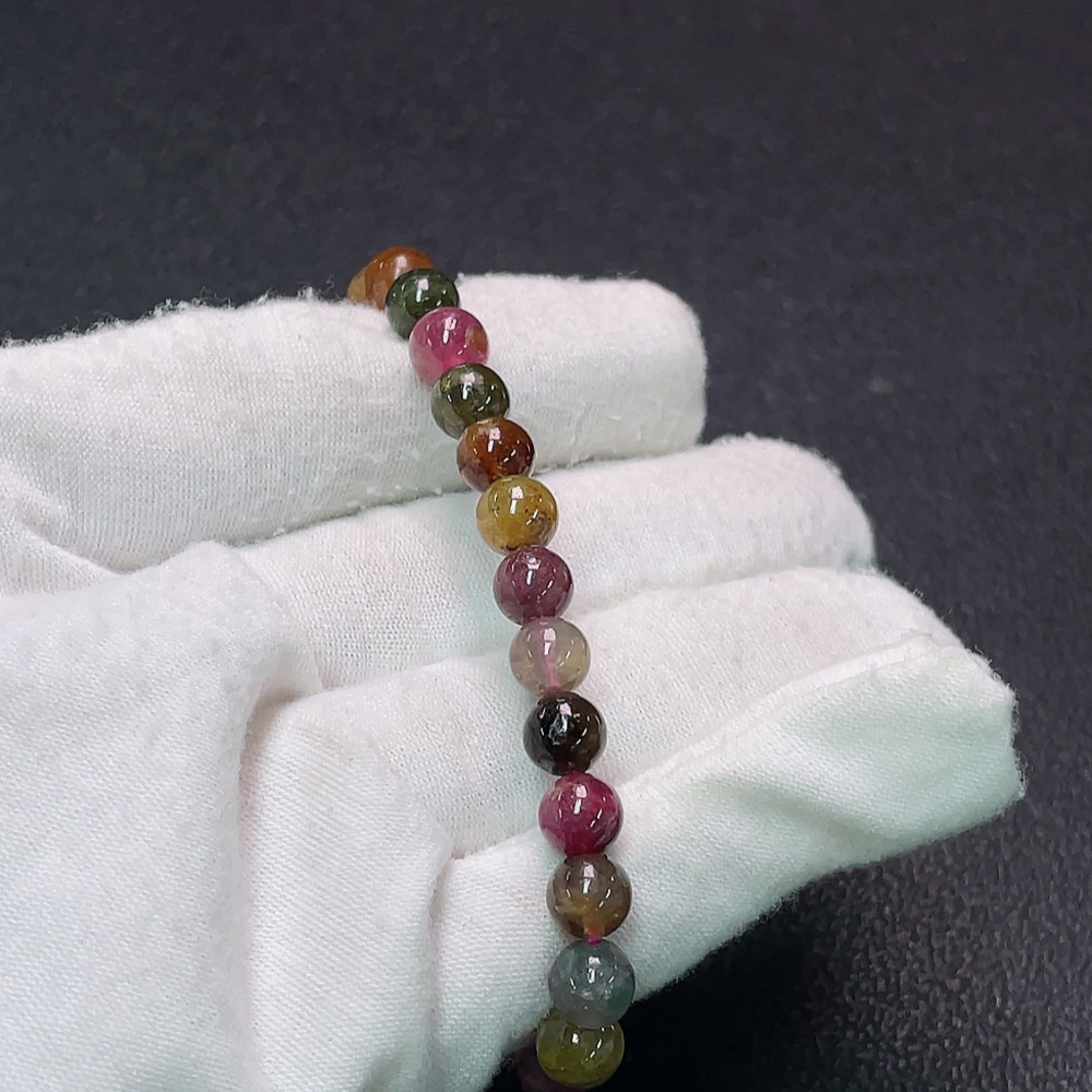 Tourmaline Bracelet with Other Mineral Components, Visible Organic Matter, Total Weight Approx. 12.58g, Size About 6.7mm