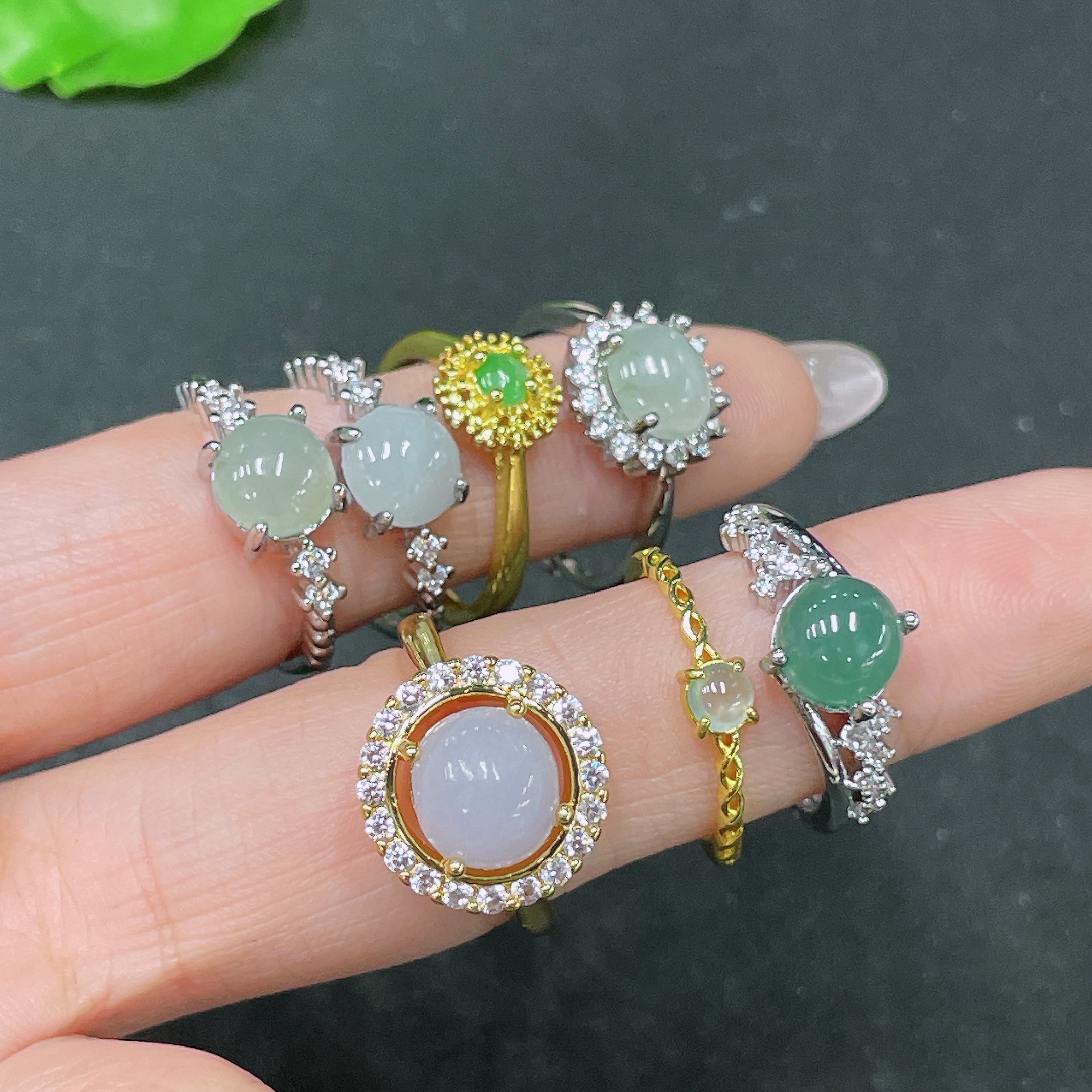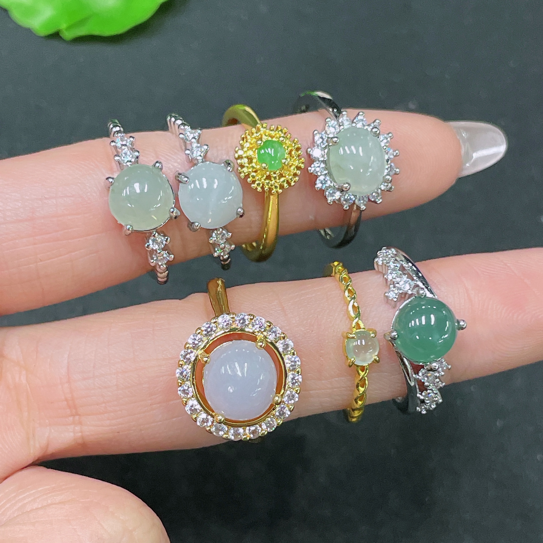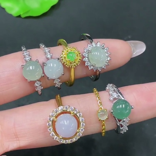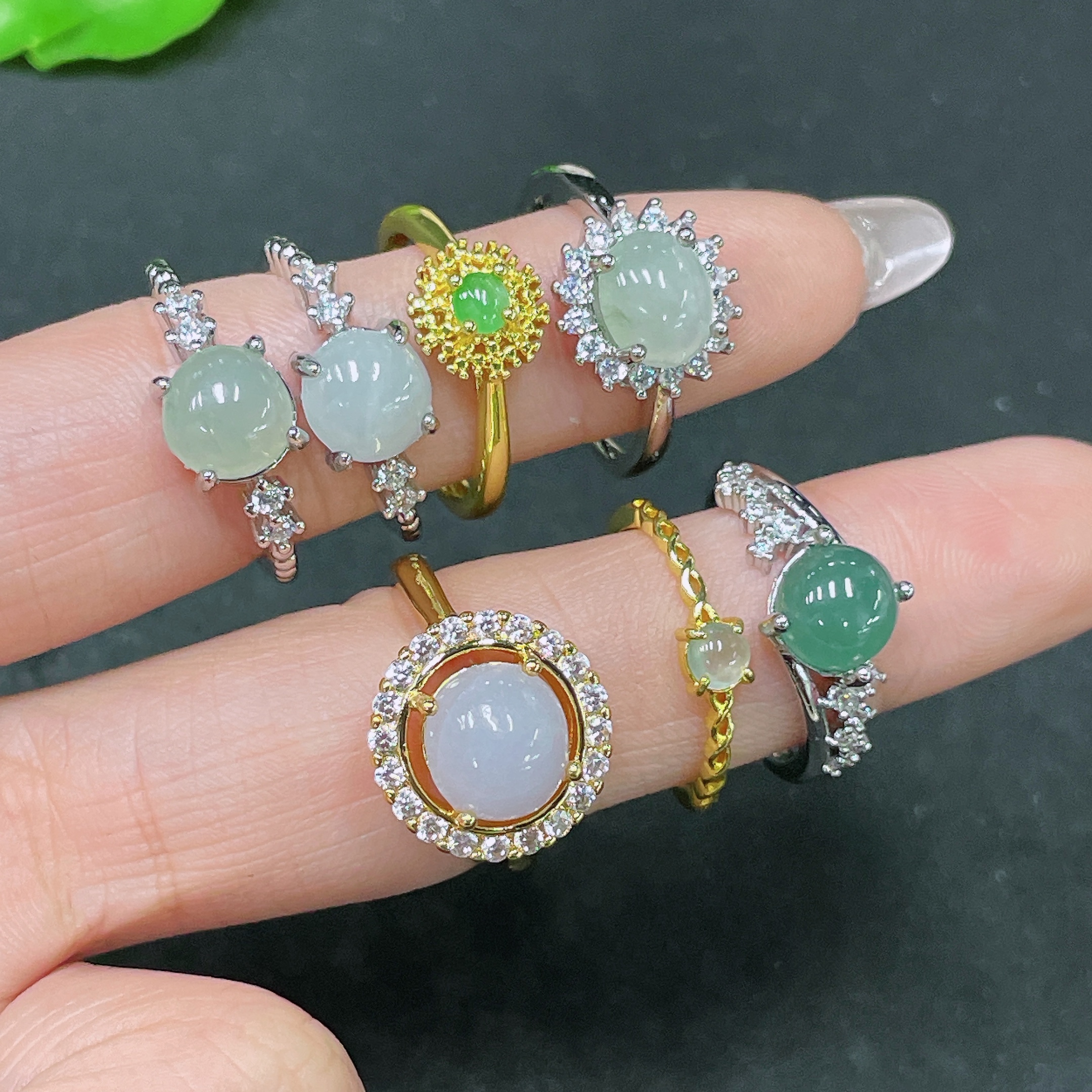 Jadeite Cabochon Inlaid Ring Non-Gold Adjustable