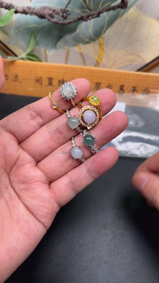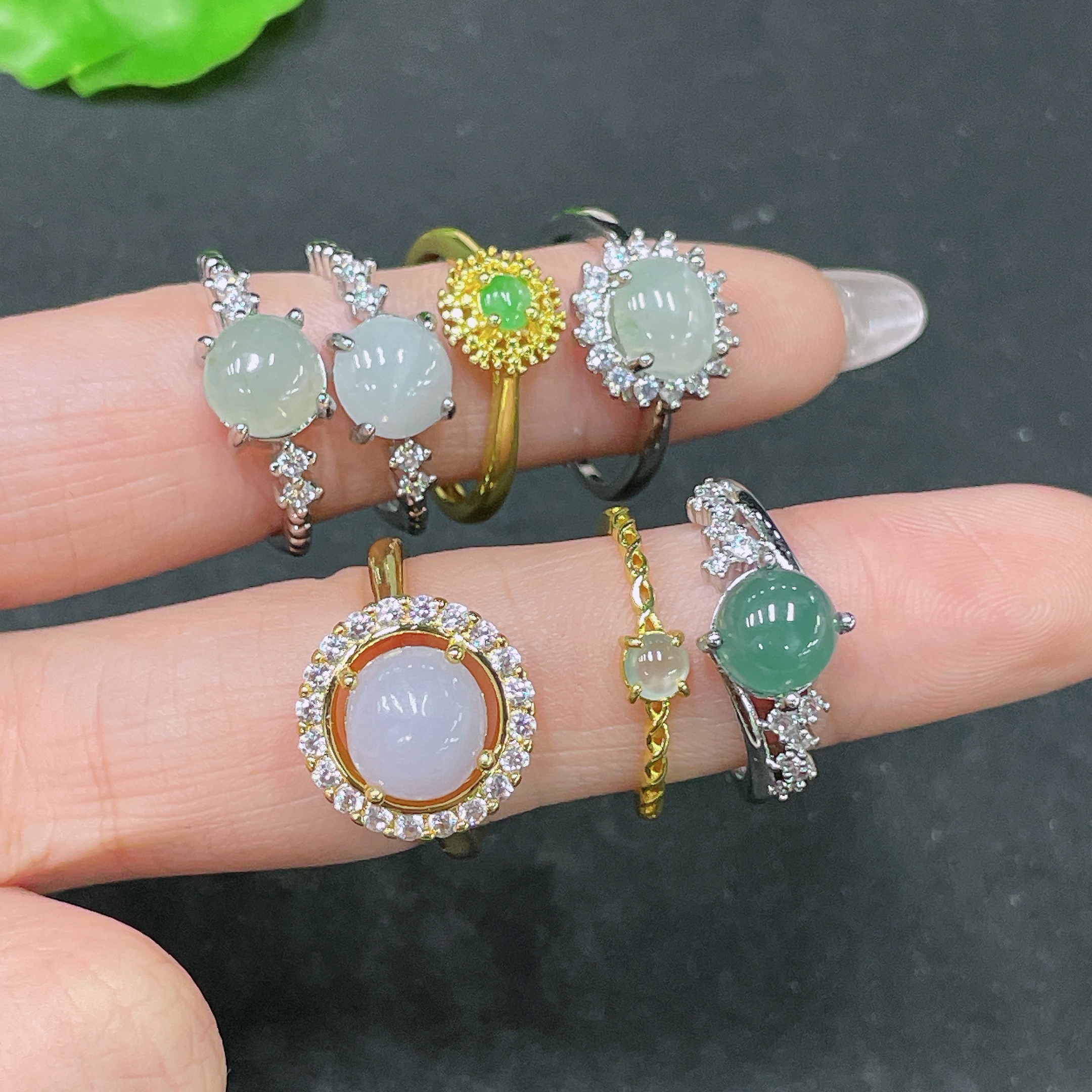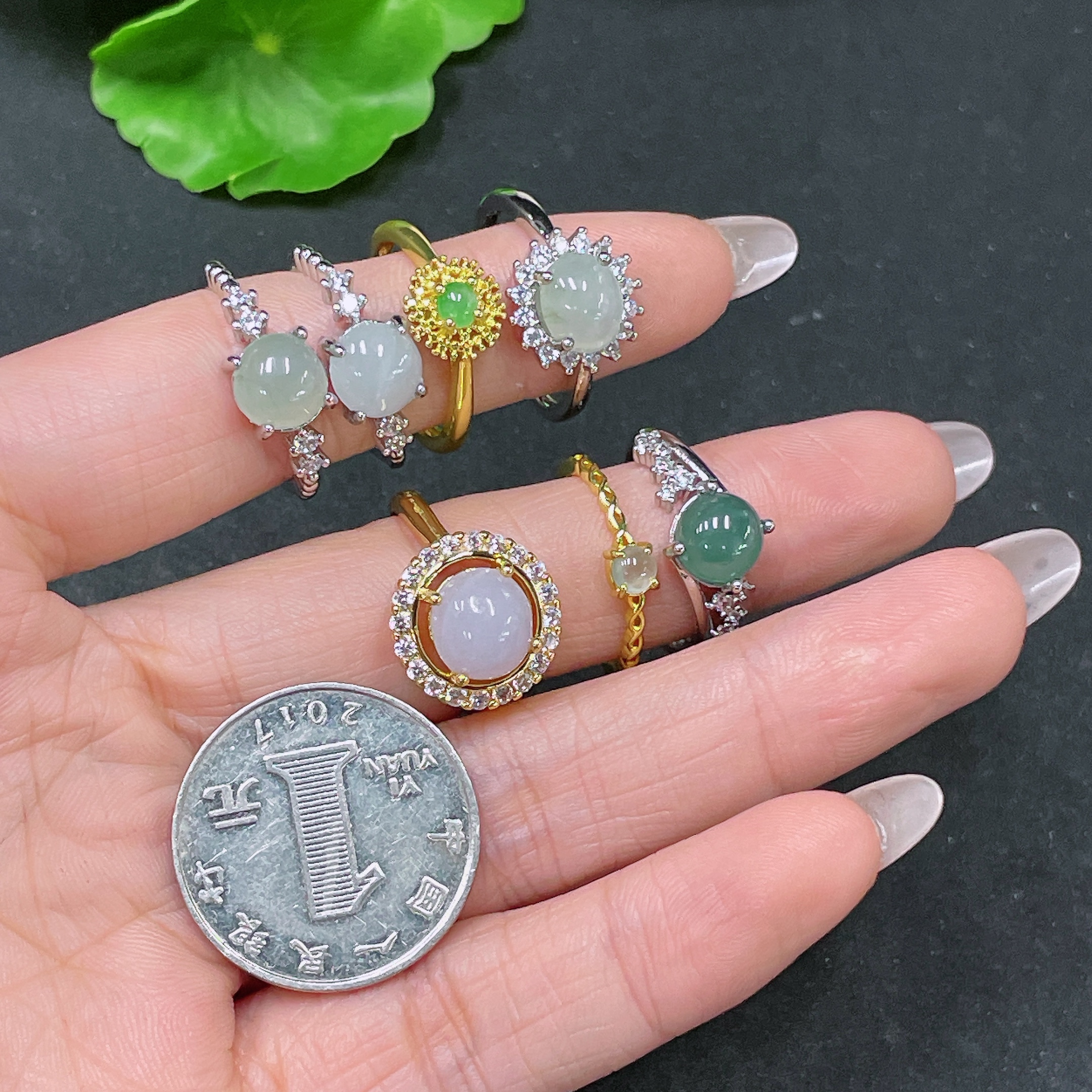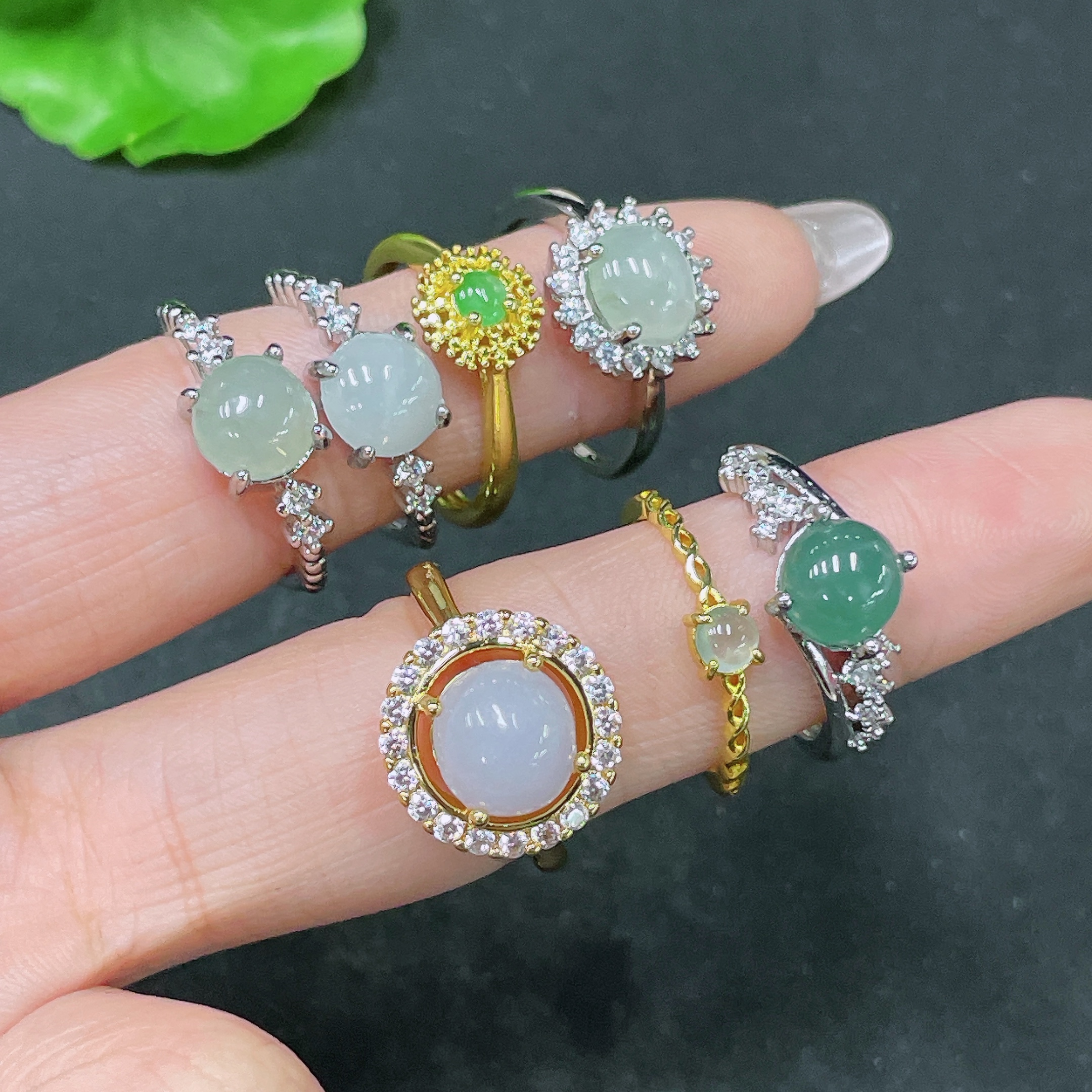 Jadeite Cabochon Inlaid Ring Non-Gold Adjustable