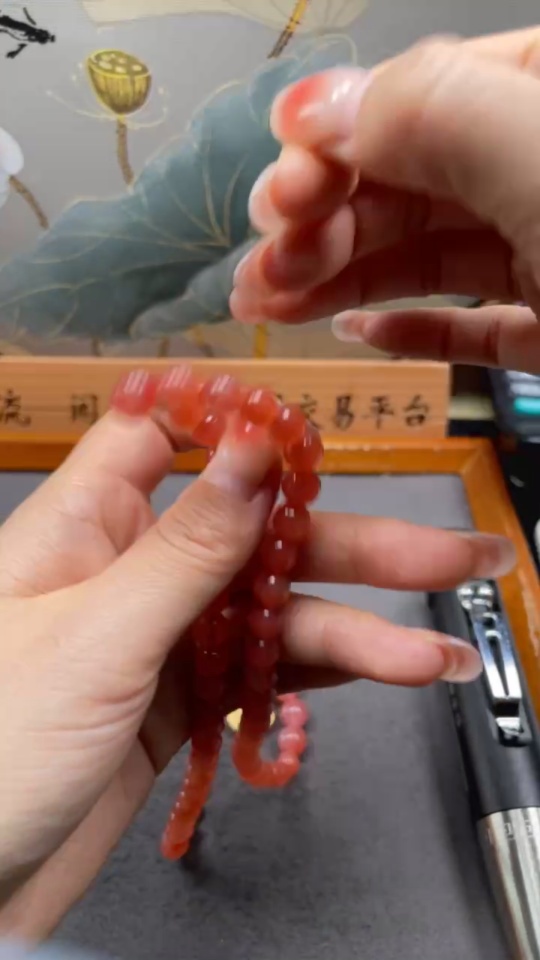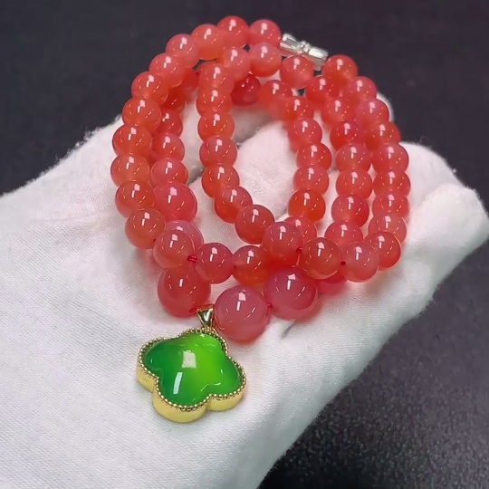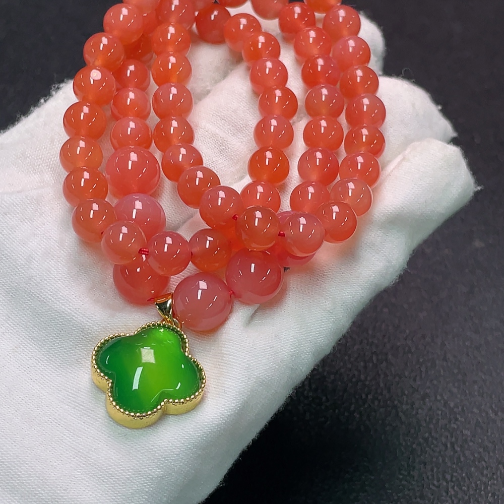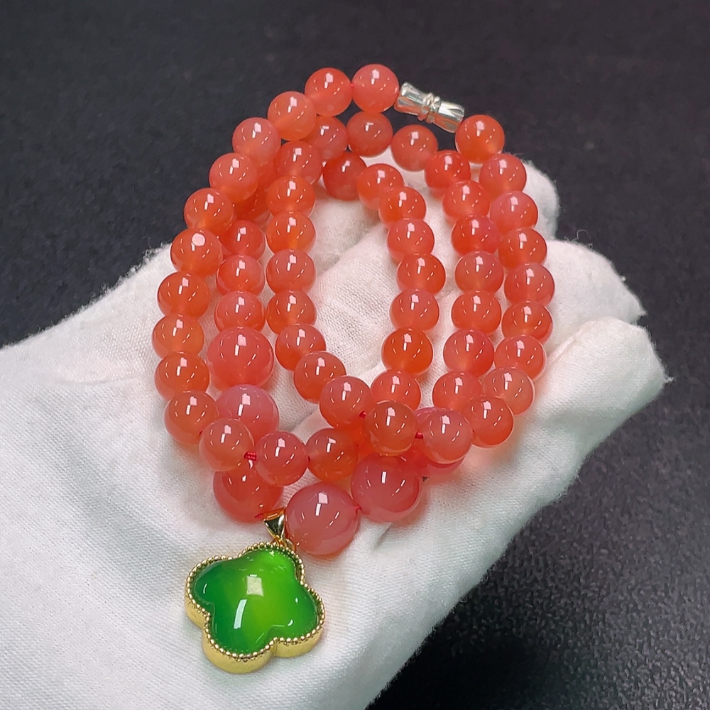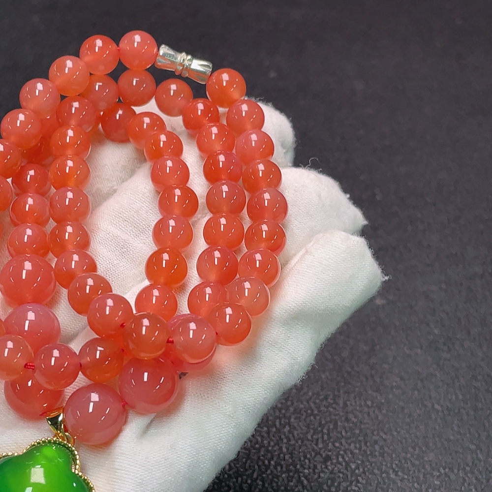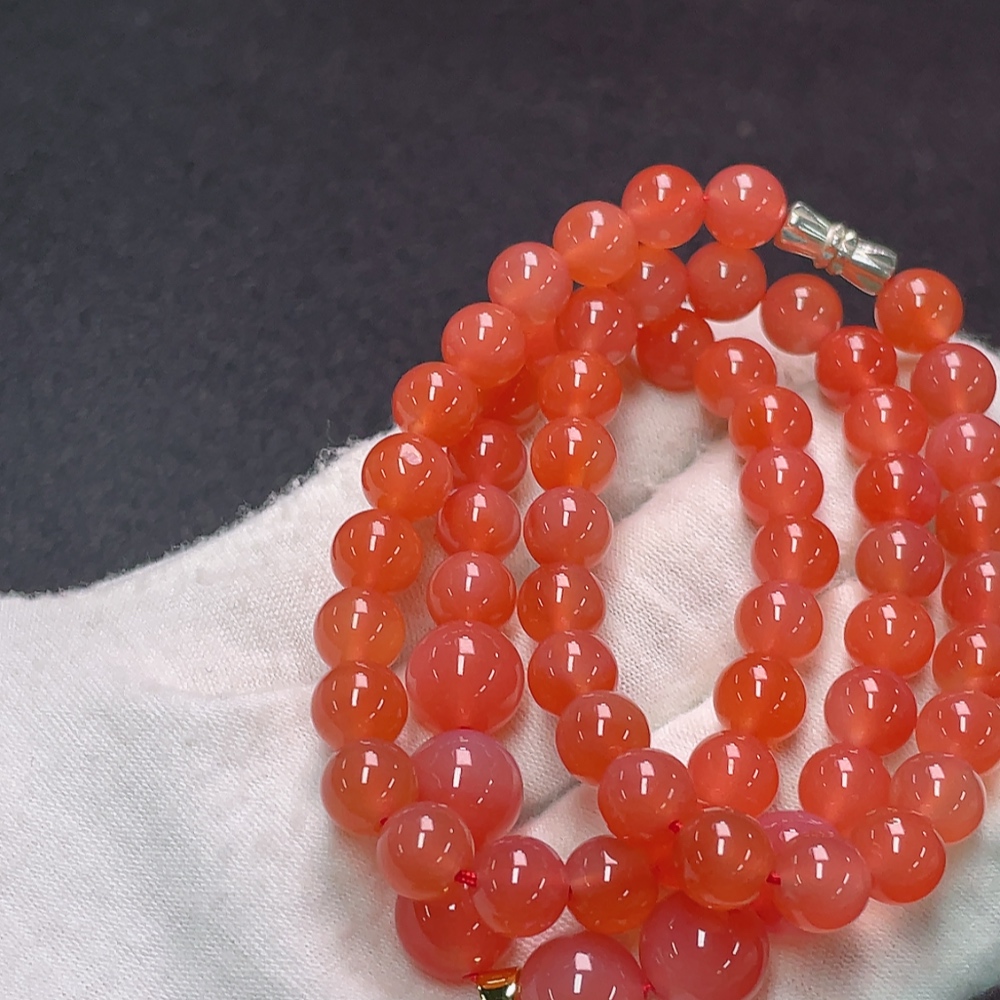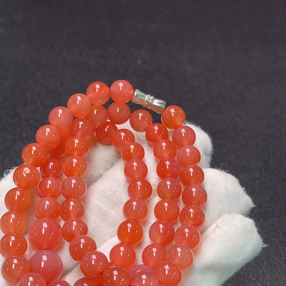 Red Agate Bead Necklace with Visible Organic Matter, Non-Natural Accent Stones, Non-Gold, Total Weight Approx. 48.92g, Size 7.6-9.8mm
