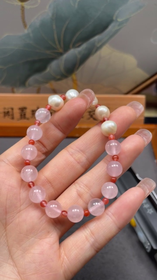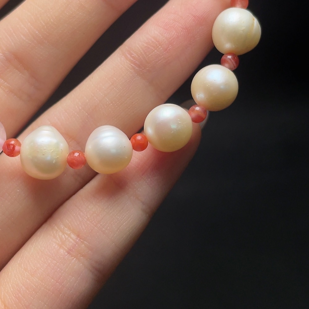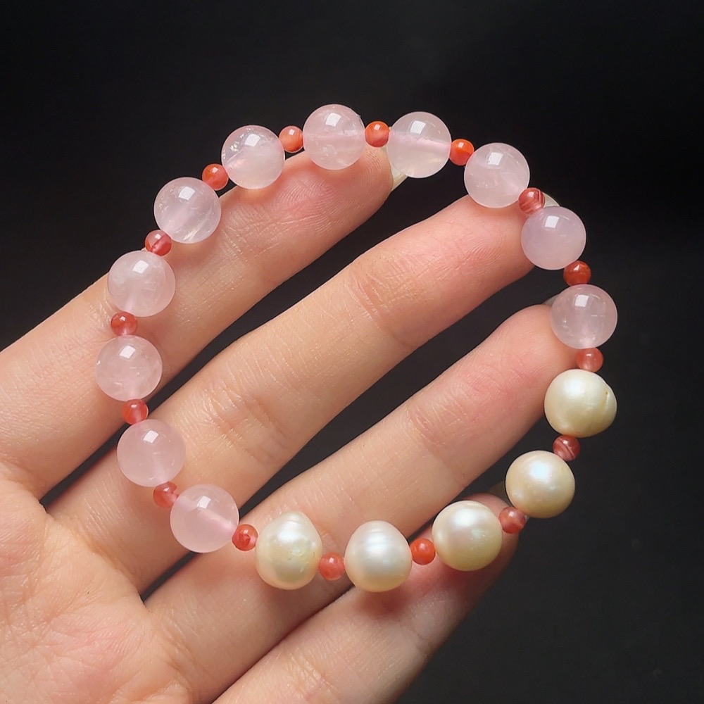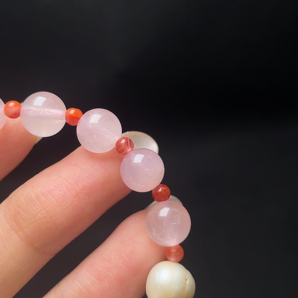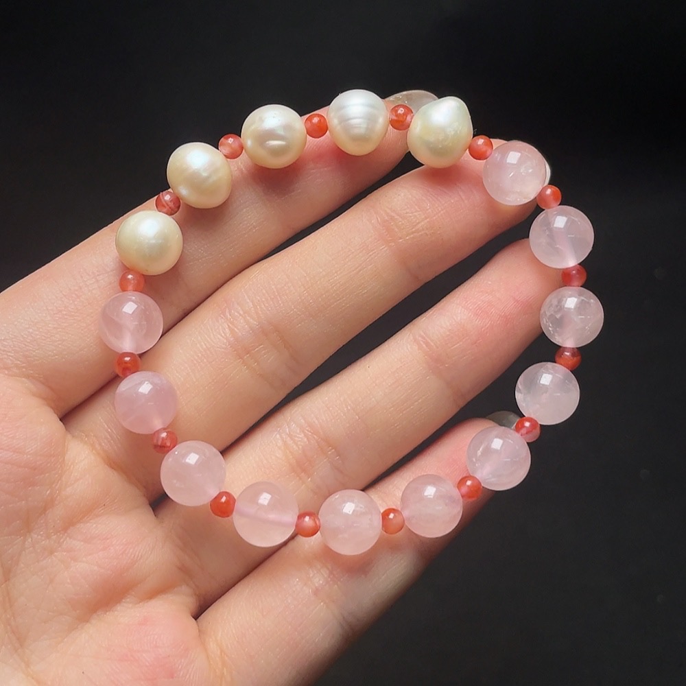 Crystal Bracelet with Pearl and Southern Red Agate, Total Weight Approx. 14.1g, Size About 8.3mm