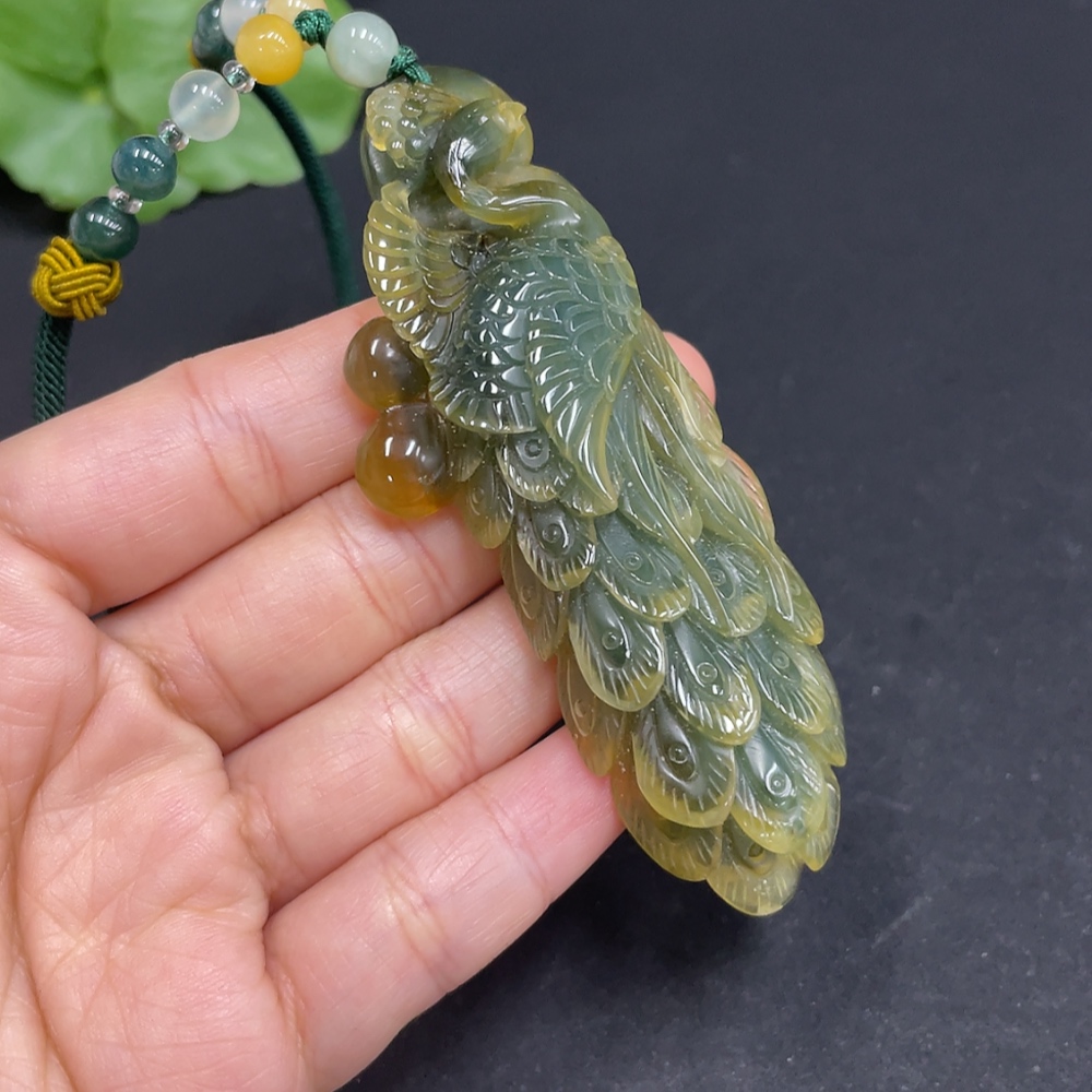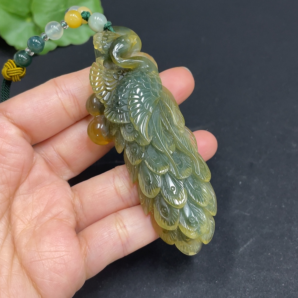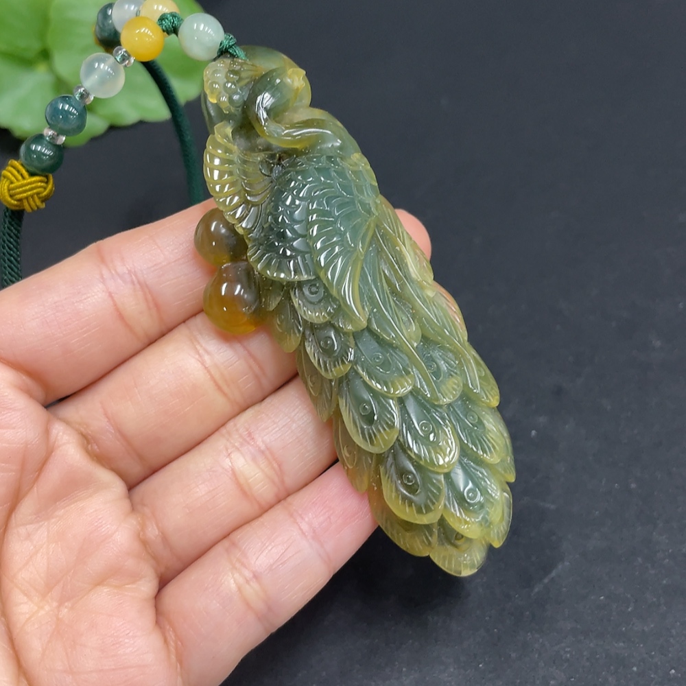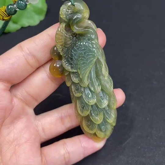 Xiuyu (Serpentine Jade) Pendant Peacock