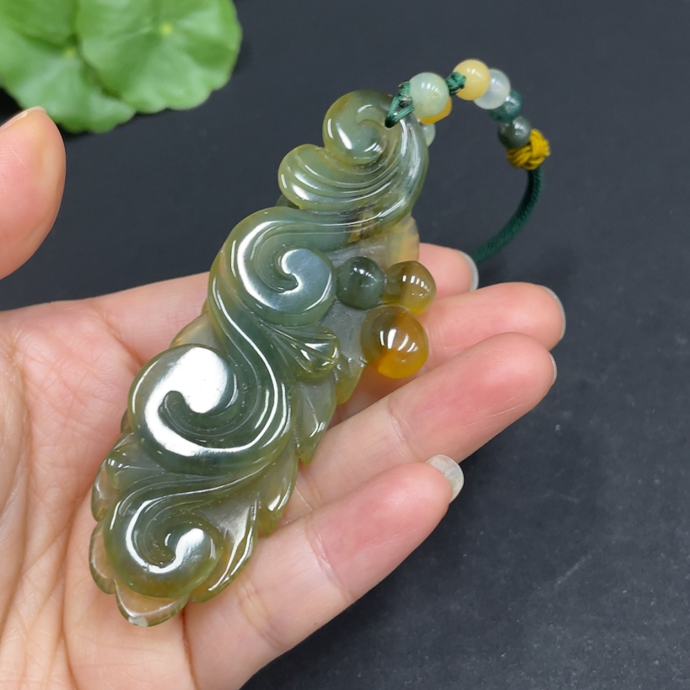 Trezaar - Xiuyu (Serpentine Jade) Pendant Peacock