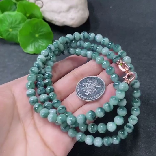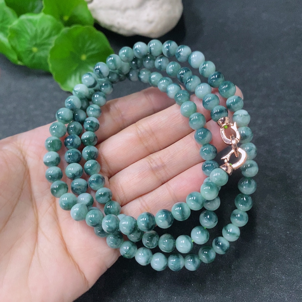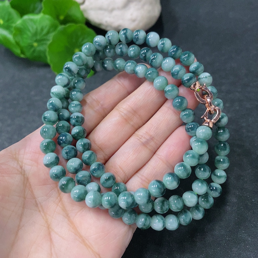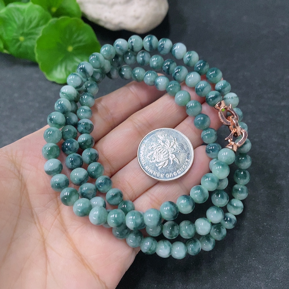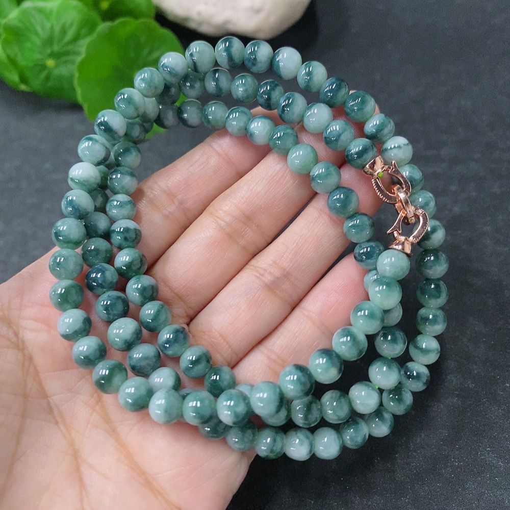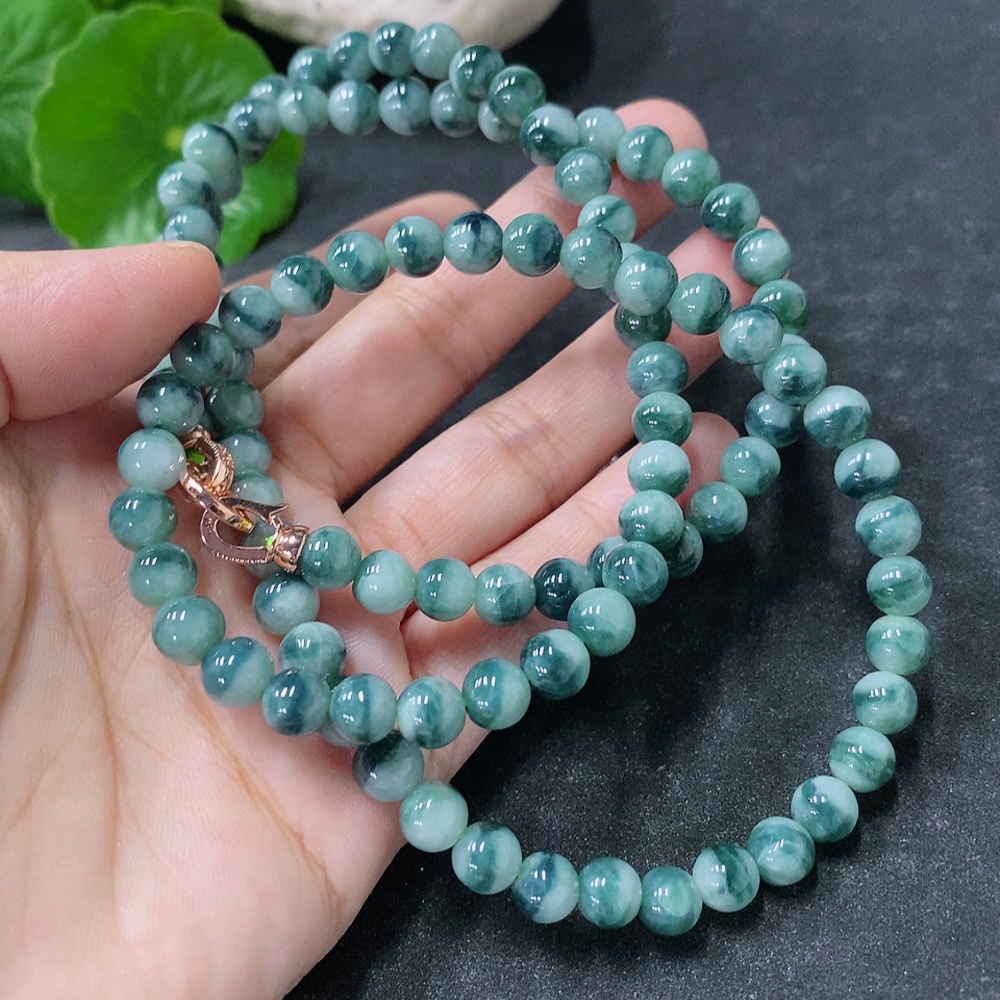 Jadeite Bead Necklace Approx. 6.5mm Total Weight Approx. 48.3g Non-Gold Clasp