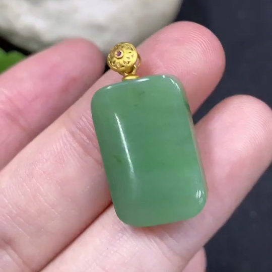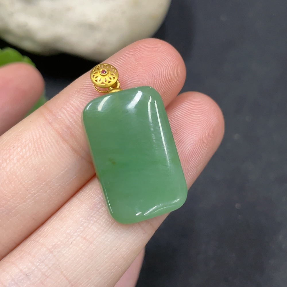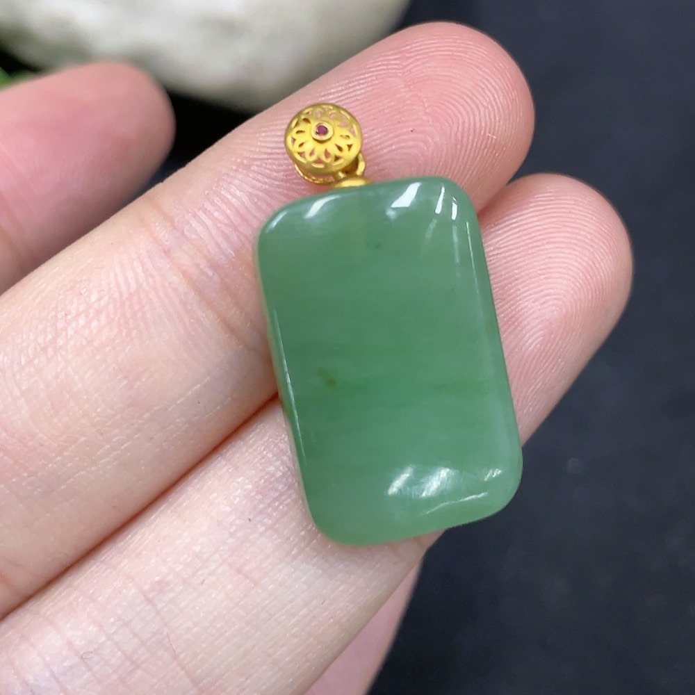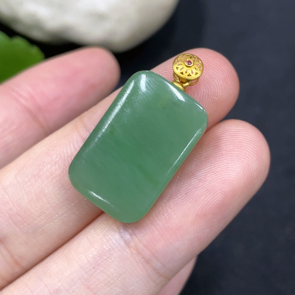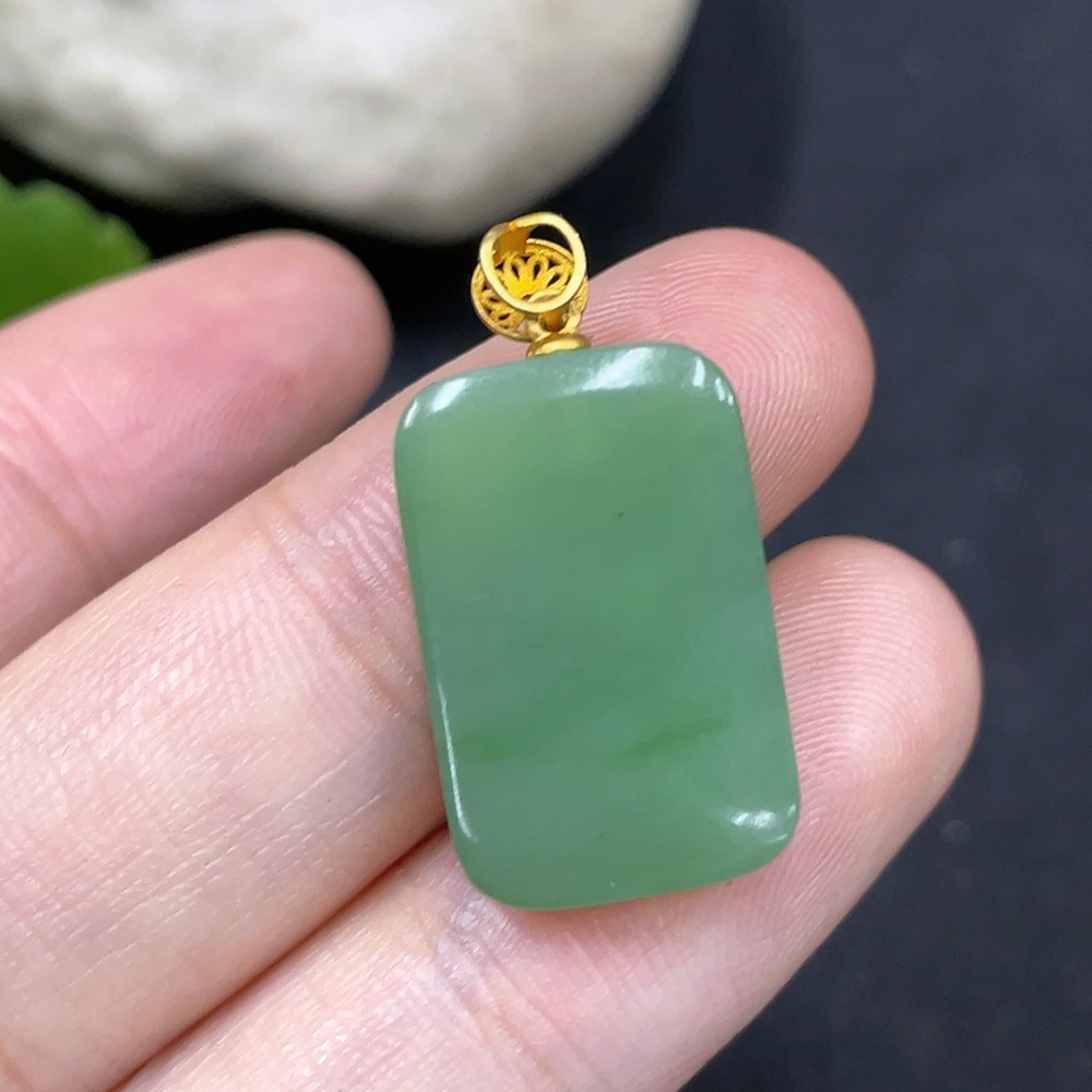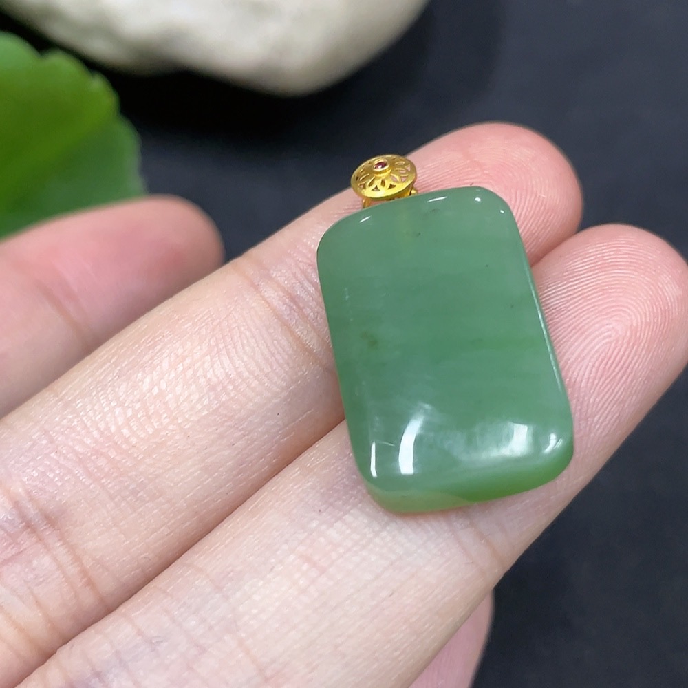Hetian Jade Jasper Pendant, Plain Pendant with 18k Gold Clasp, Total Weight Approx. 3.5g