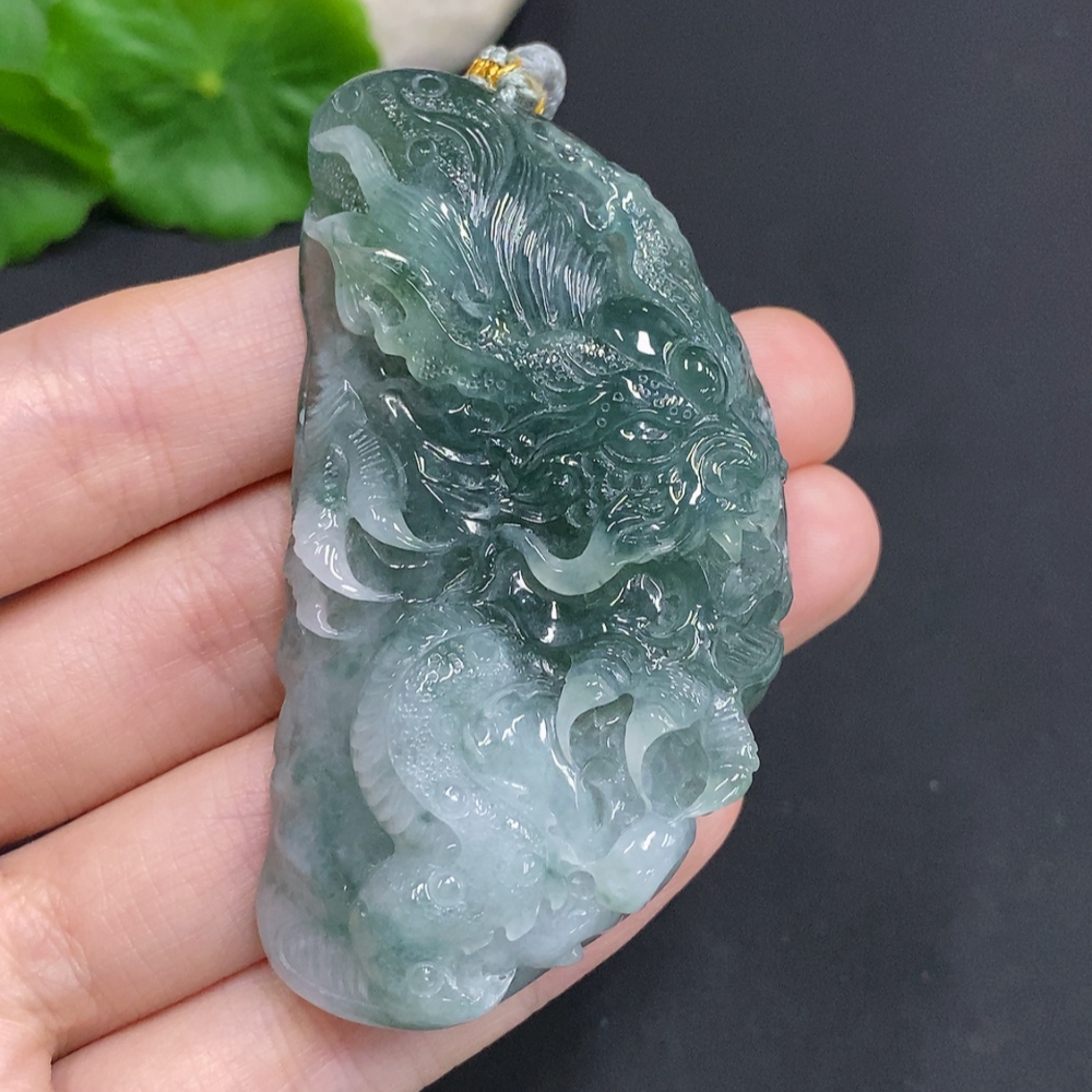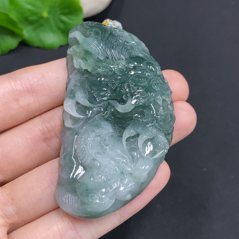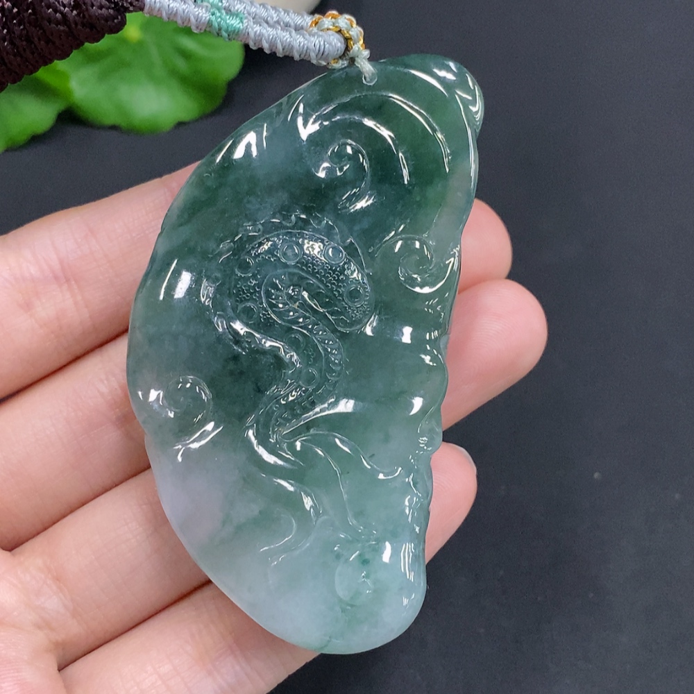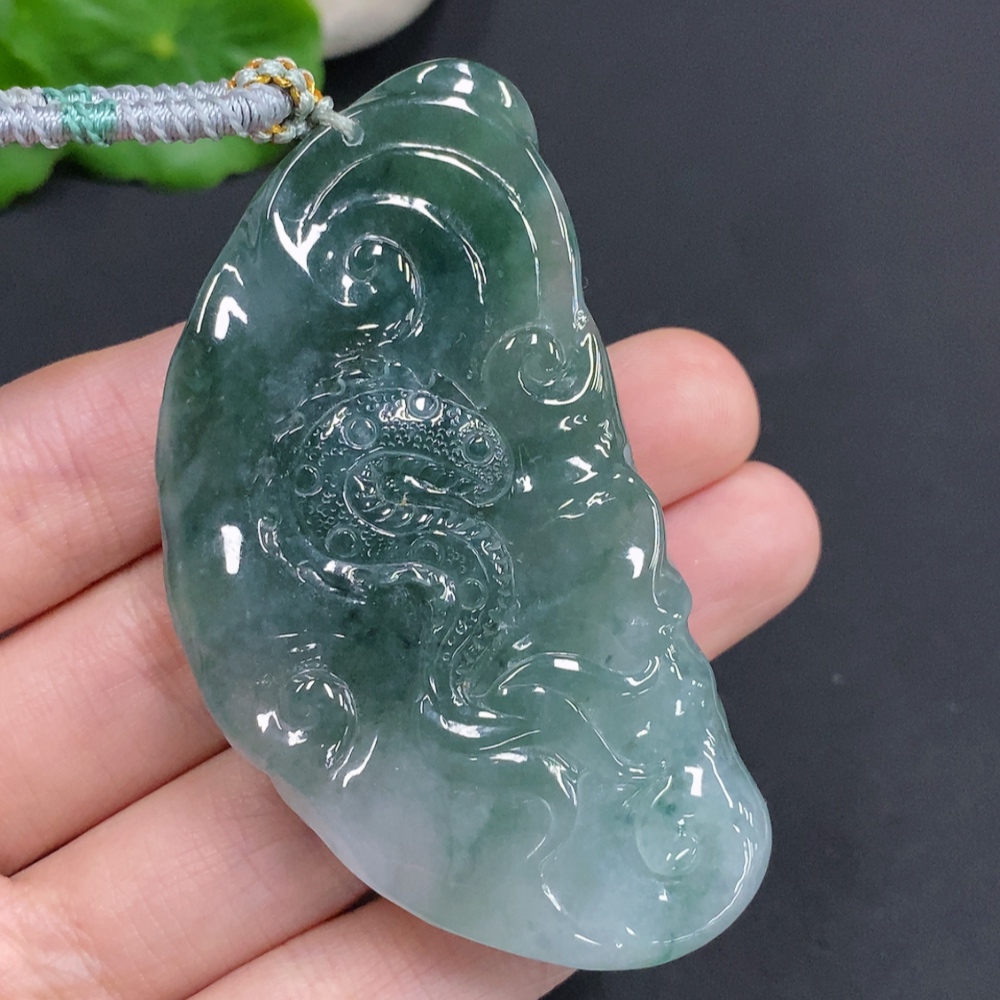 Jadeite Dragon Pendant with Cord, Total Weight Approx. 64.3g