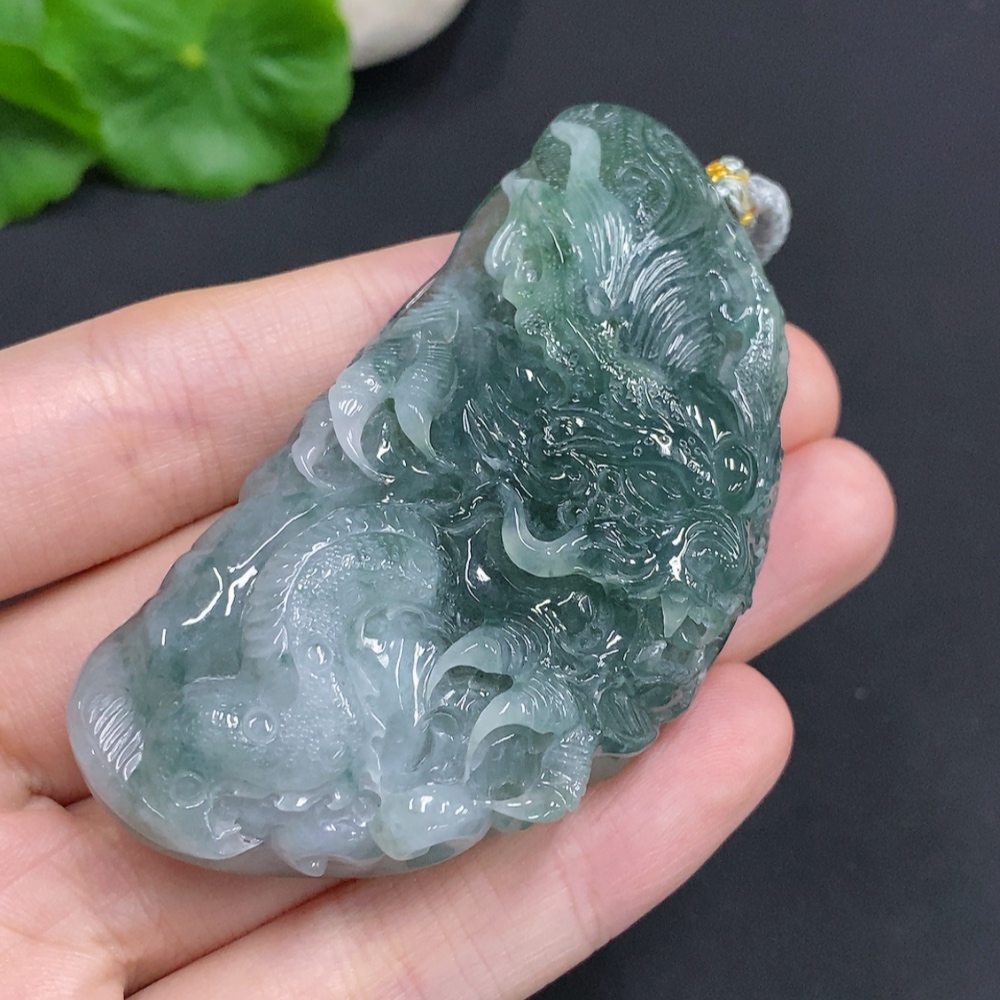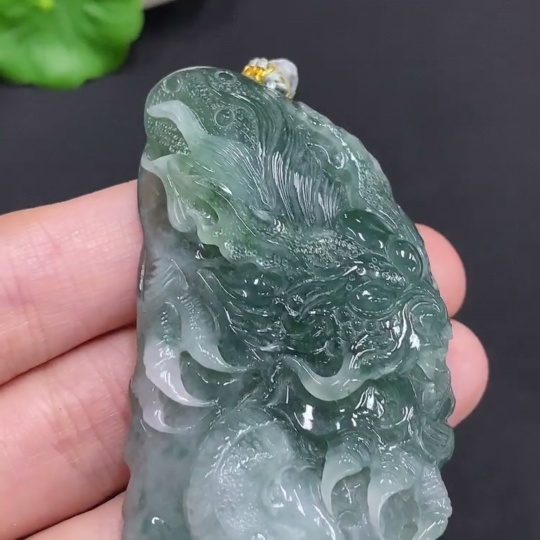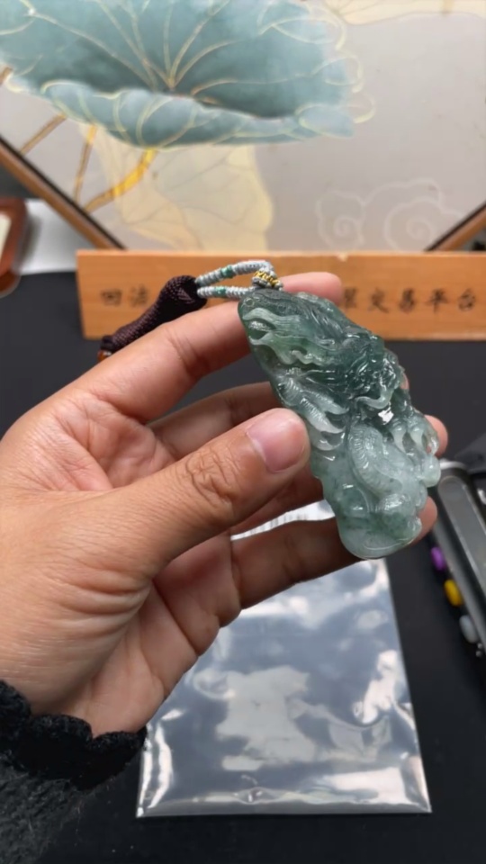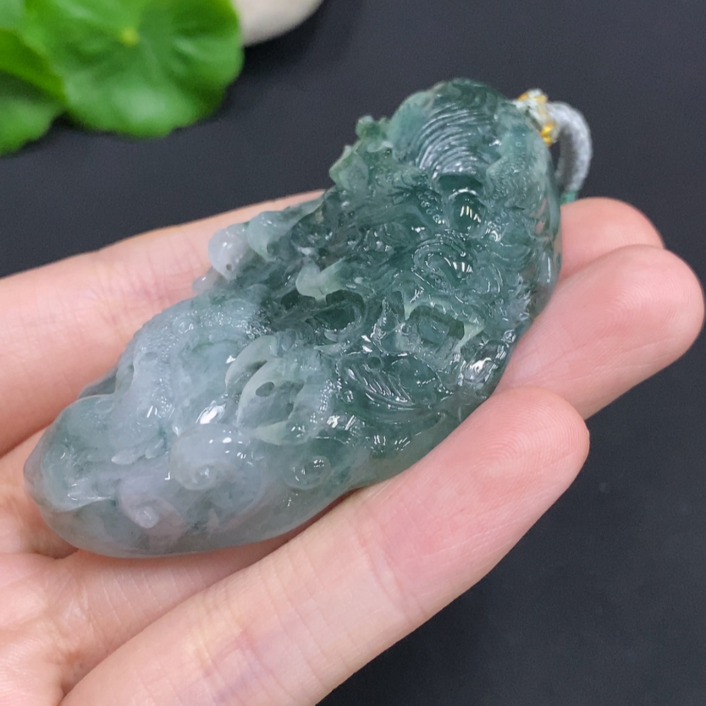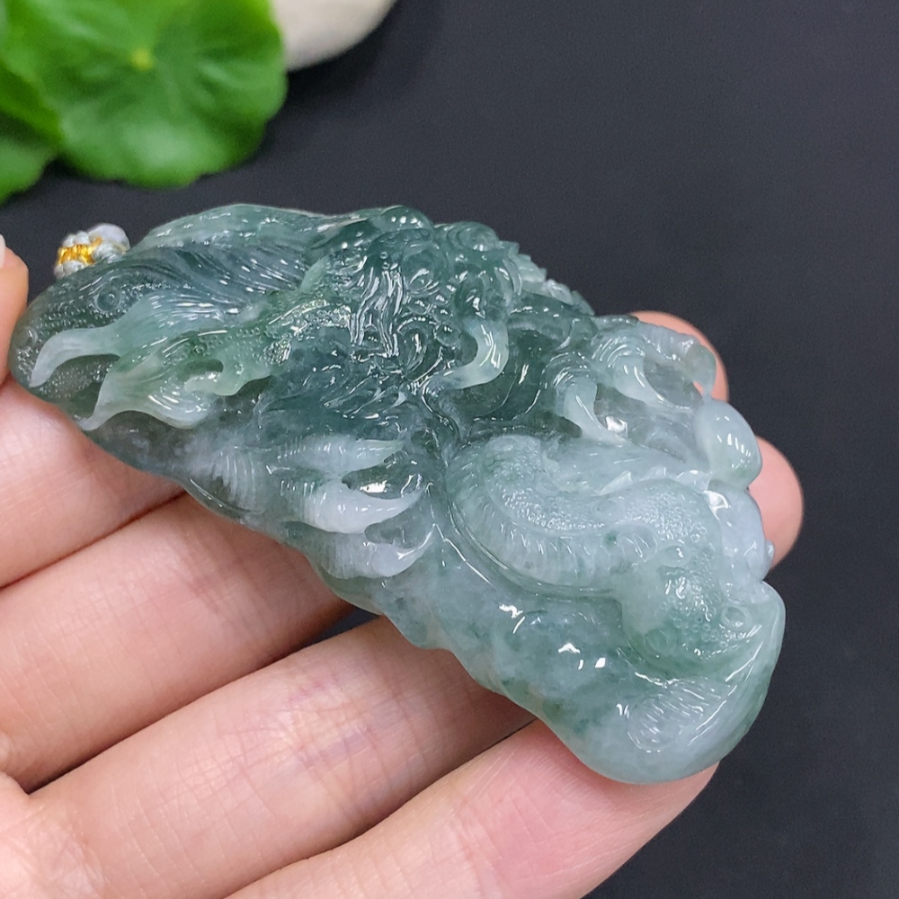 Jadeite Dragon Pendant with Cord, Total Weight Approx. 64.3g