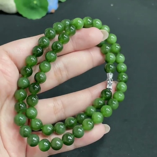 Hetian Jade Jasper Bead Necklace, approx. 7.7mm, total weight approx. 43.9g