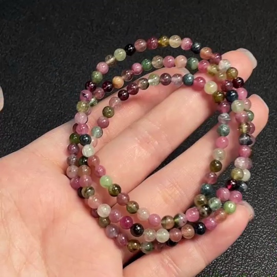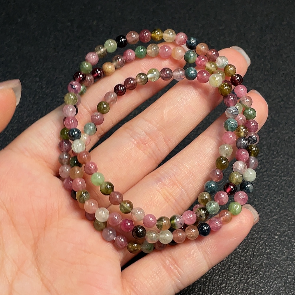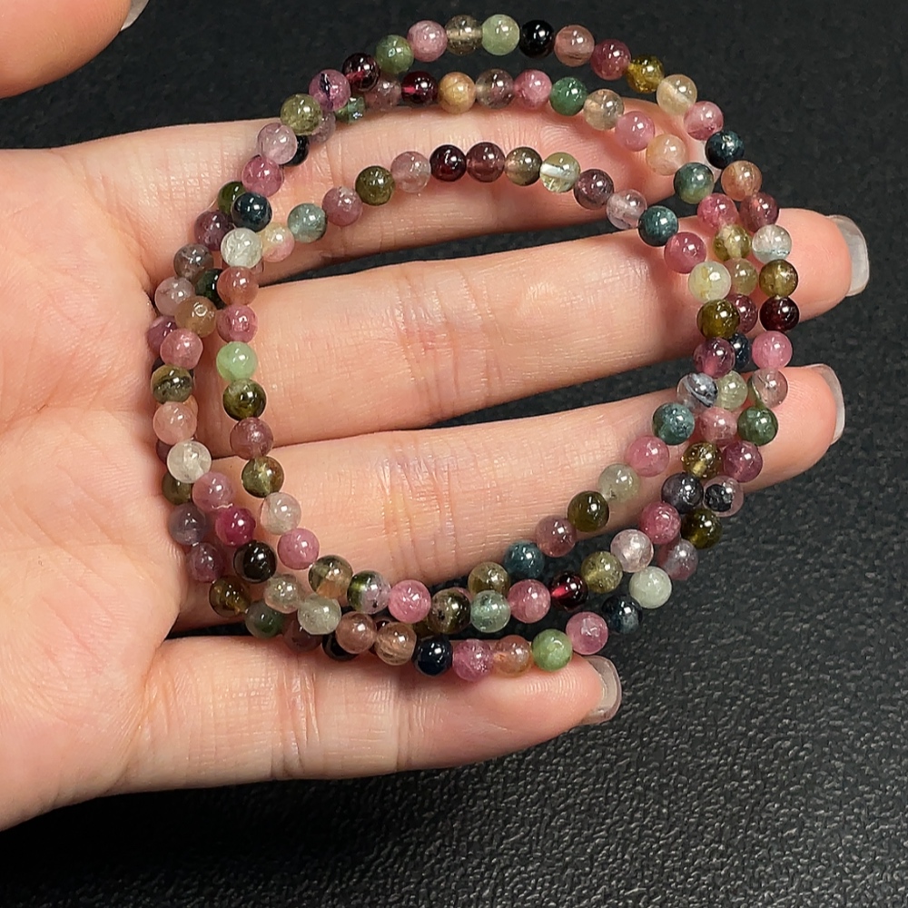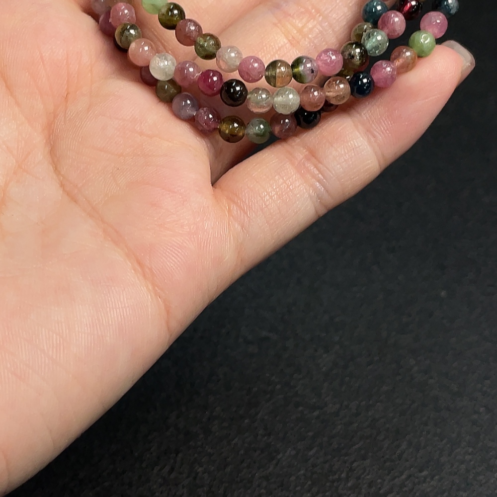 Tourmaline bead strand containing other mineral components with visible organic matter, total weight approx. 16.24g, size about 4.3mm