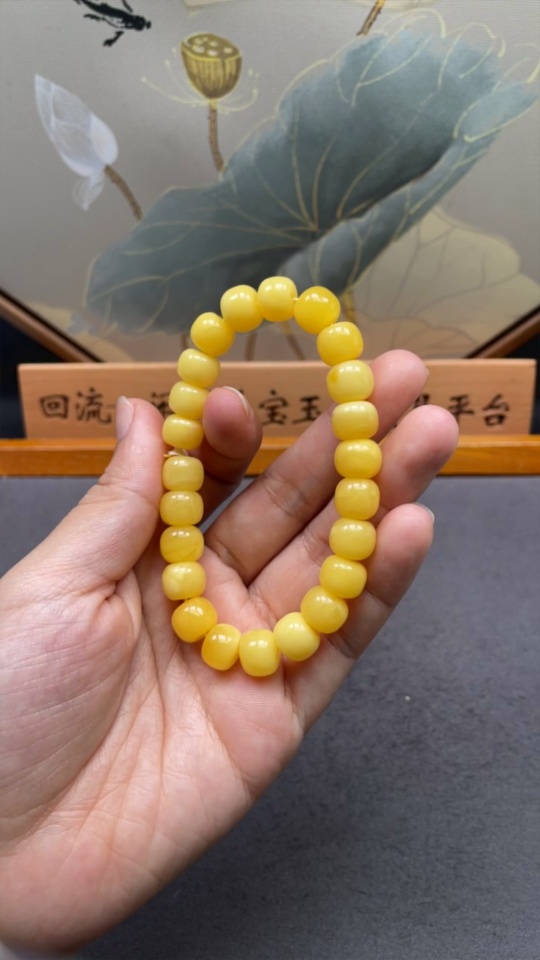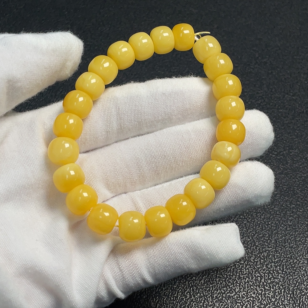 Amber Beeswax Bracelet, Total Weight Approx. 13.32g, Size About 10.2mm