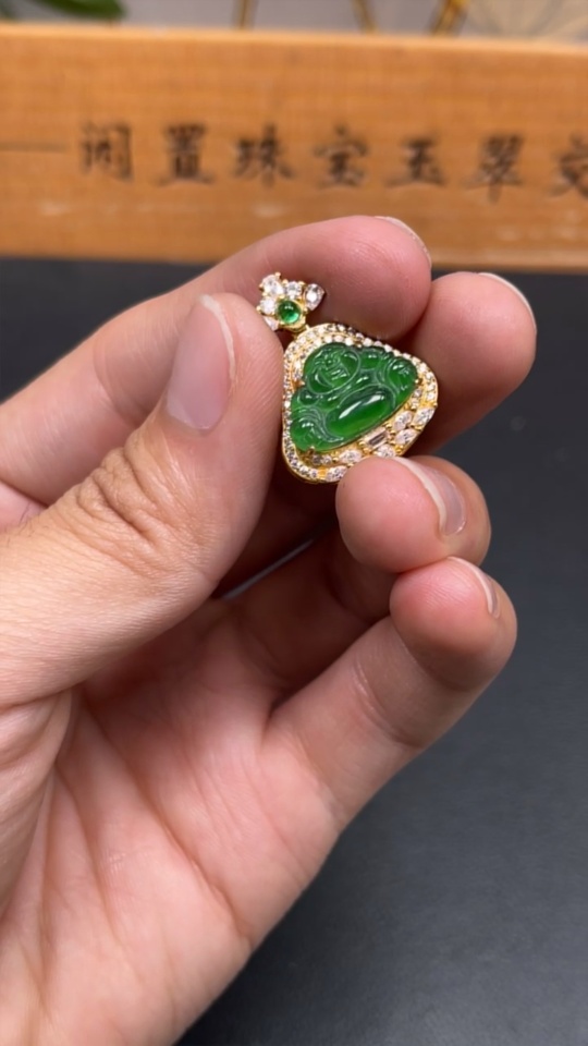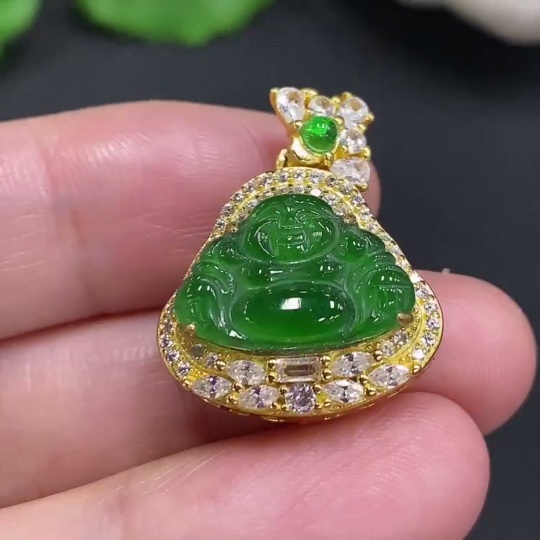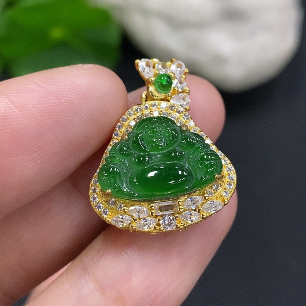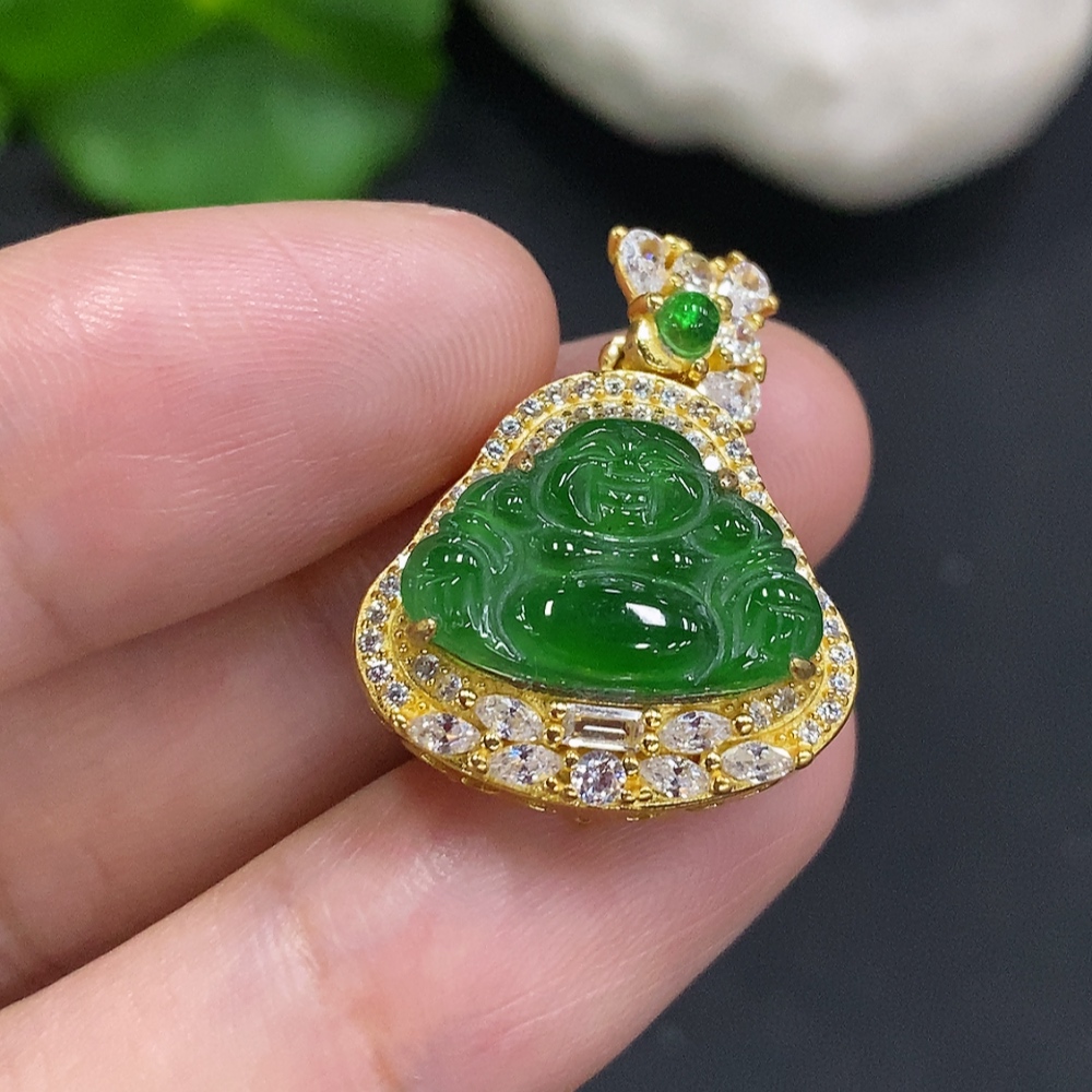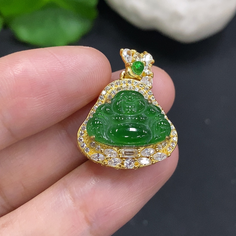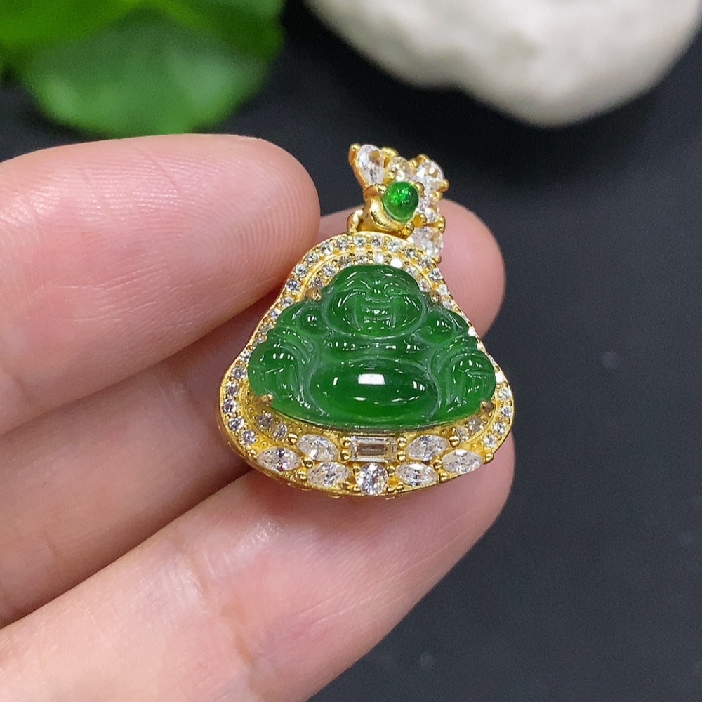 Jadeite Buddha Pendant Inlaid Without Gold Total Weight Approx. 3.9g (Inlaid Stones Not Grade A)