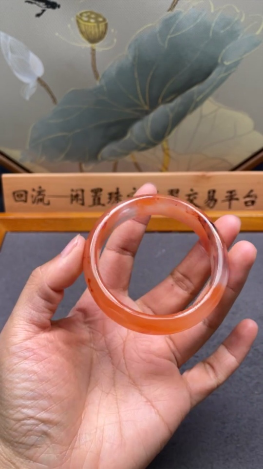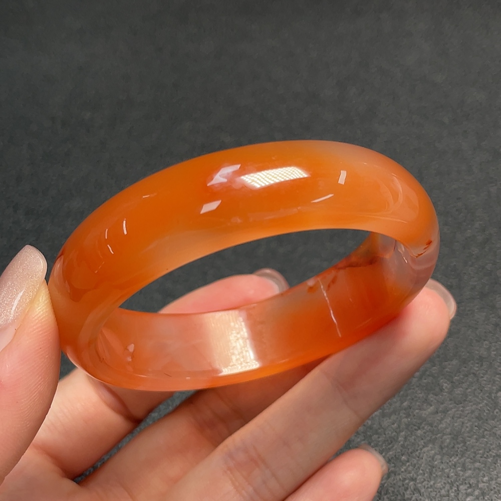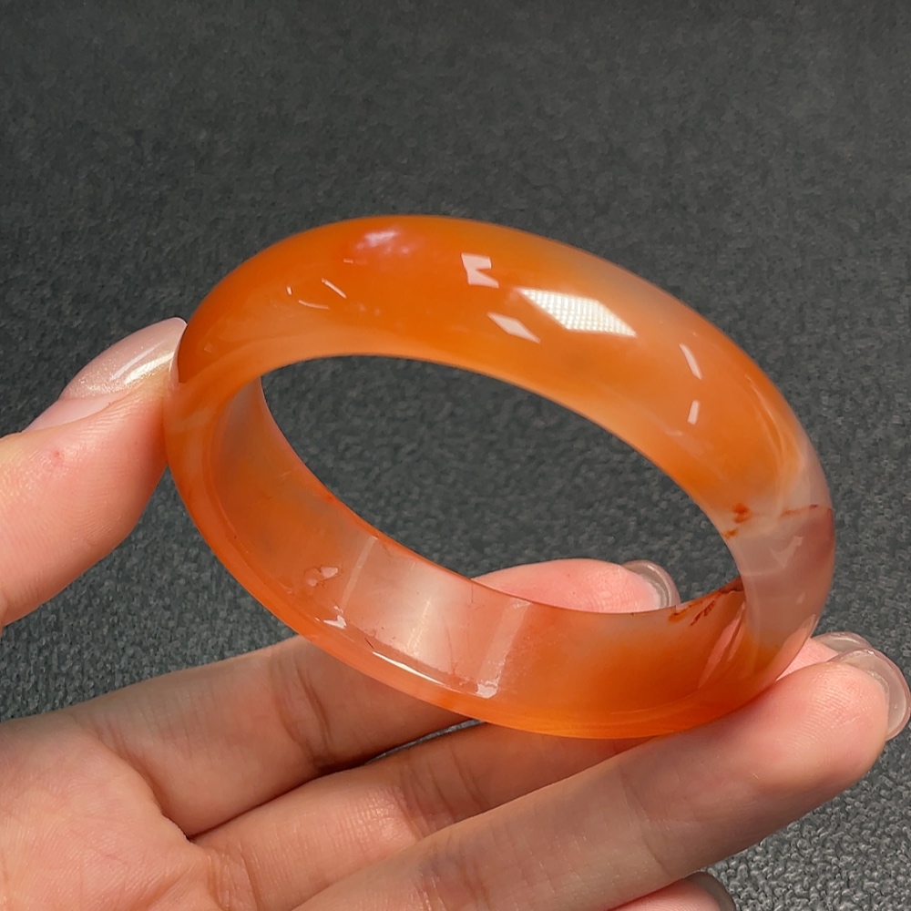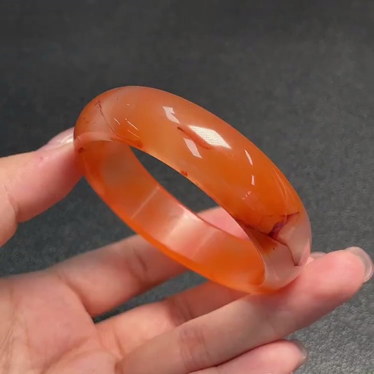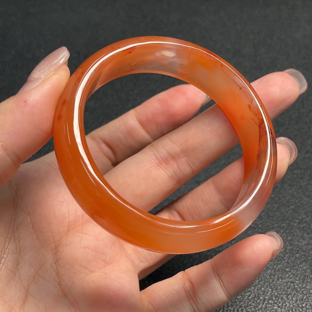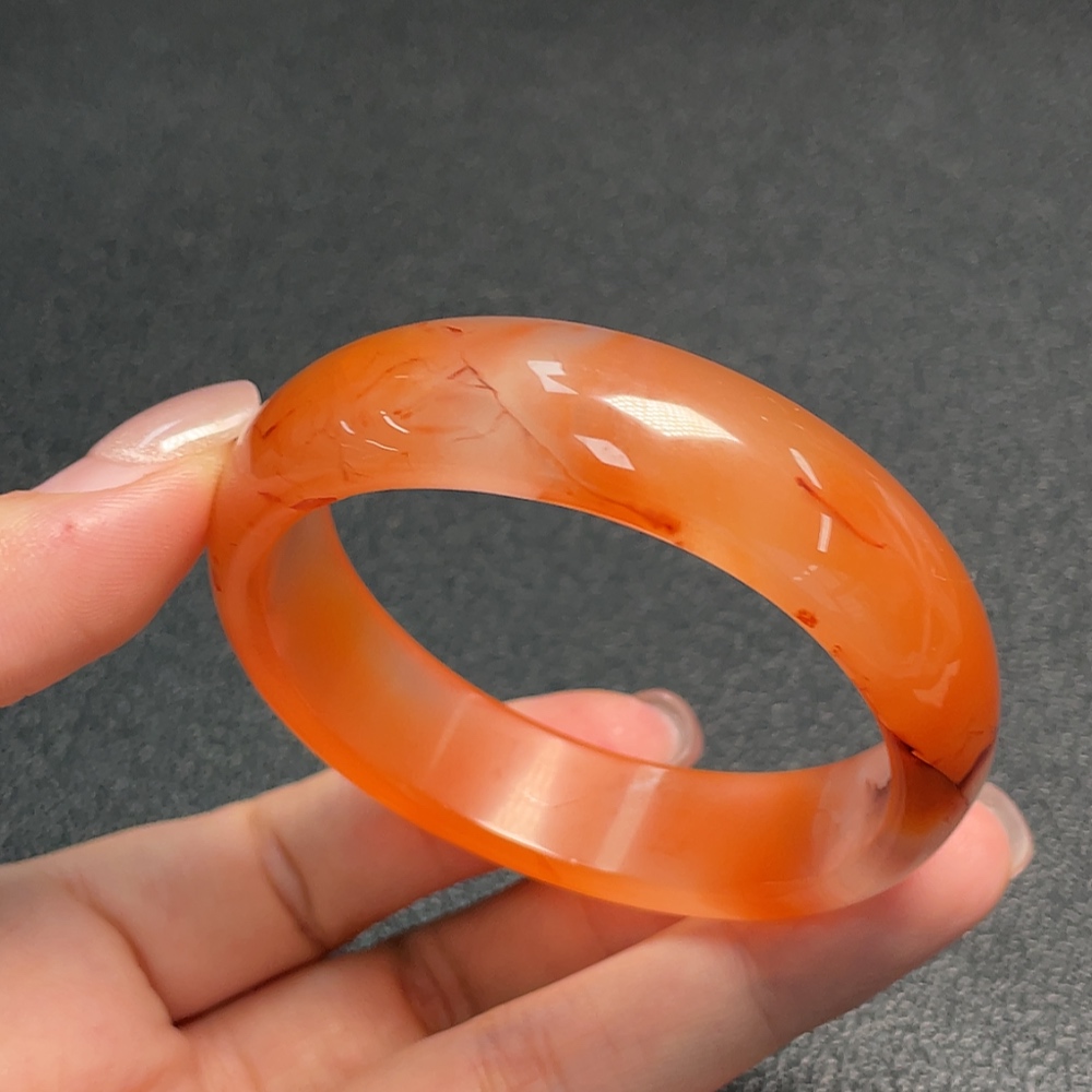 Red Agate Bracelet with Visible Organic Matter, Total Weight Approx. 38.43g, Size 52.2