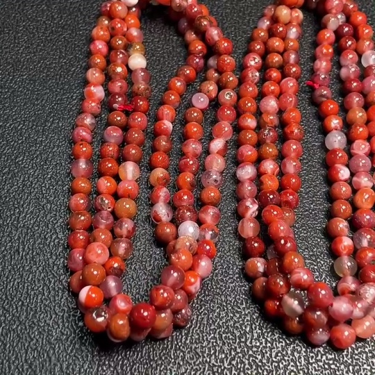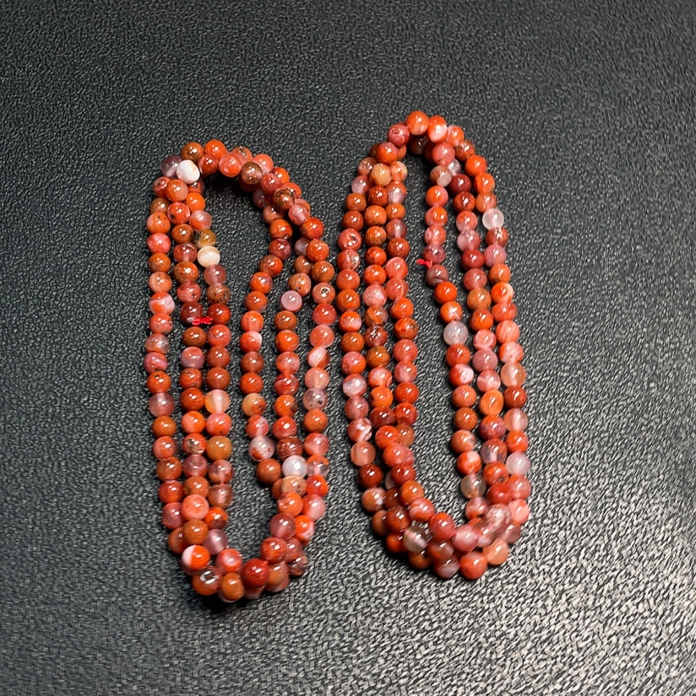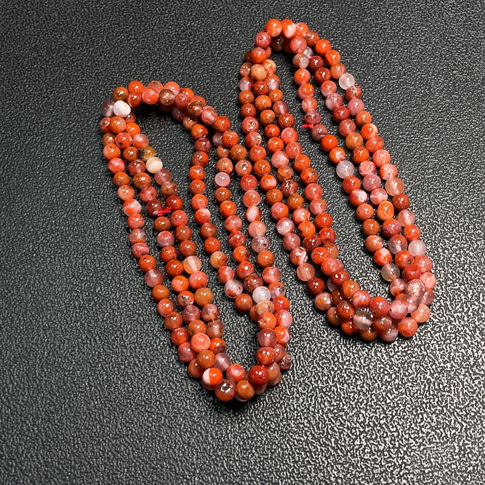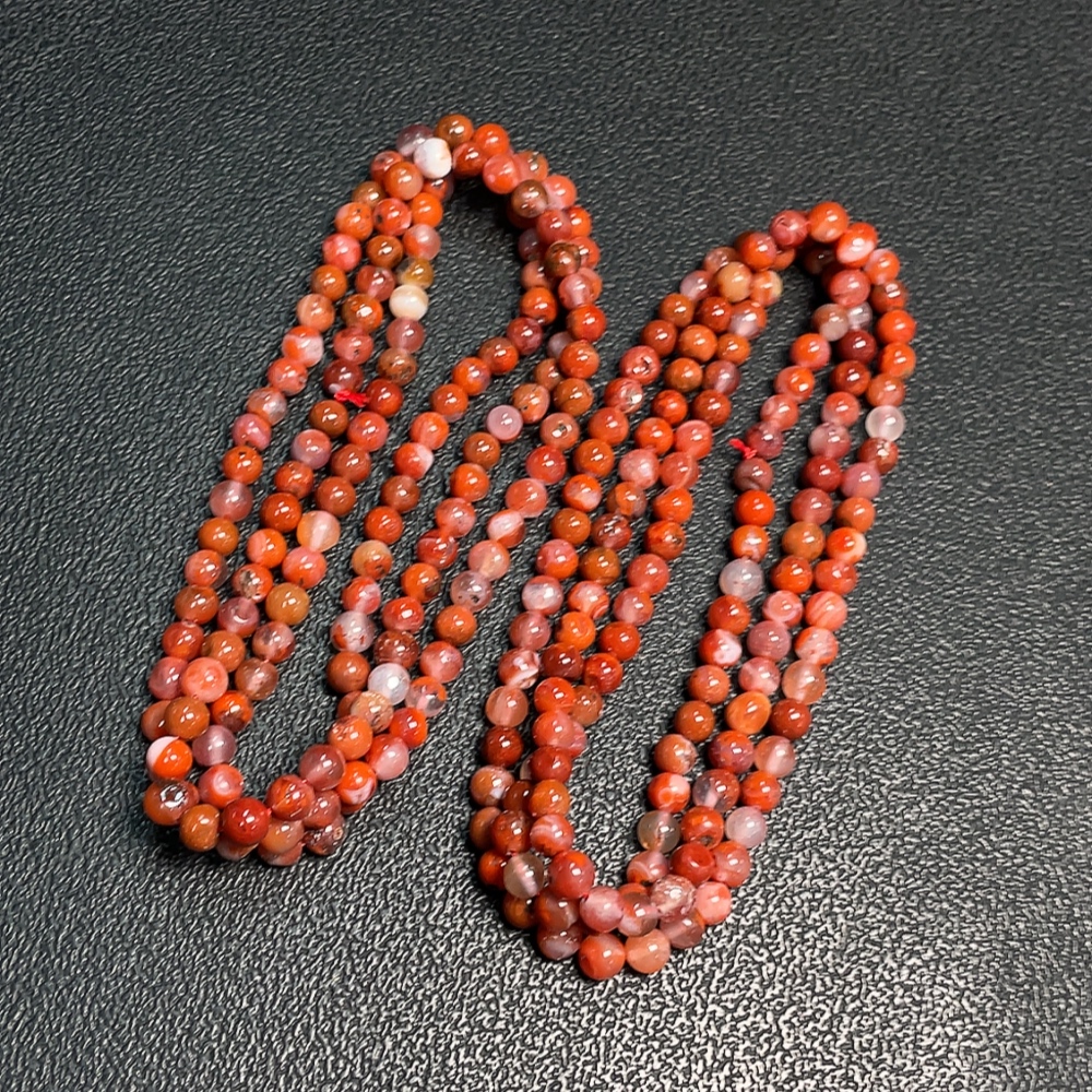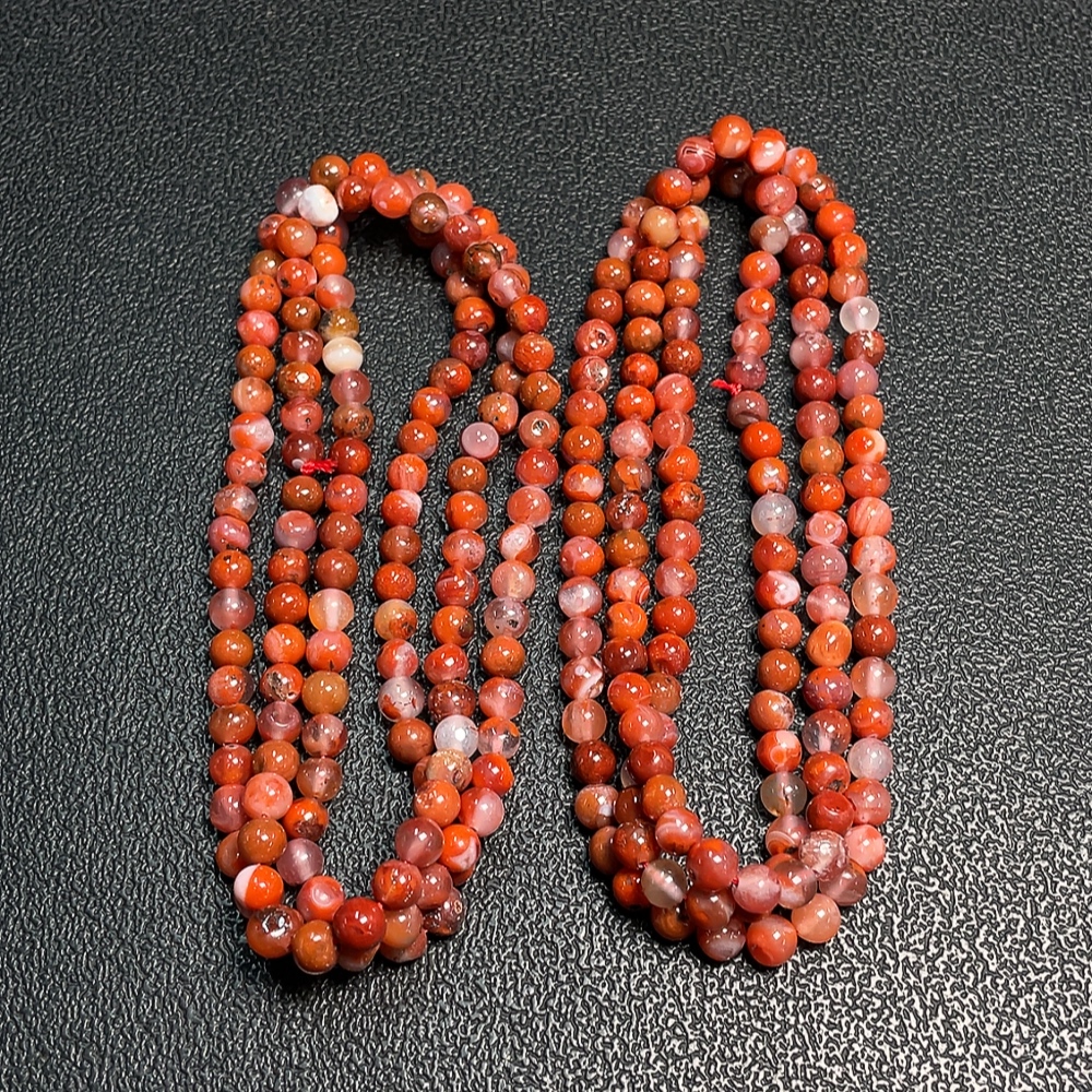 South Red Agate Bead Strand with Visible Organic Matter, Total Weight Approx. 64.03g, Sell as a Lot
