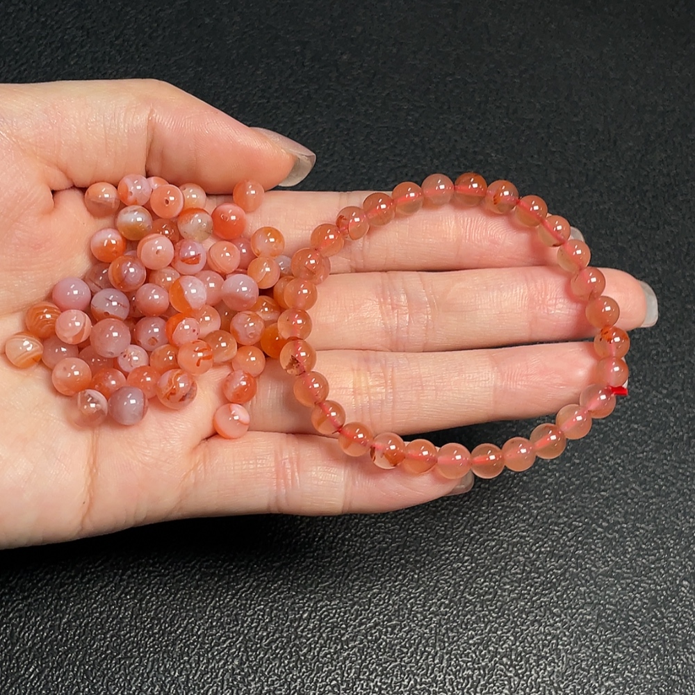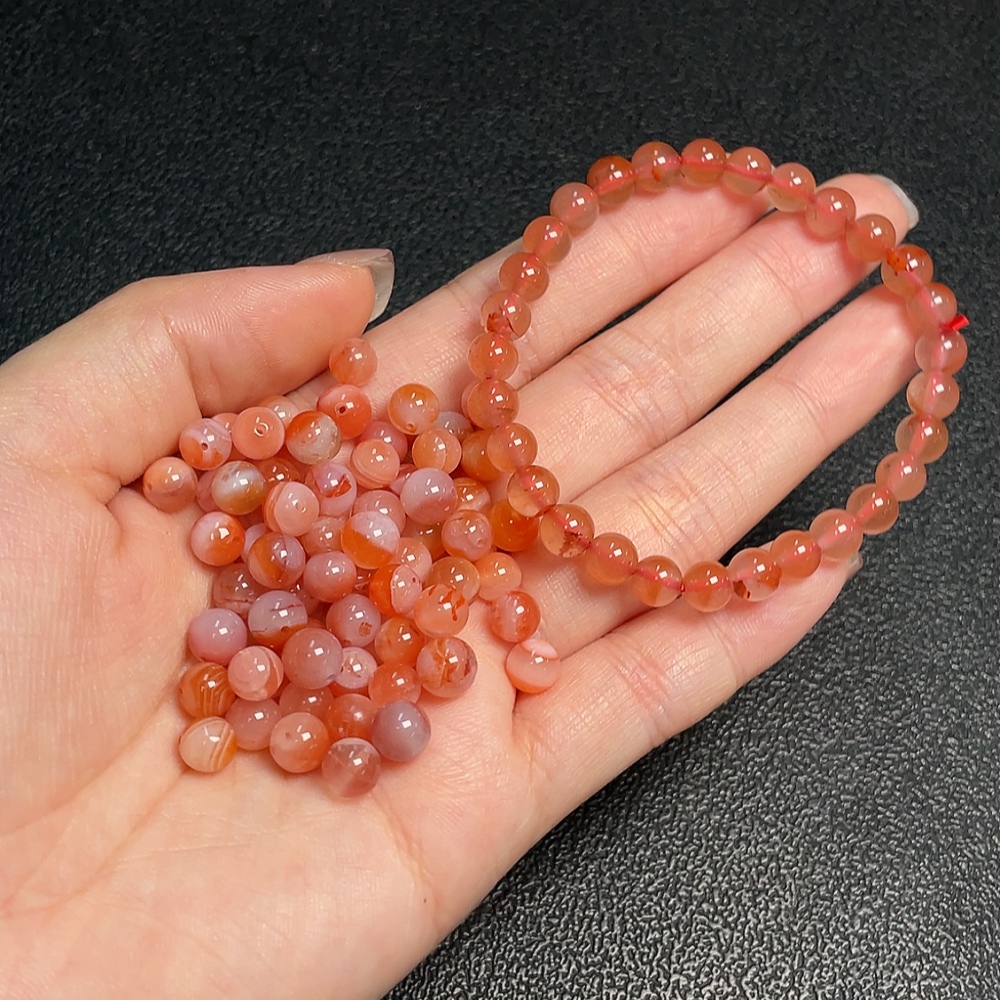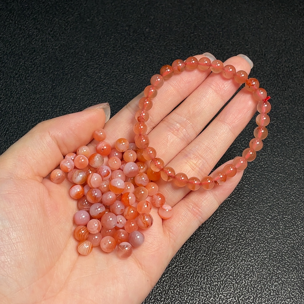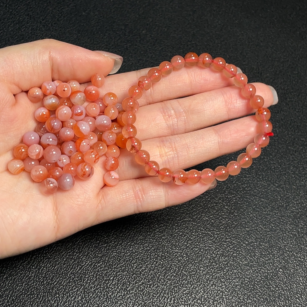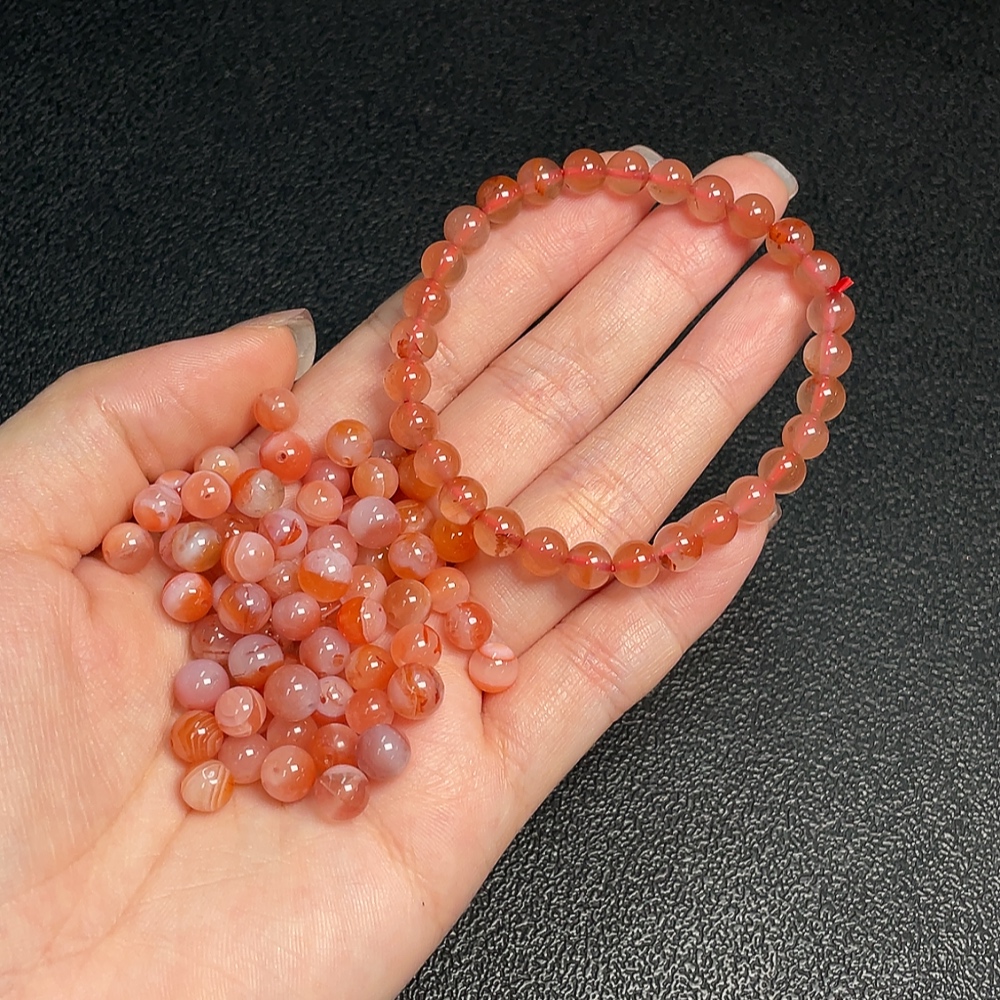 Red Agate Bracelet + Loose Beads with Visible Organic Matter, Total Weight Approx. 30.04g, Sell as a Lot, Quantity 30+