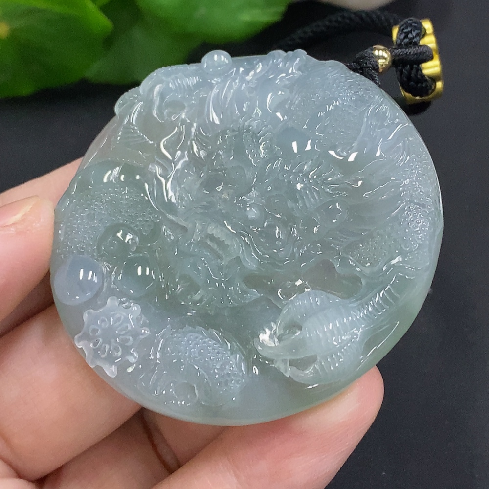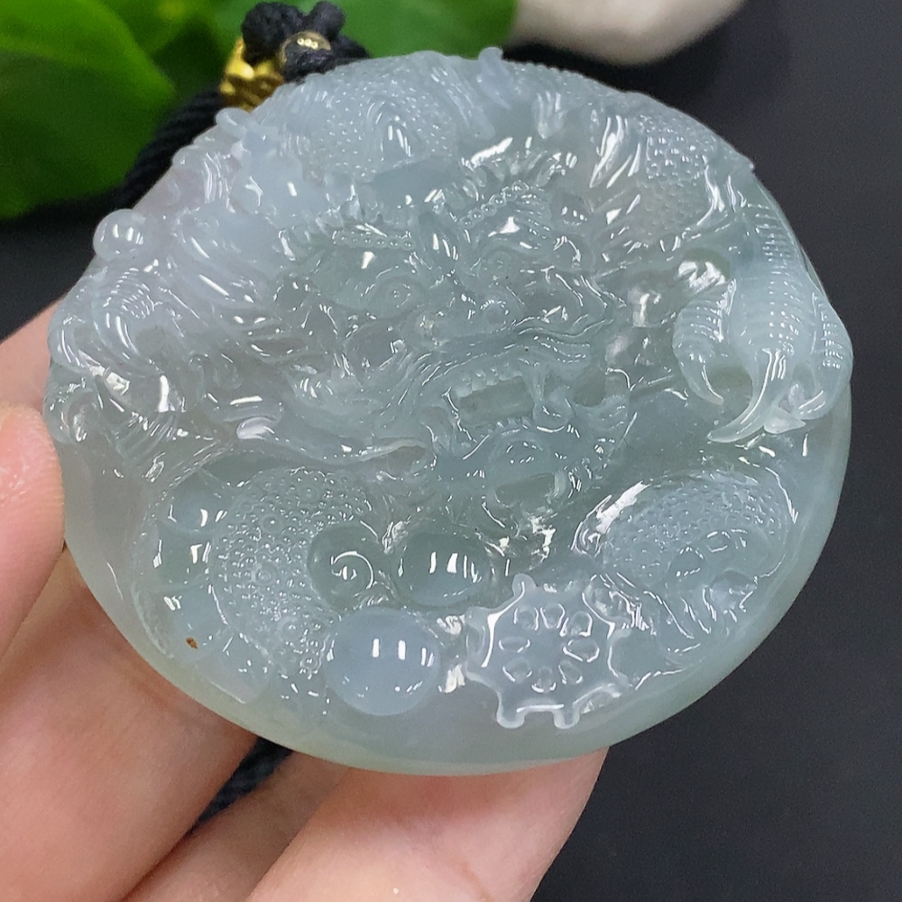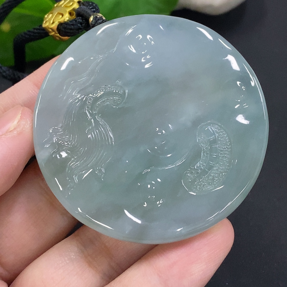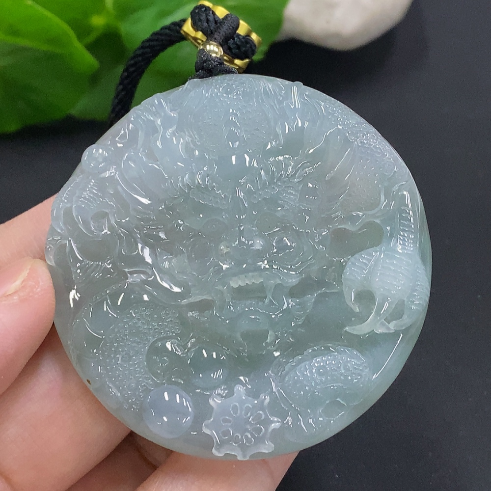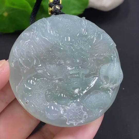 Jadeite Dragon Pendant, Total Weight Including Rope Approximately 58.2g
