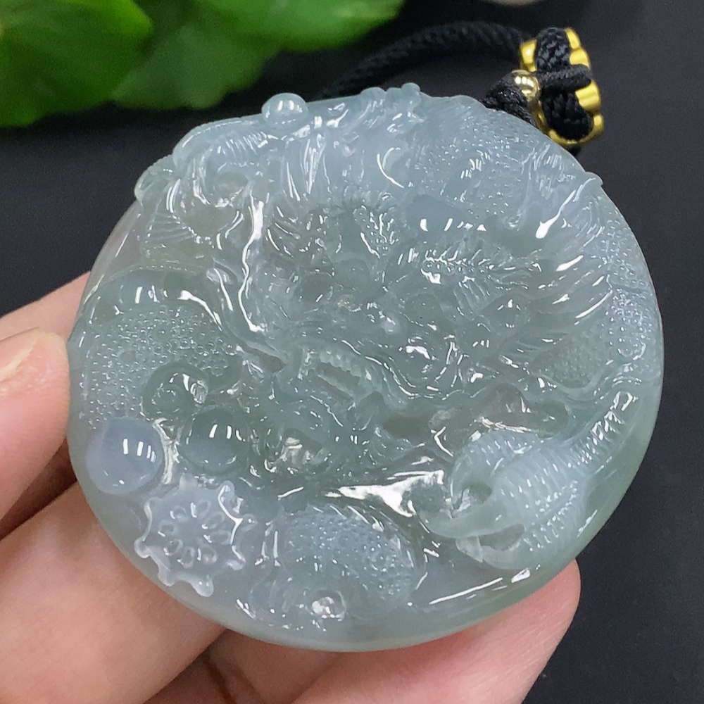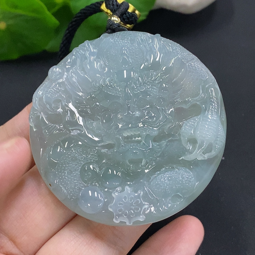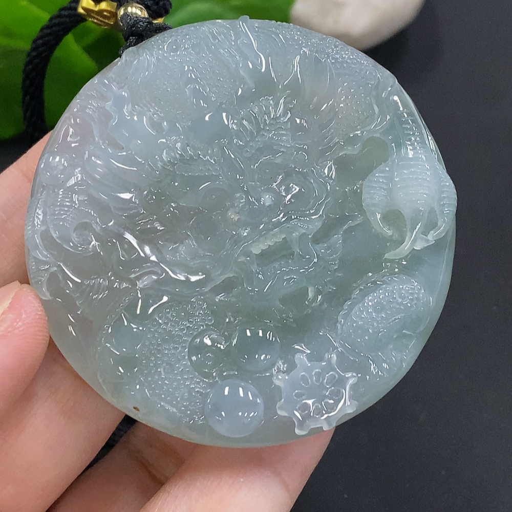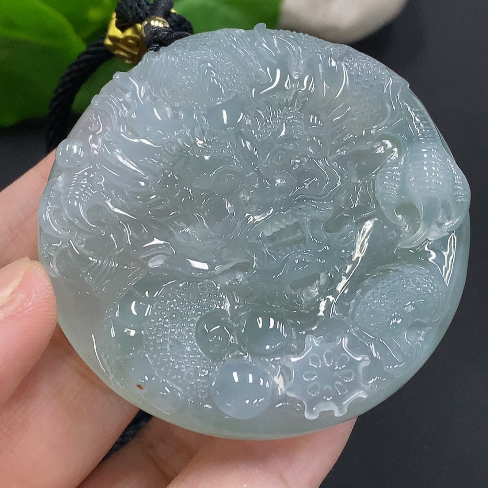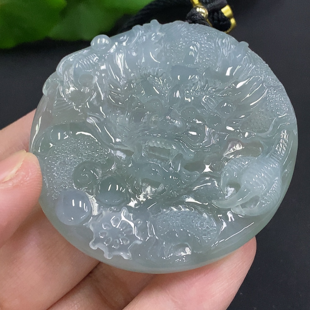 Jadeite Dragon Pendant, Total Weight Including Rope Approximately 58.2g