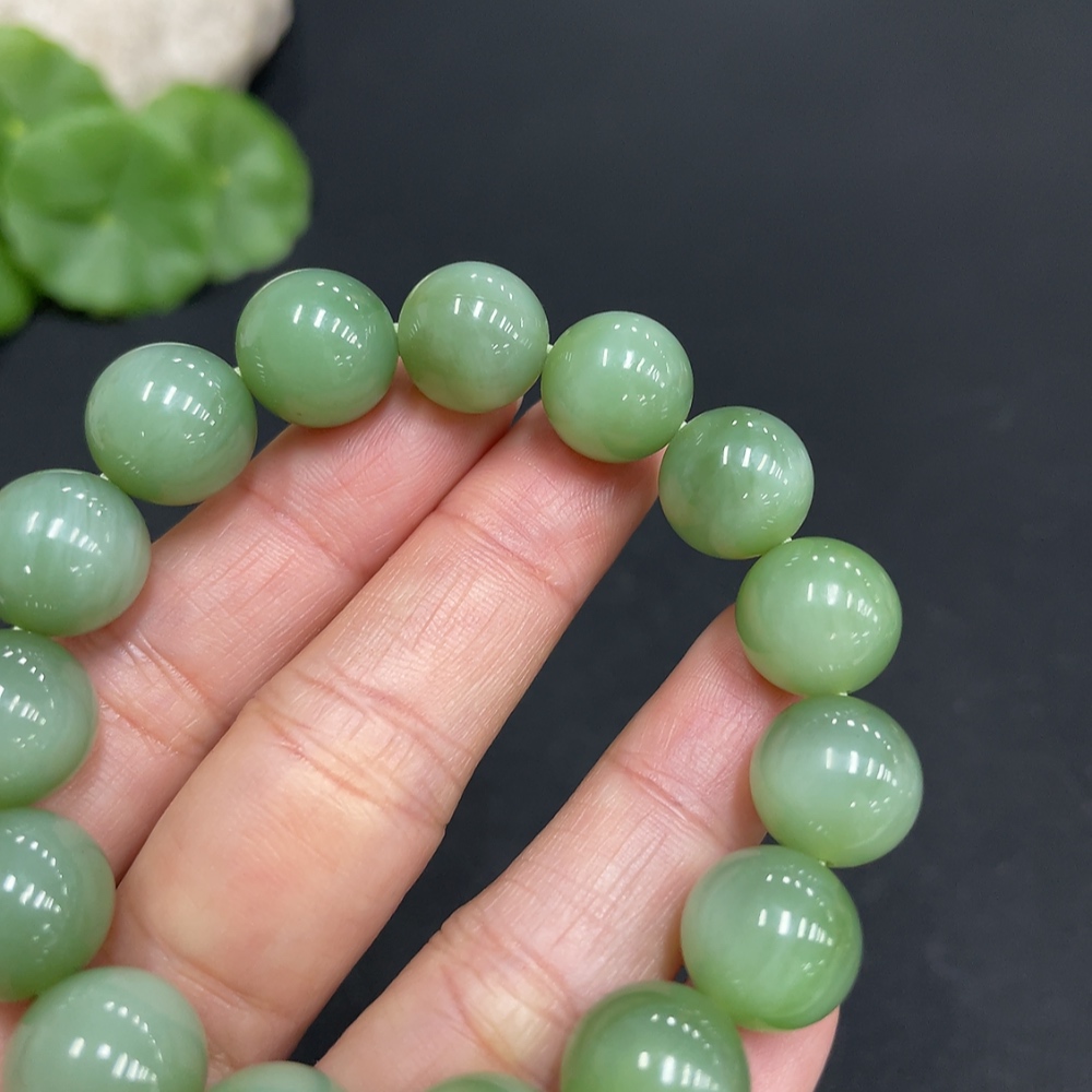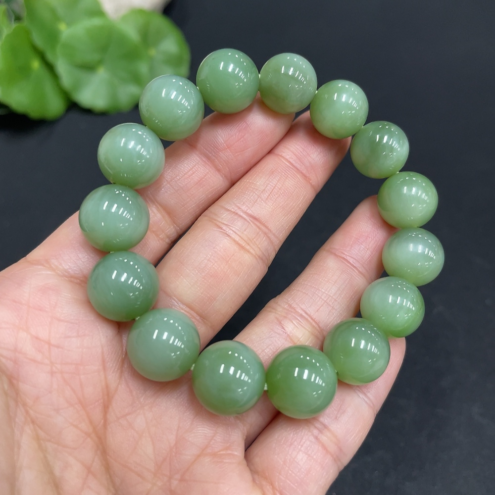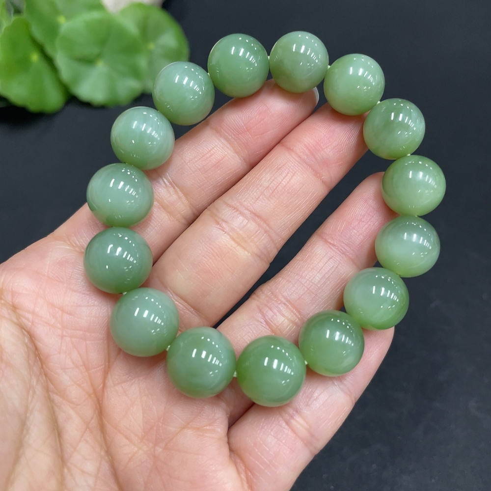 Hetian Jade Jasper Bracelet, approx. 11.8mm beads, total weight approx. 38.1g