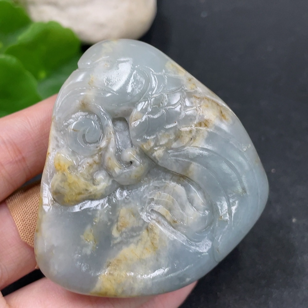 Hetian Jade Seed Material Hand Piece, Great Ambitions, Undetermined Skin Color Origin, Contains Other Mineral Components, Total Weight Approximately 128.8g