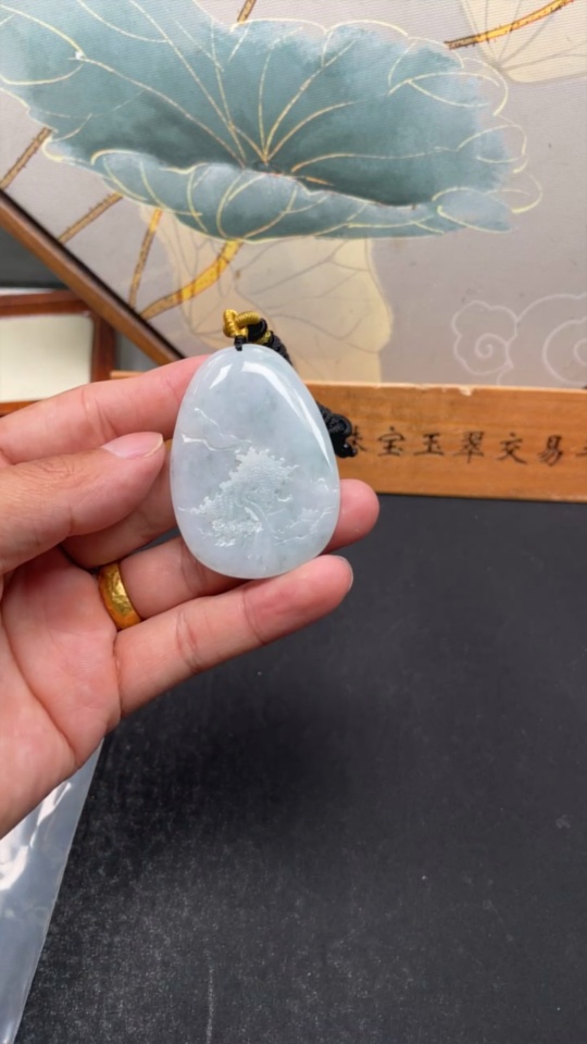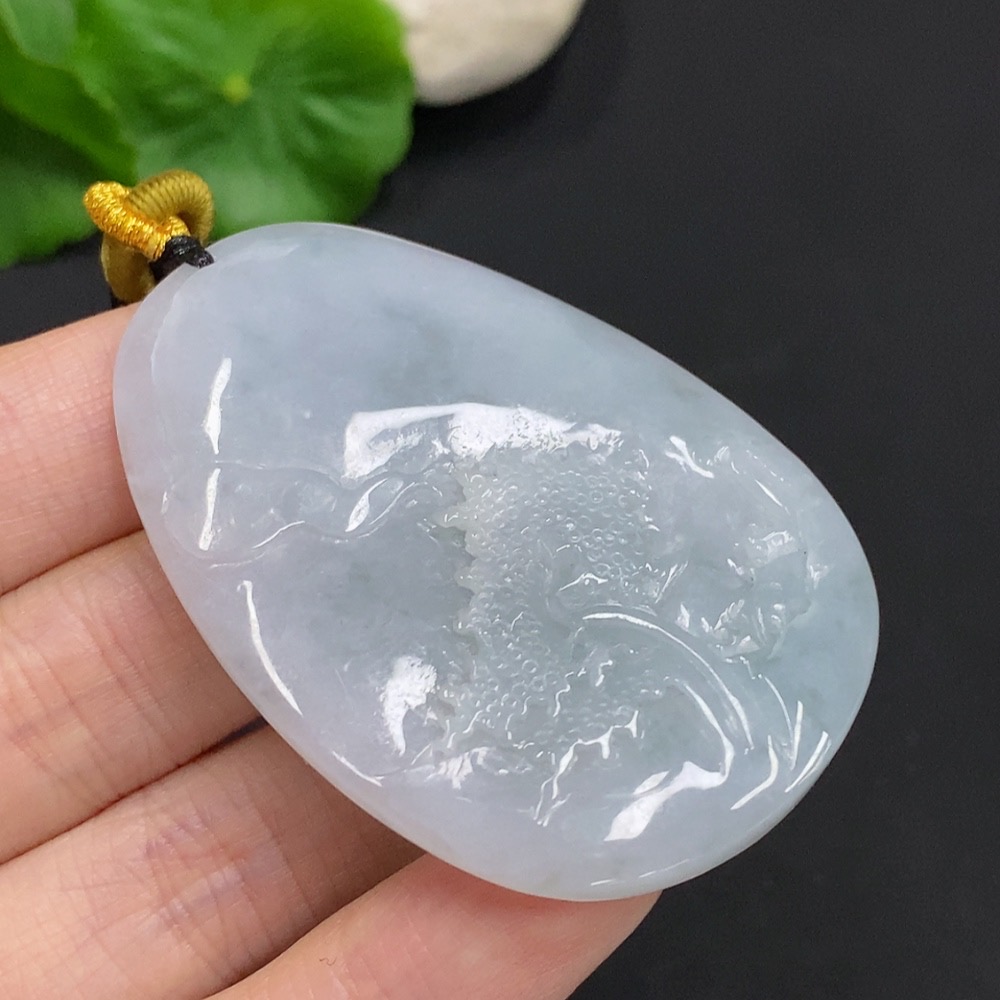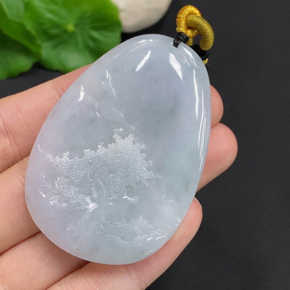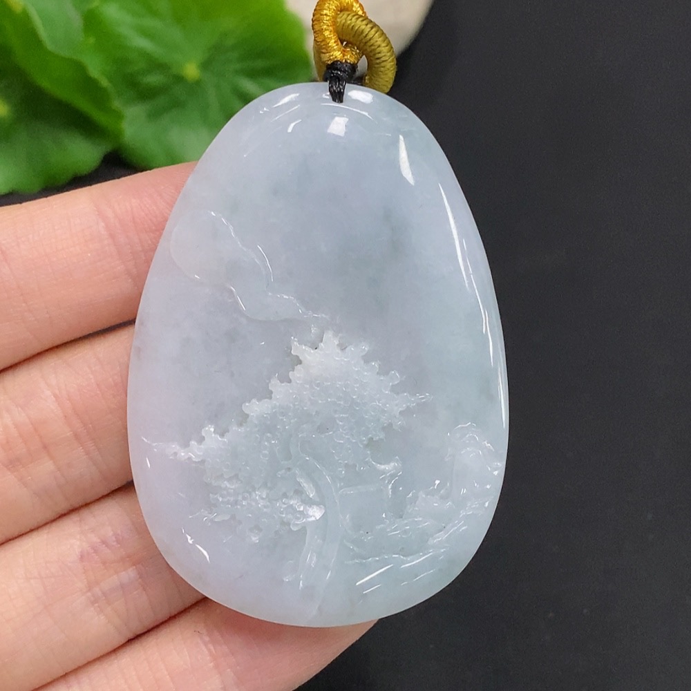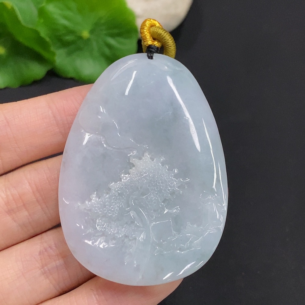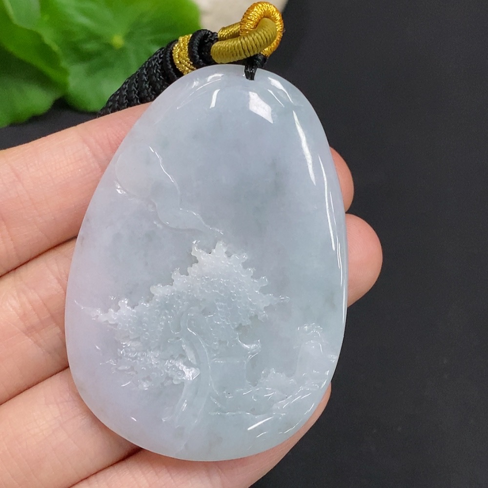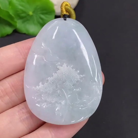 Jadeite Landscape Pendant Hanging Piece Total Weight Approximately 31.5g (Including Rope Weight)