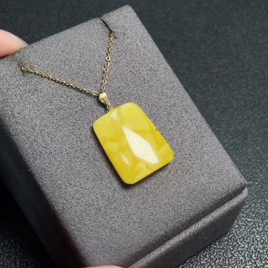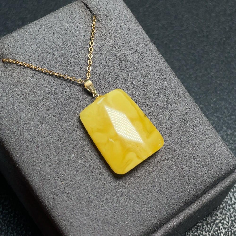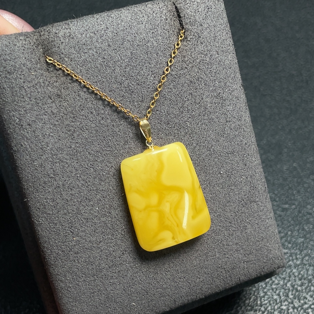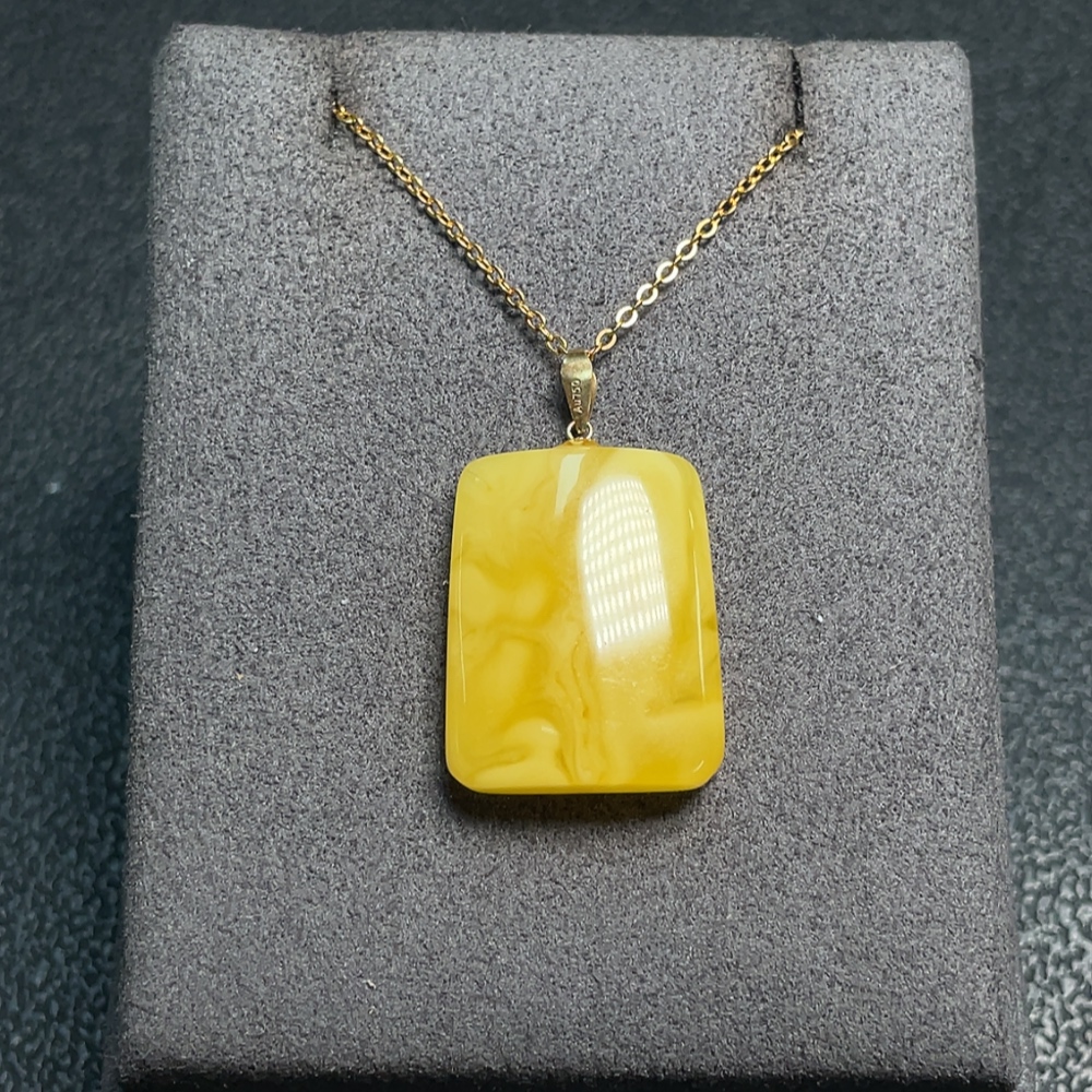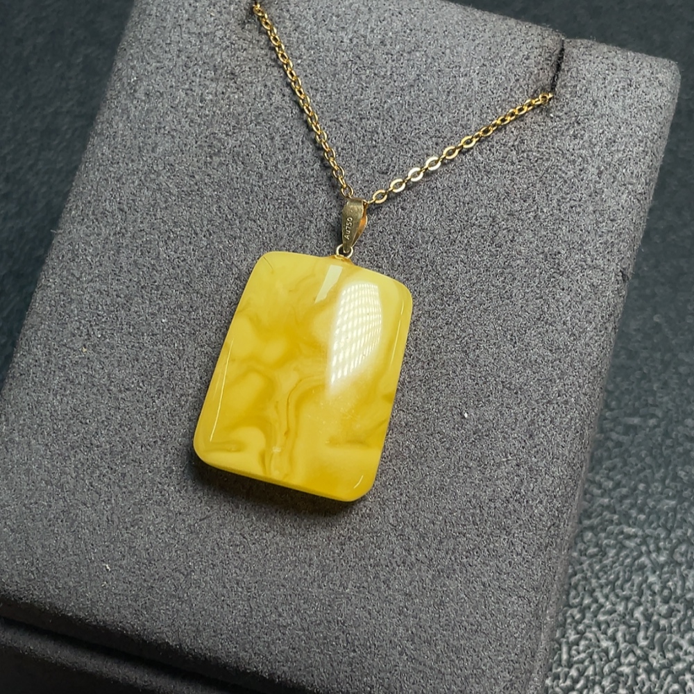 Amber Beeswax Pendant Necklace Non-Gold Chain 18K Gold Pendant Total Weight Approx. 2.86g Including Chain