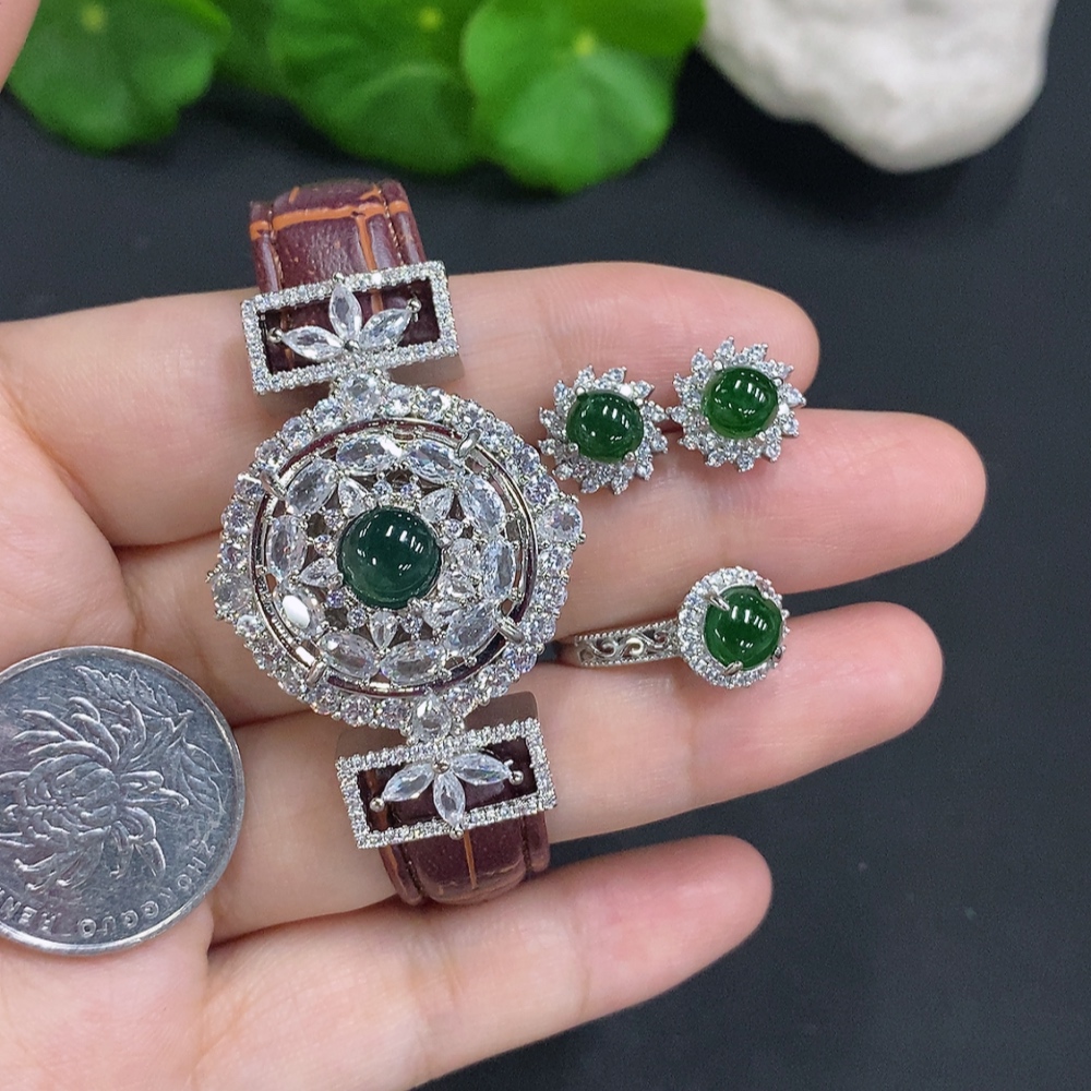 Jadeite Cabochon Set with Movable Size (Sell as a Lot, Non-Gold Setting)