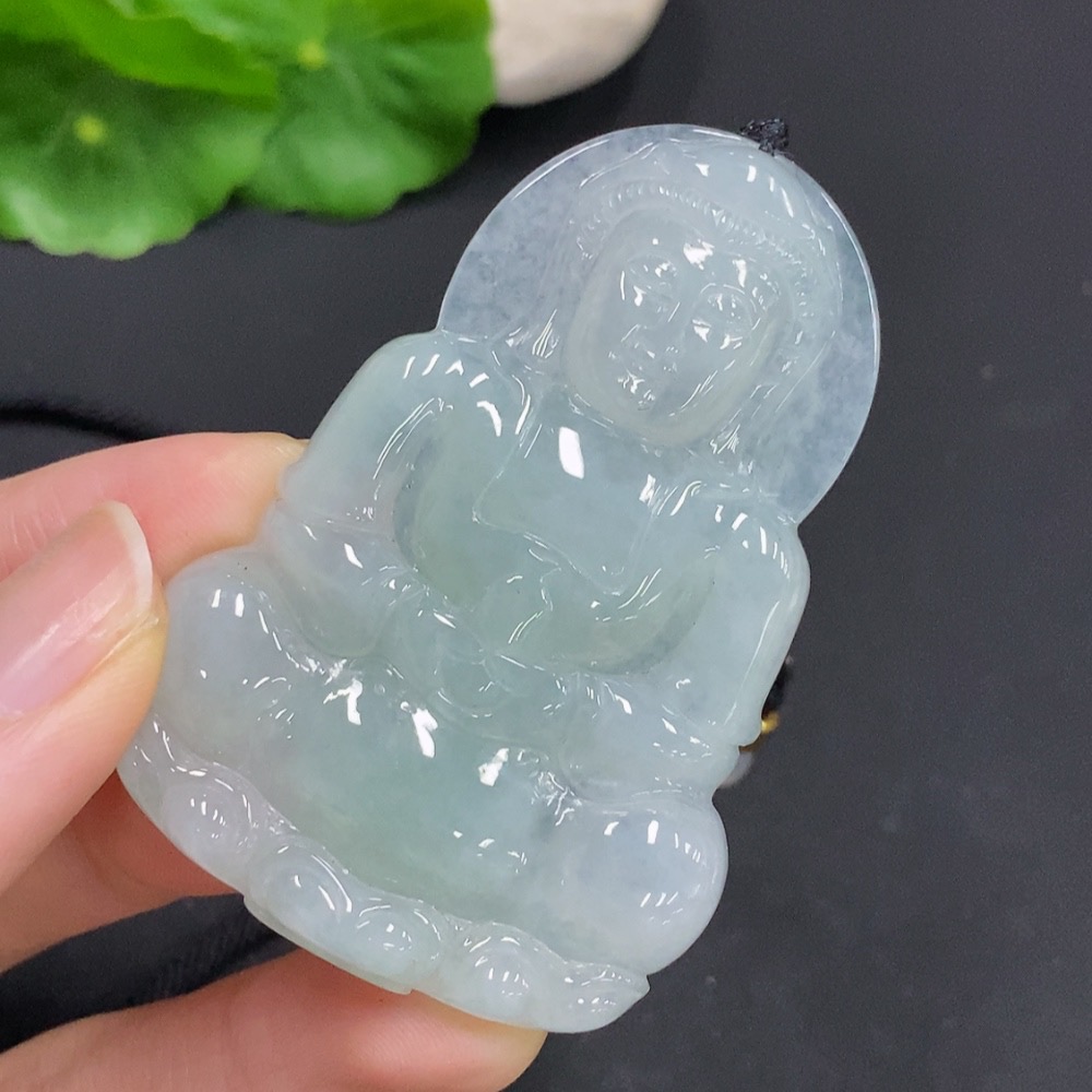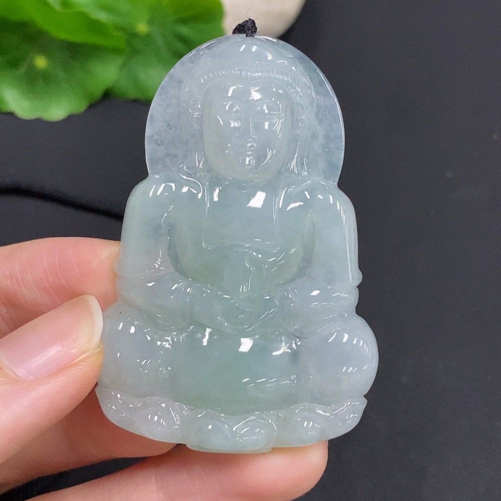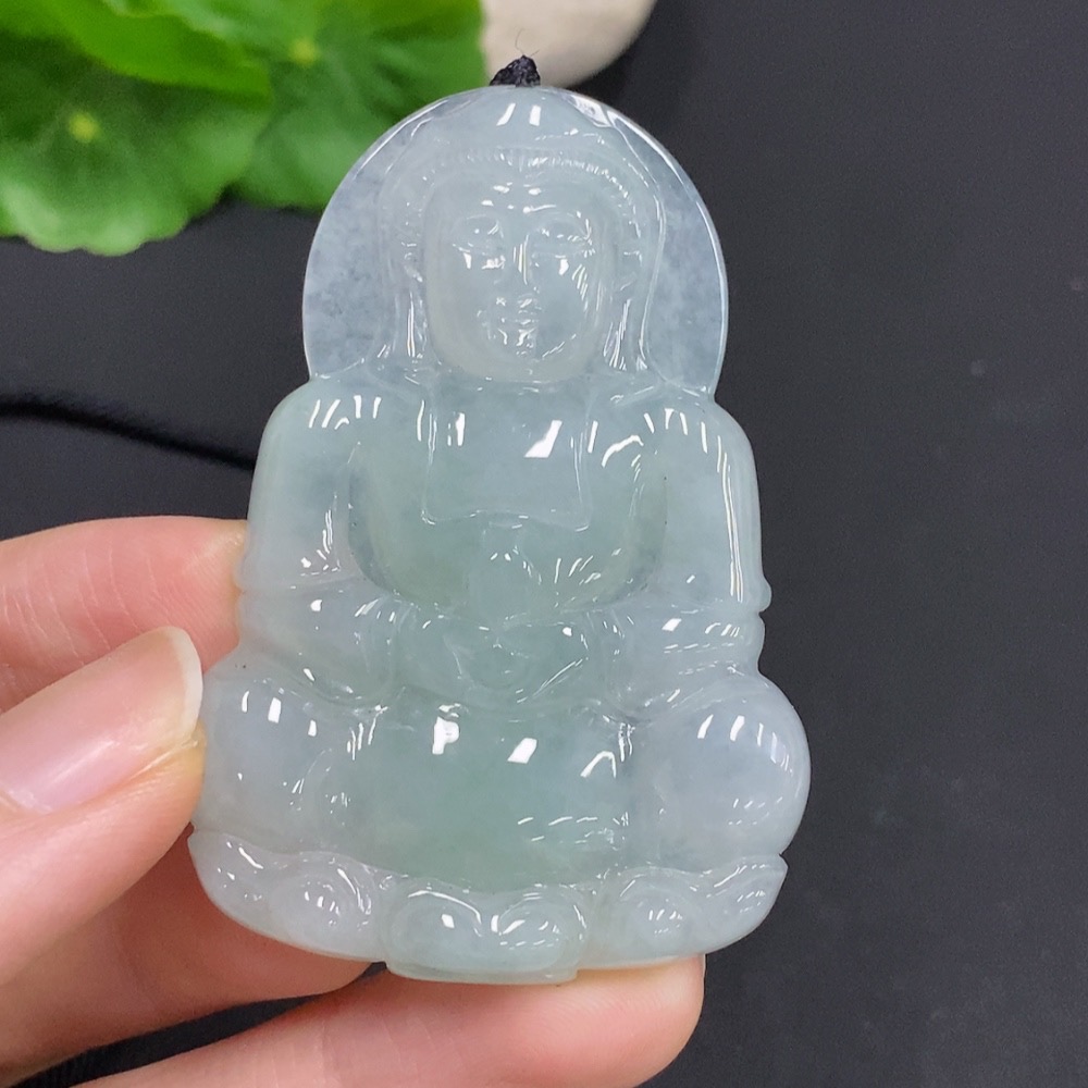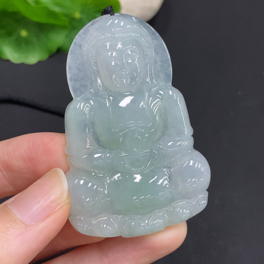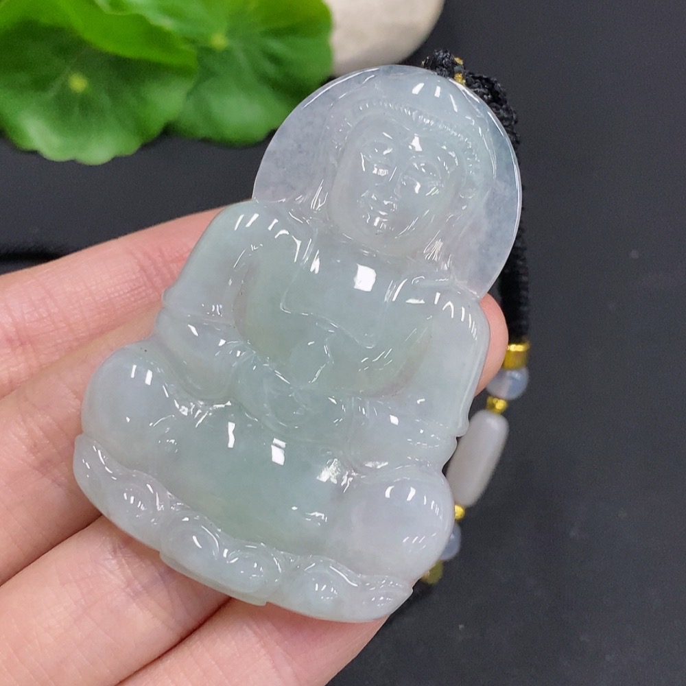 Jadeite Guanyin Pendant Total Weight Approx. 32.7g (Including Rope Weight) Beads Not Jadeite