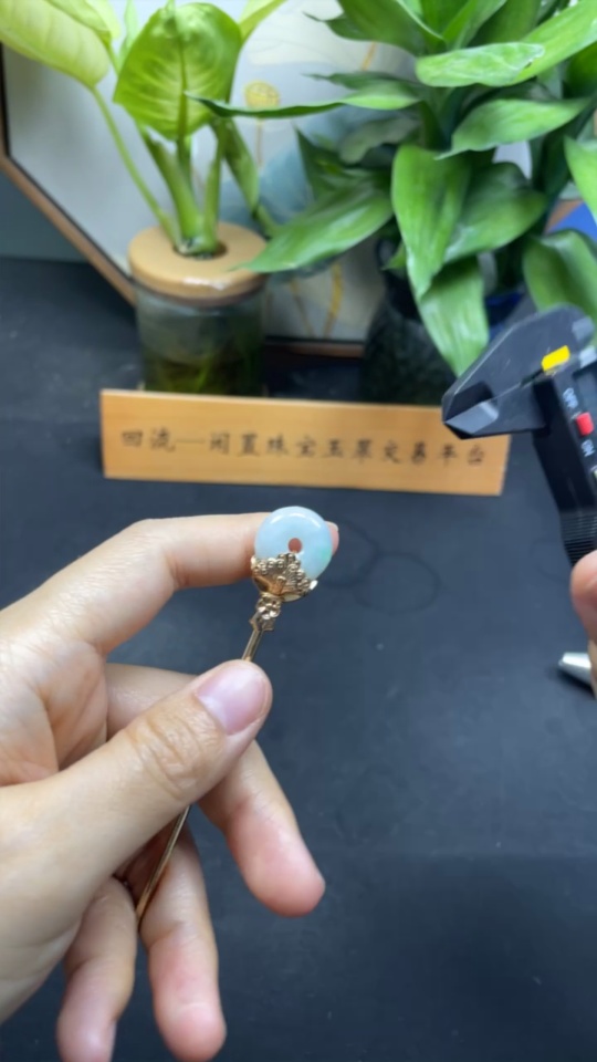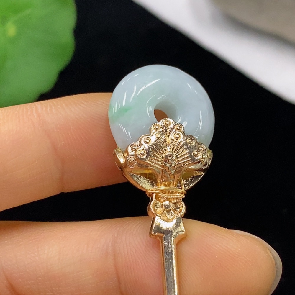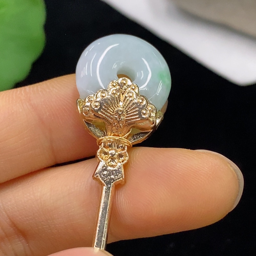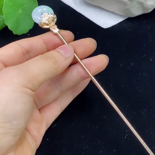 Jadeite inlaid hairpin Total weight about 10g (non-gold inlaid)