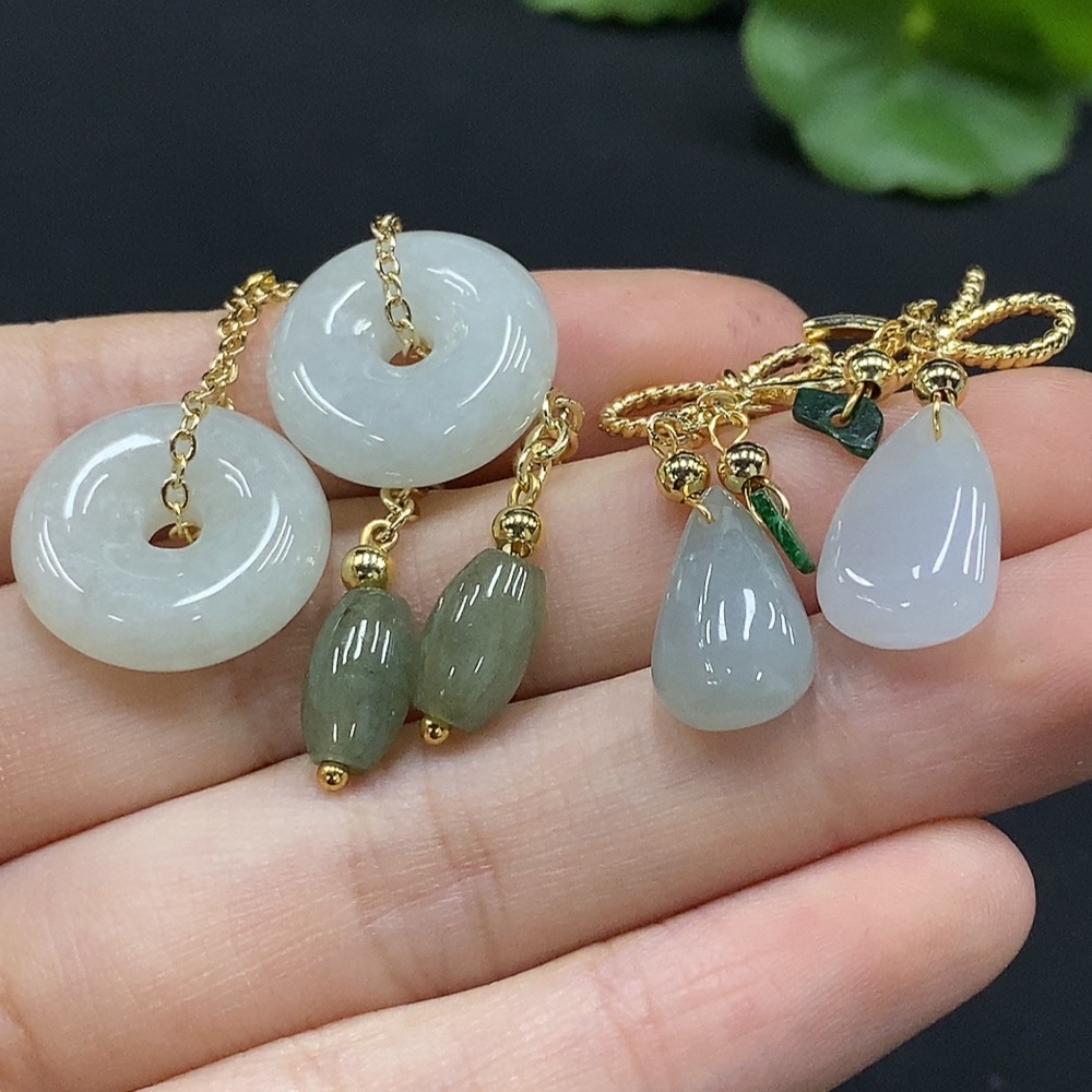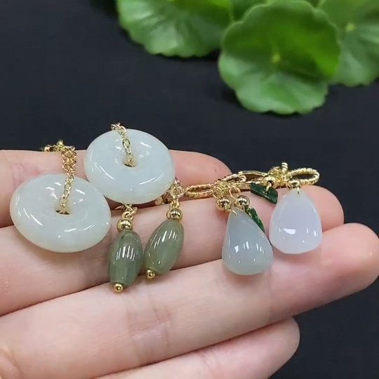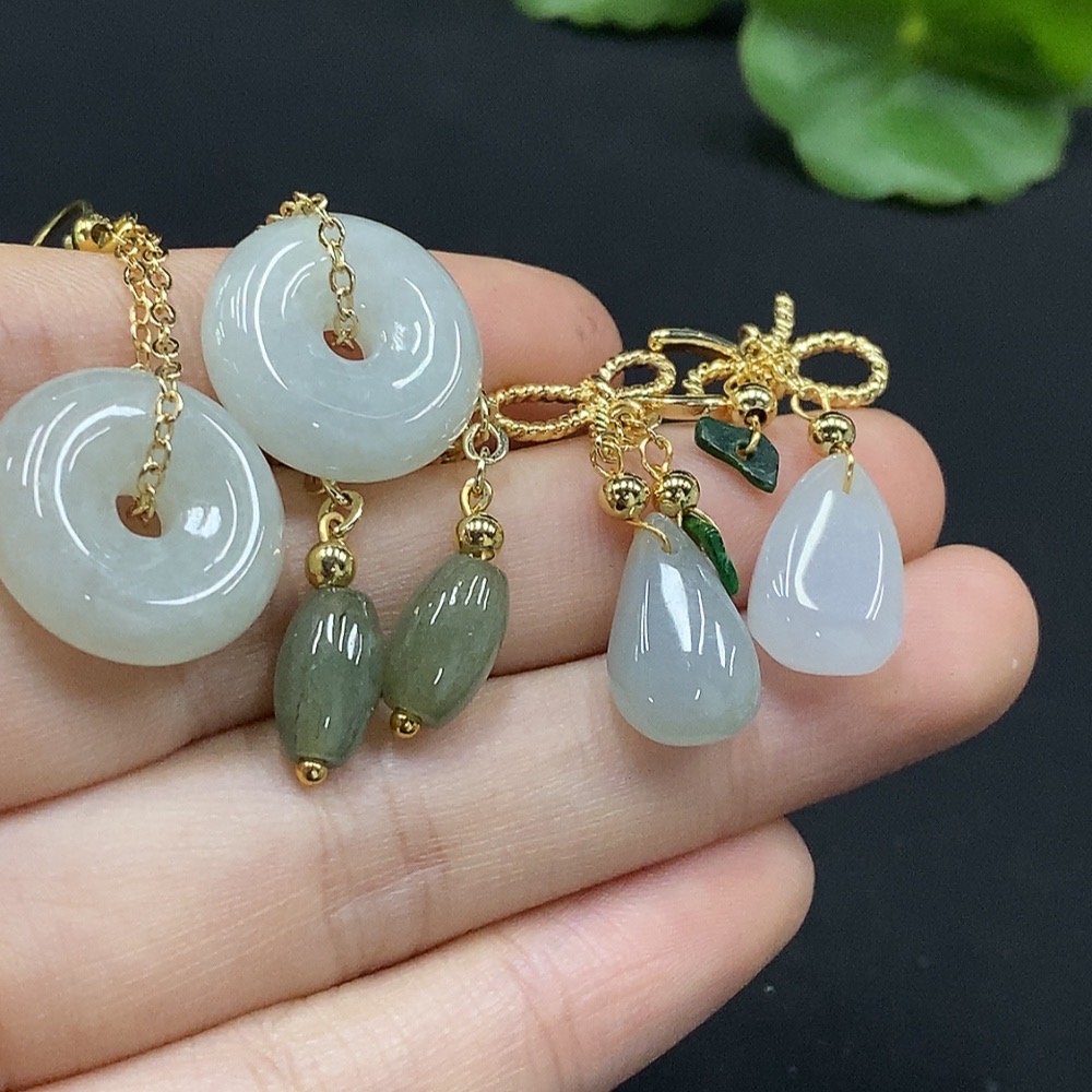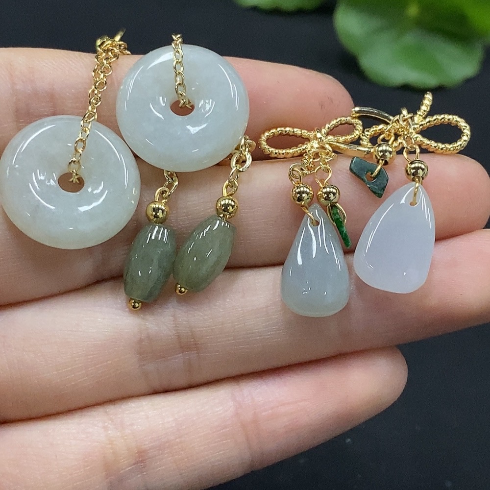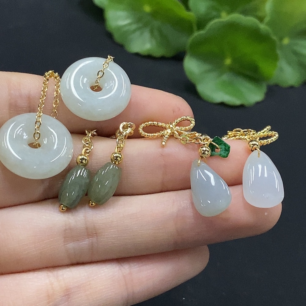 Jadeite Inlaid Earrings Sell as a Lot (Non-Gold Inlaid) (Beads Non-Grade A)