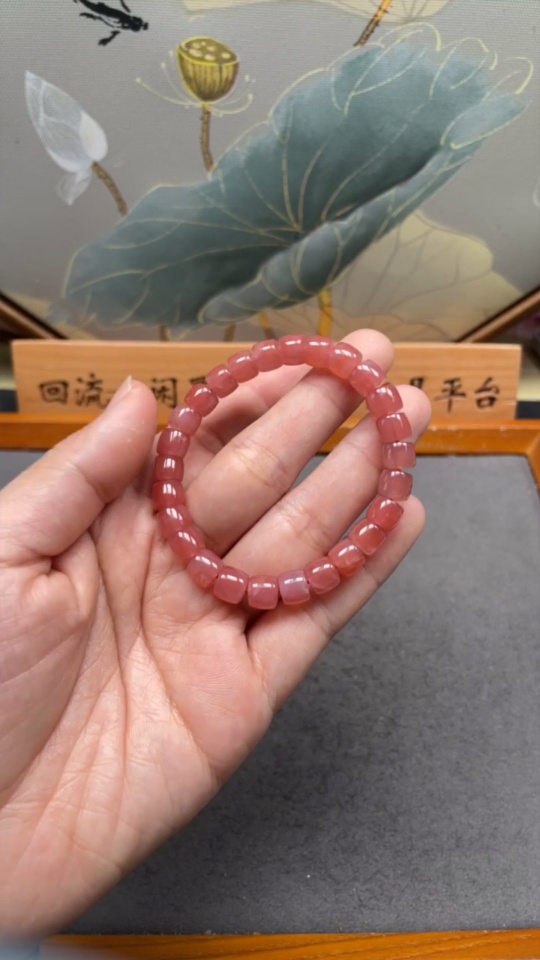 South Red Agate Bracelet with Visible Organic Matter, Total Weight Approx. 17.16g, Size About 7.6mm