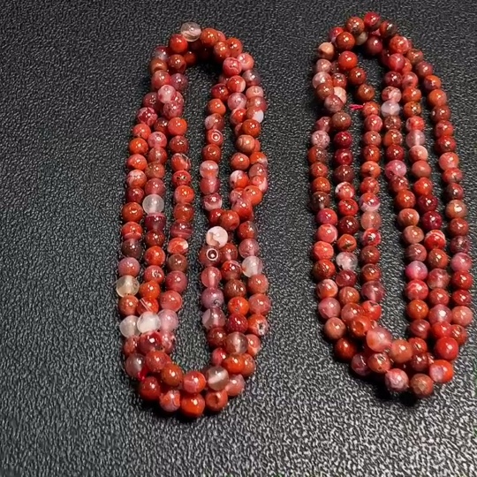 South Red Agate Bead Strand with Visible Organic Matter, Total Weight Approx. 64.22g, Sell as a Lot
