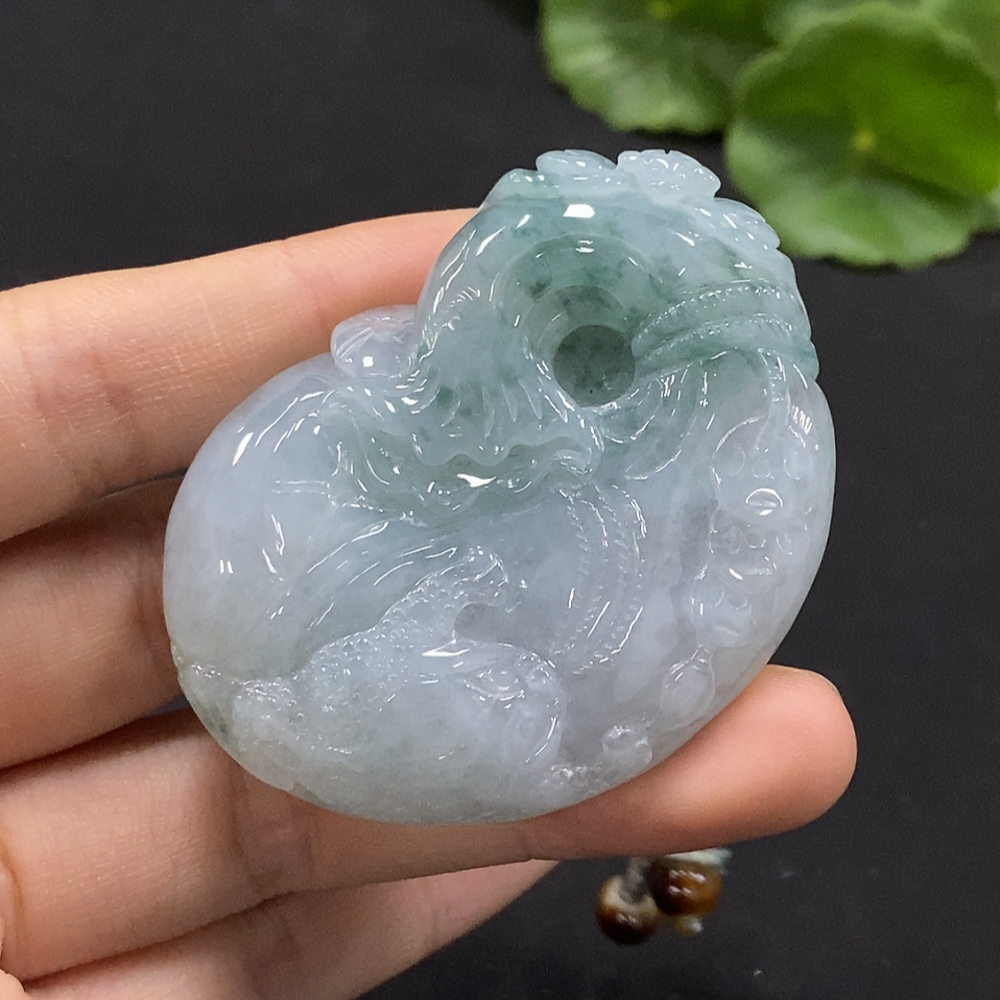 Jadeite Money Bag Pendant Total Weight Including Rope Approximately 52.4g