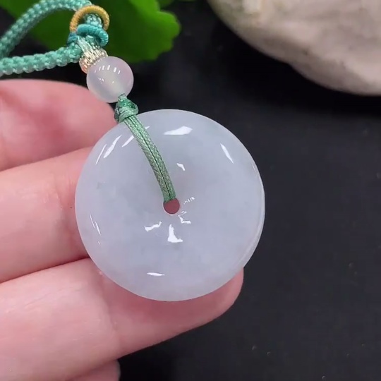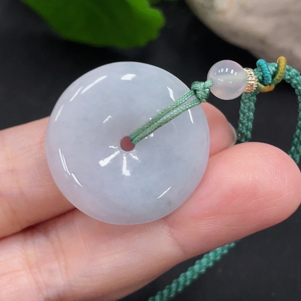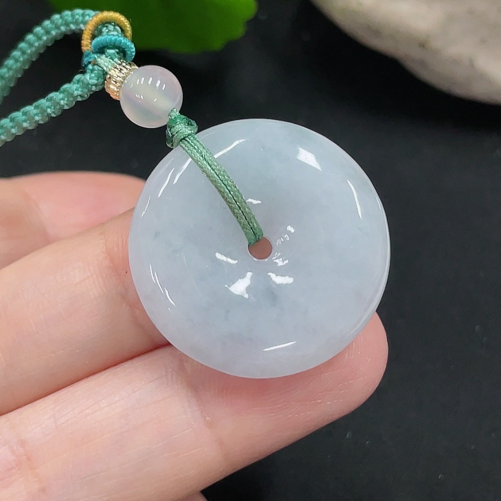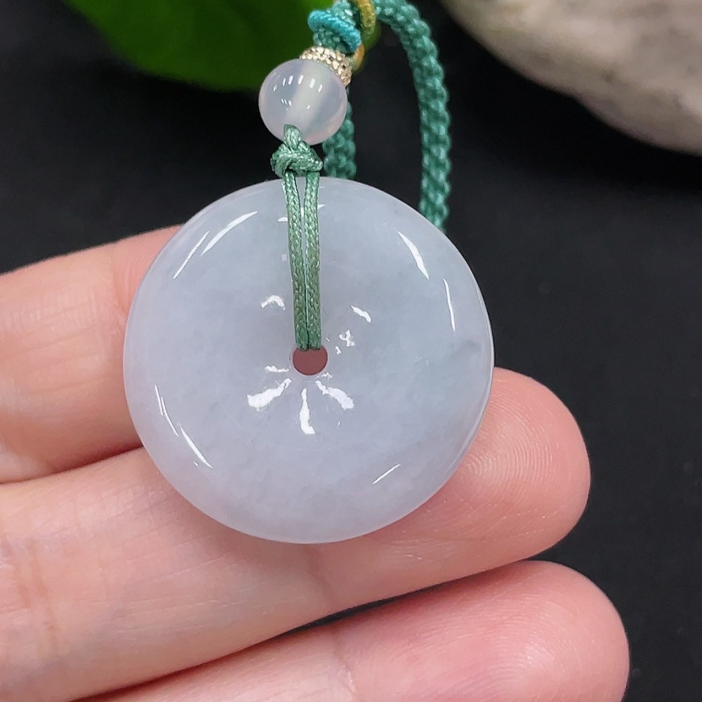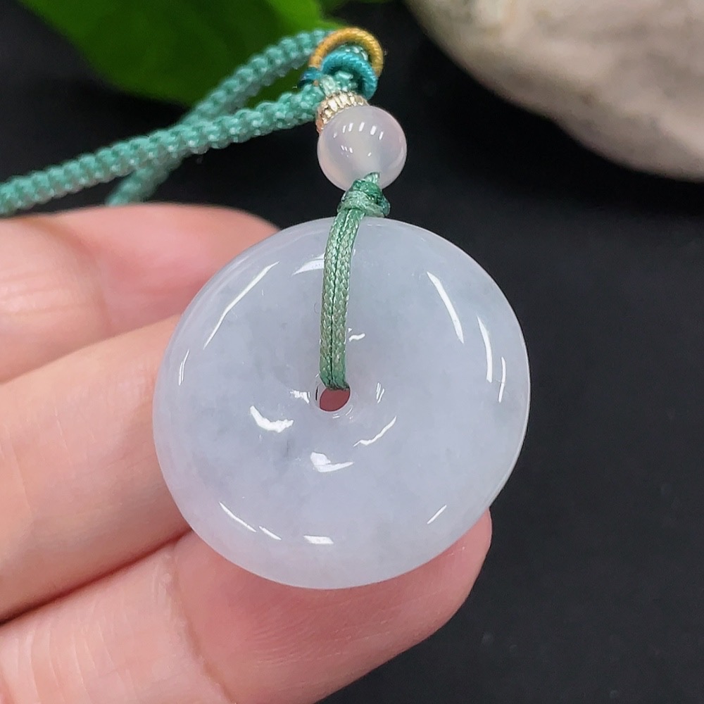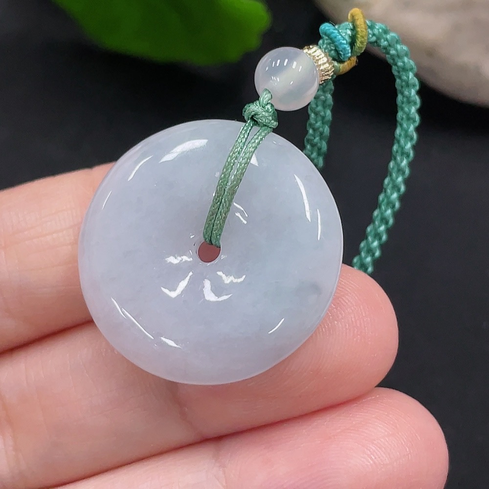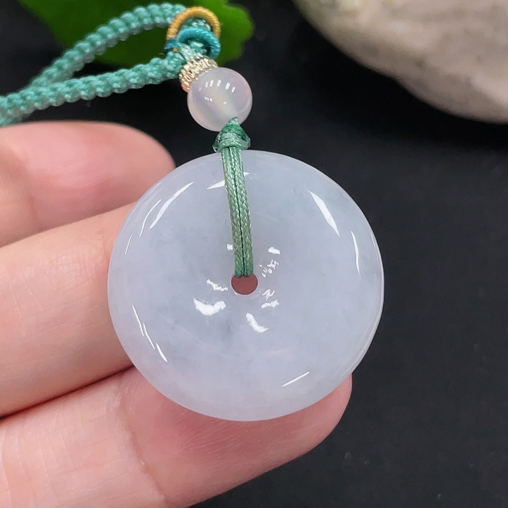 Jadeite Safety Buckle Pendant Total Weight Approx. 9.8g (Including Rope Weight) (Matching Beads Non-Grade A)