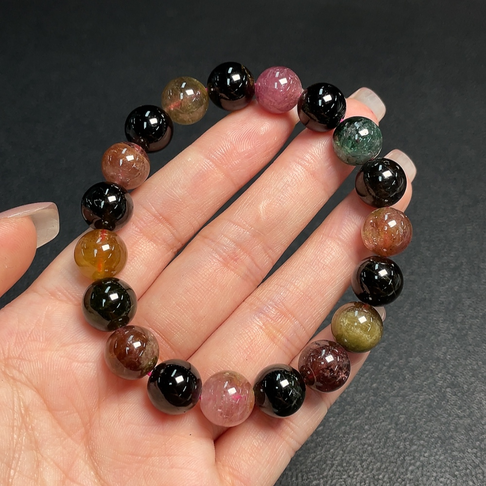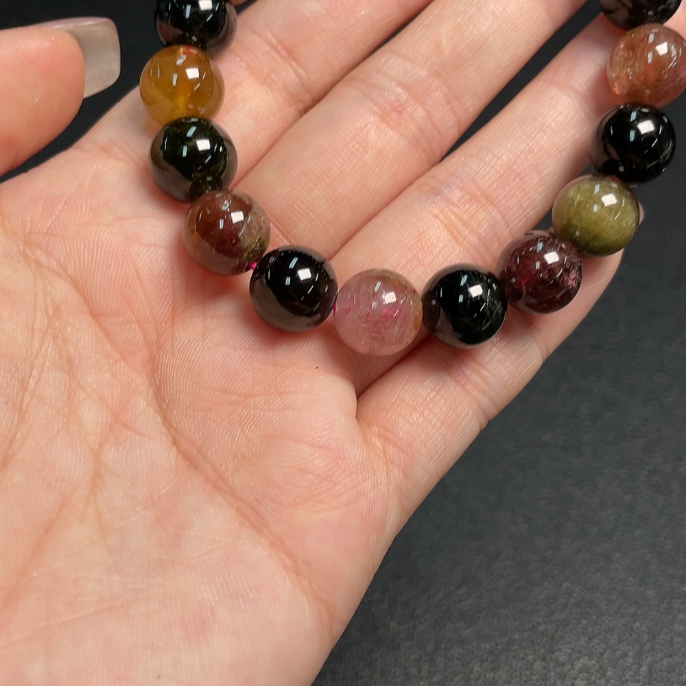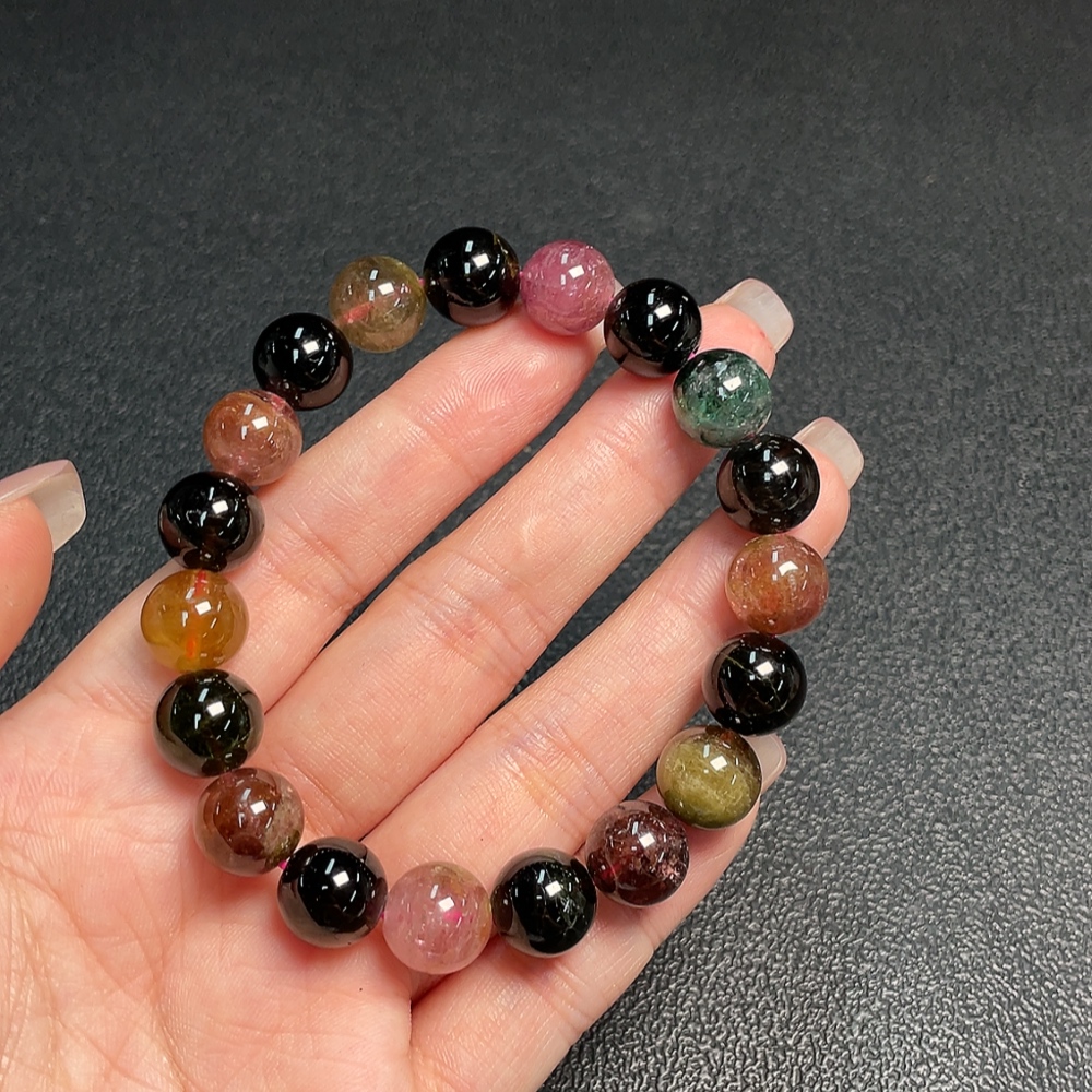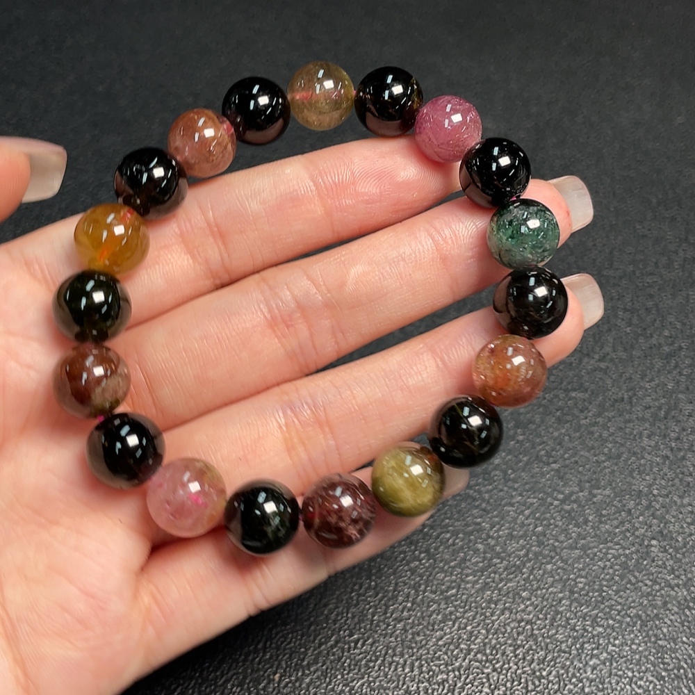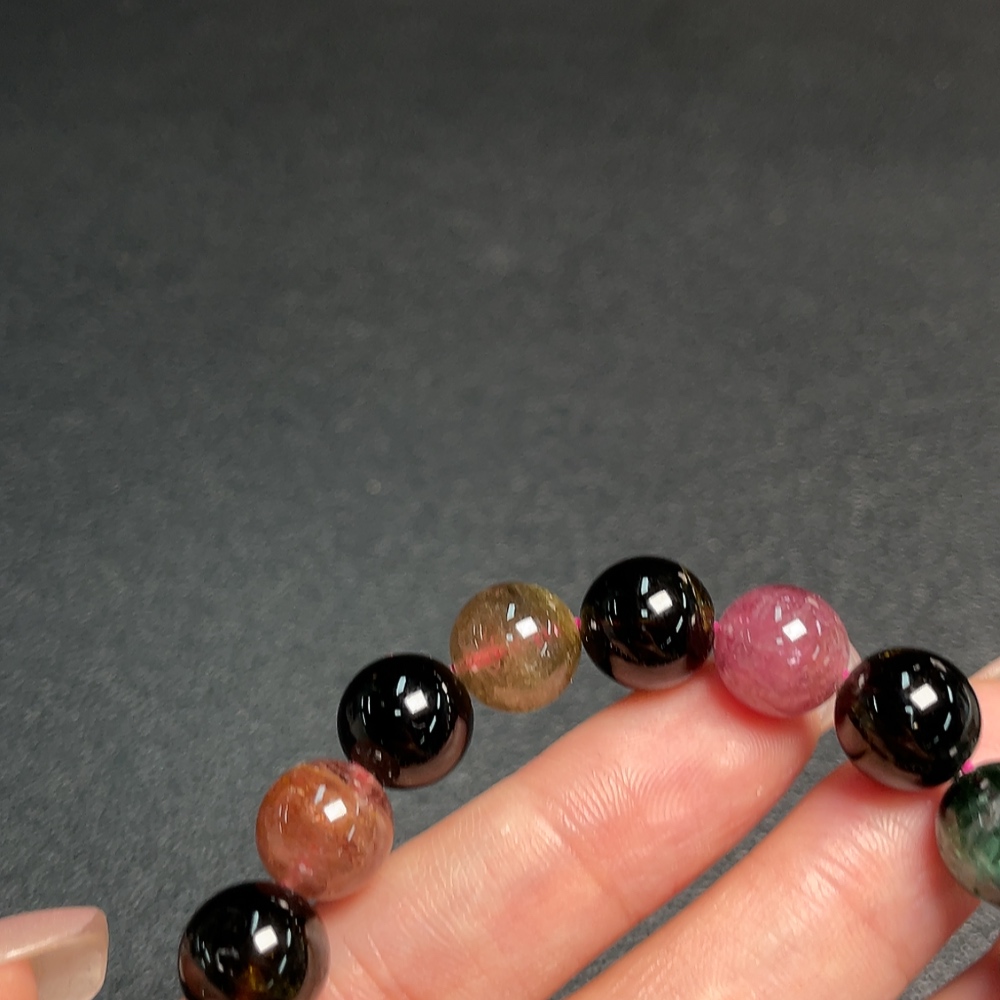 Tourmaline bracelet containing other mineral components, visible organic matter, total weight approximately 36.6g, size about 10.6mm
