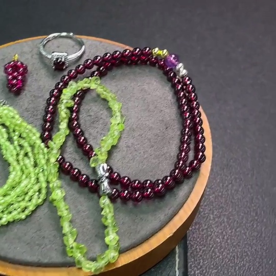 Garnet with synthetic accent stones + Peridot jewelry, non-gold, total weight approx. 36.17g, sell as a lot