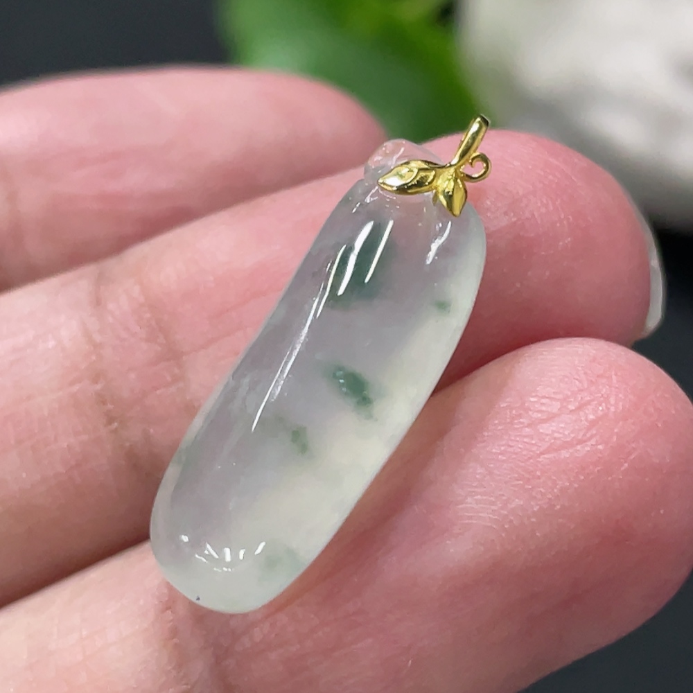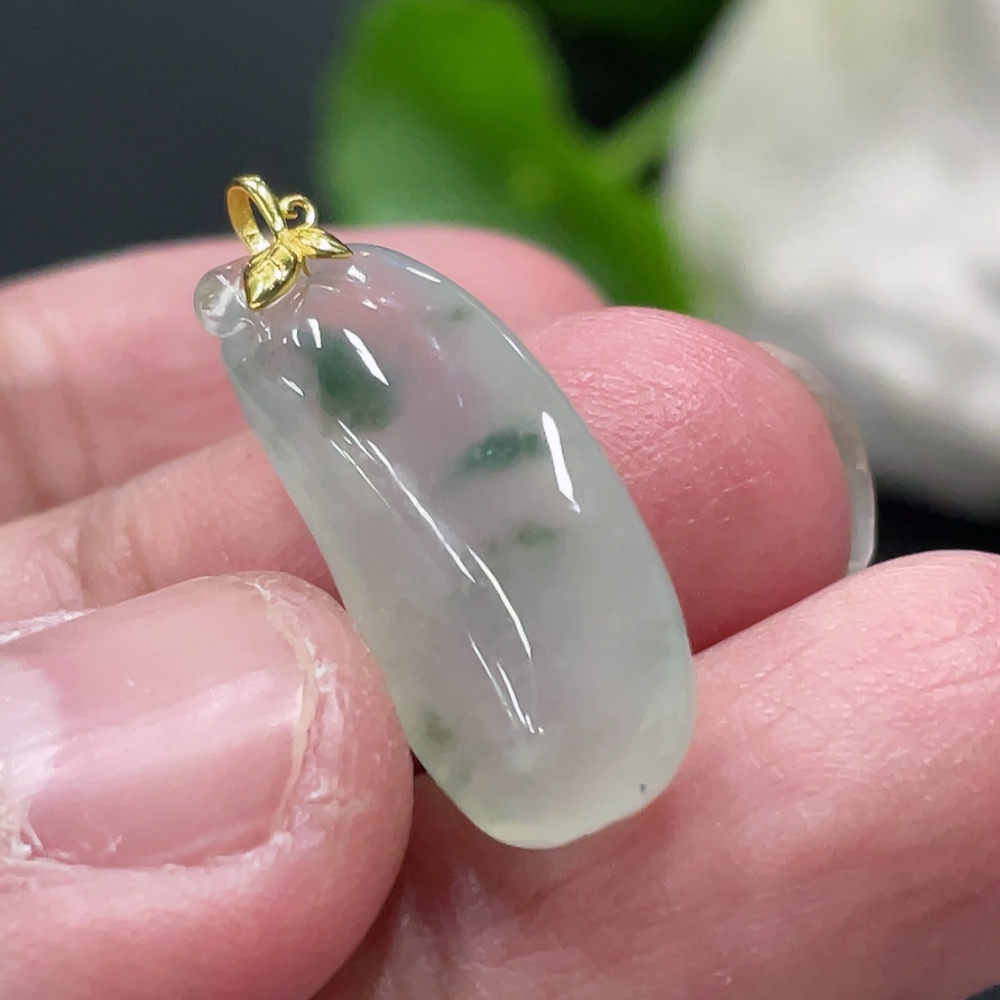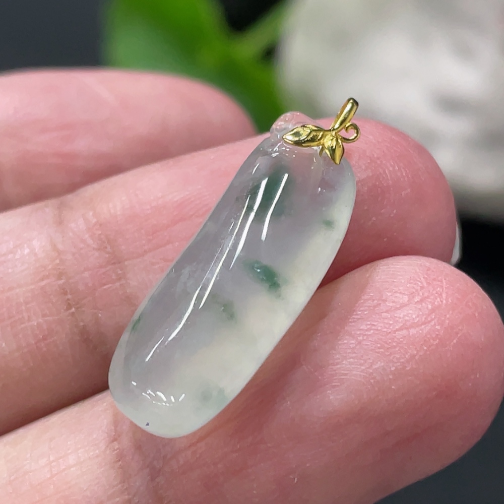 Jadeite Blessing Melon Pendant with 18k Gold Clasp, Total Weight Approximately 2.5g