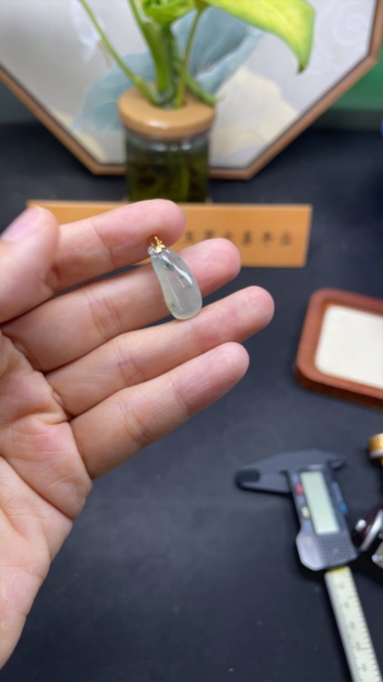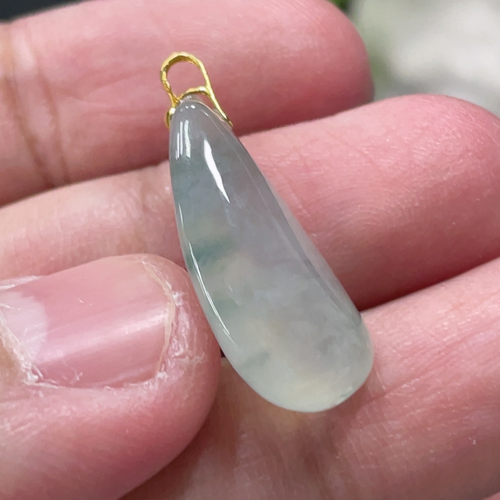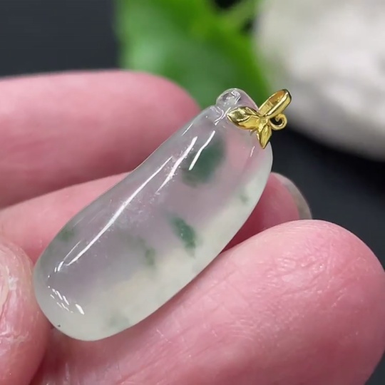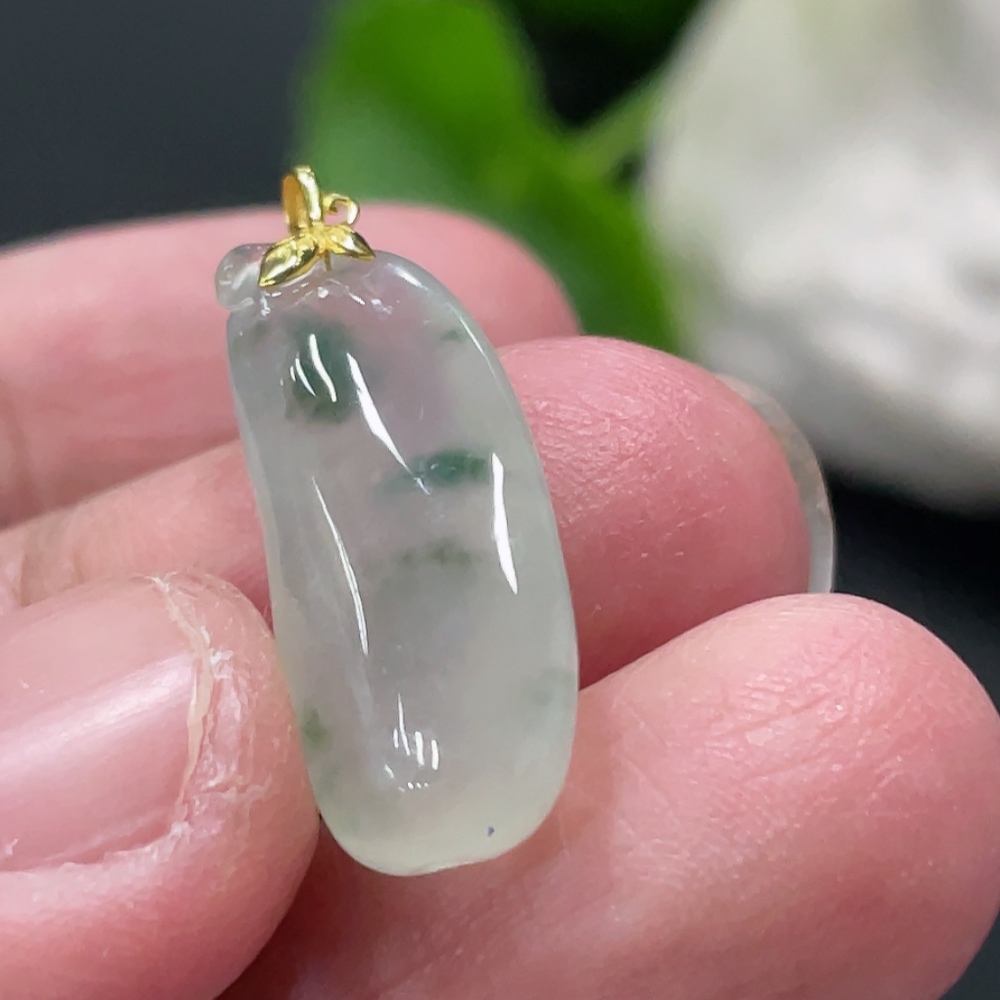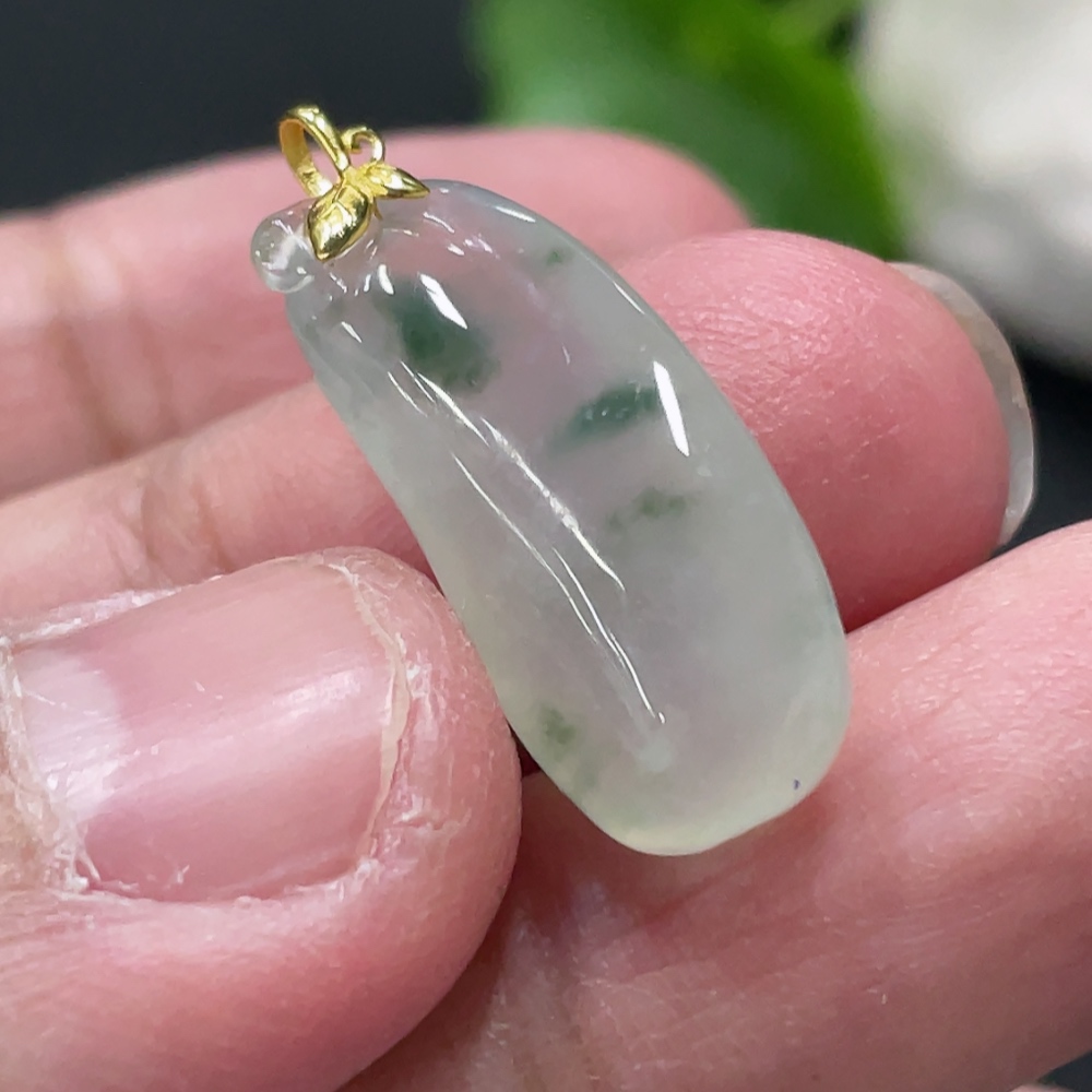 Jadeite Blessing Melon Pendant with 18k Gold Clasp, Total Weight Approximately 2.5g