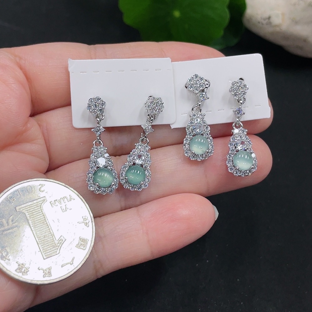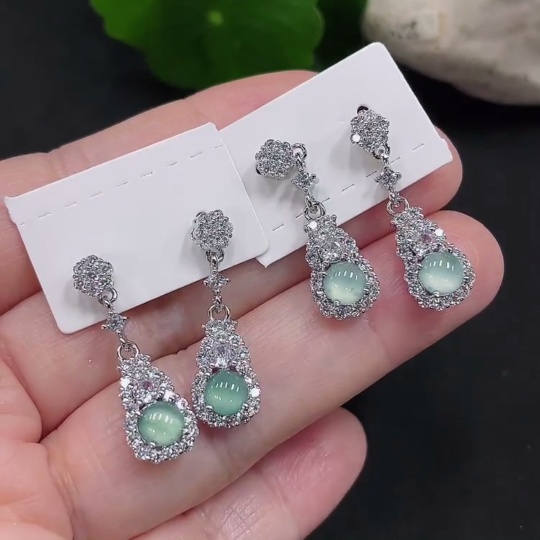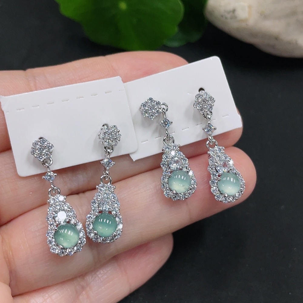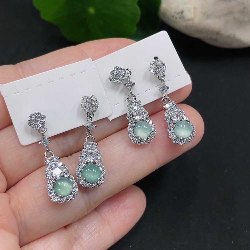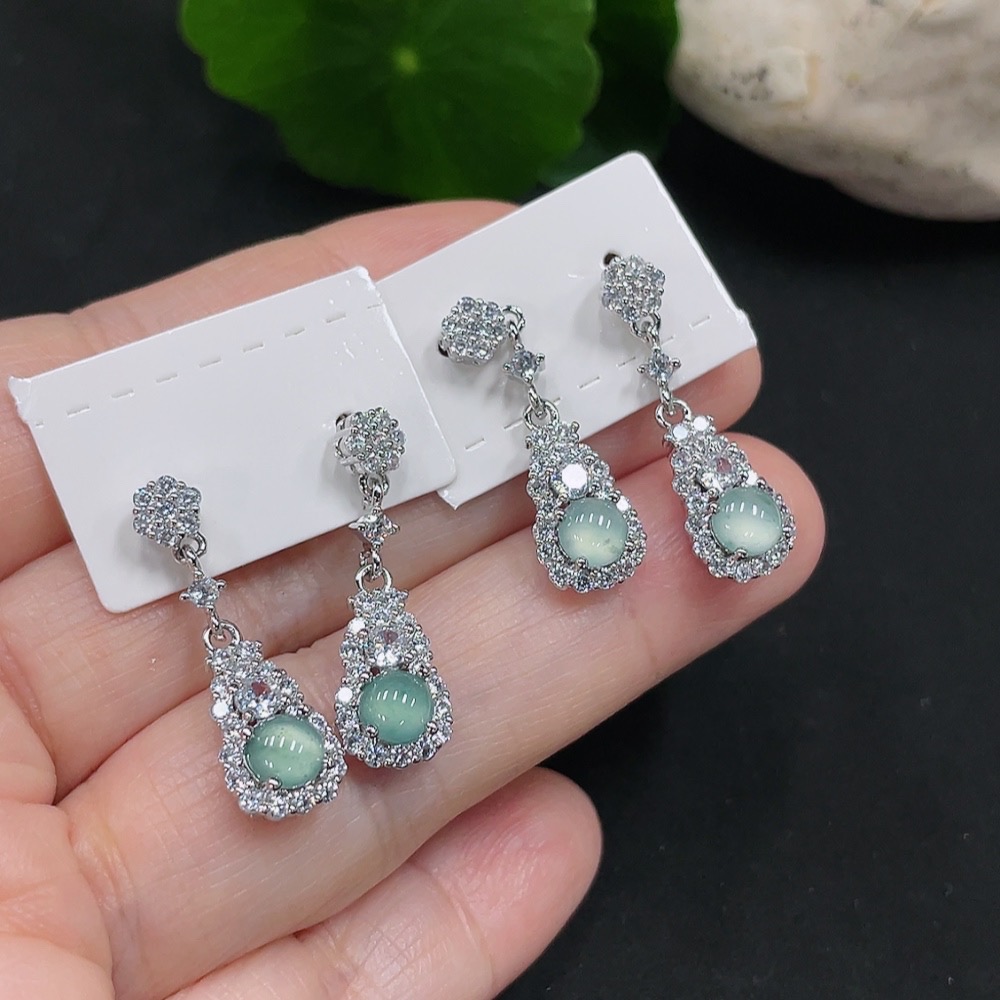 Jadeite Cabochon Earrings, Non-Gold Setting