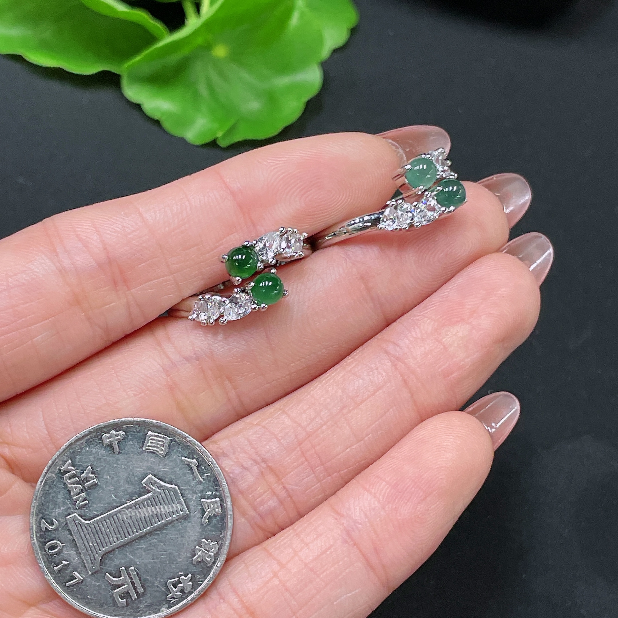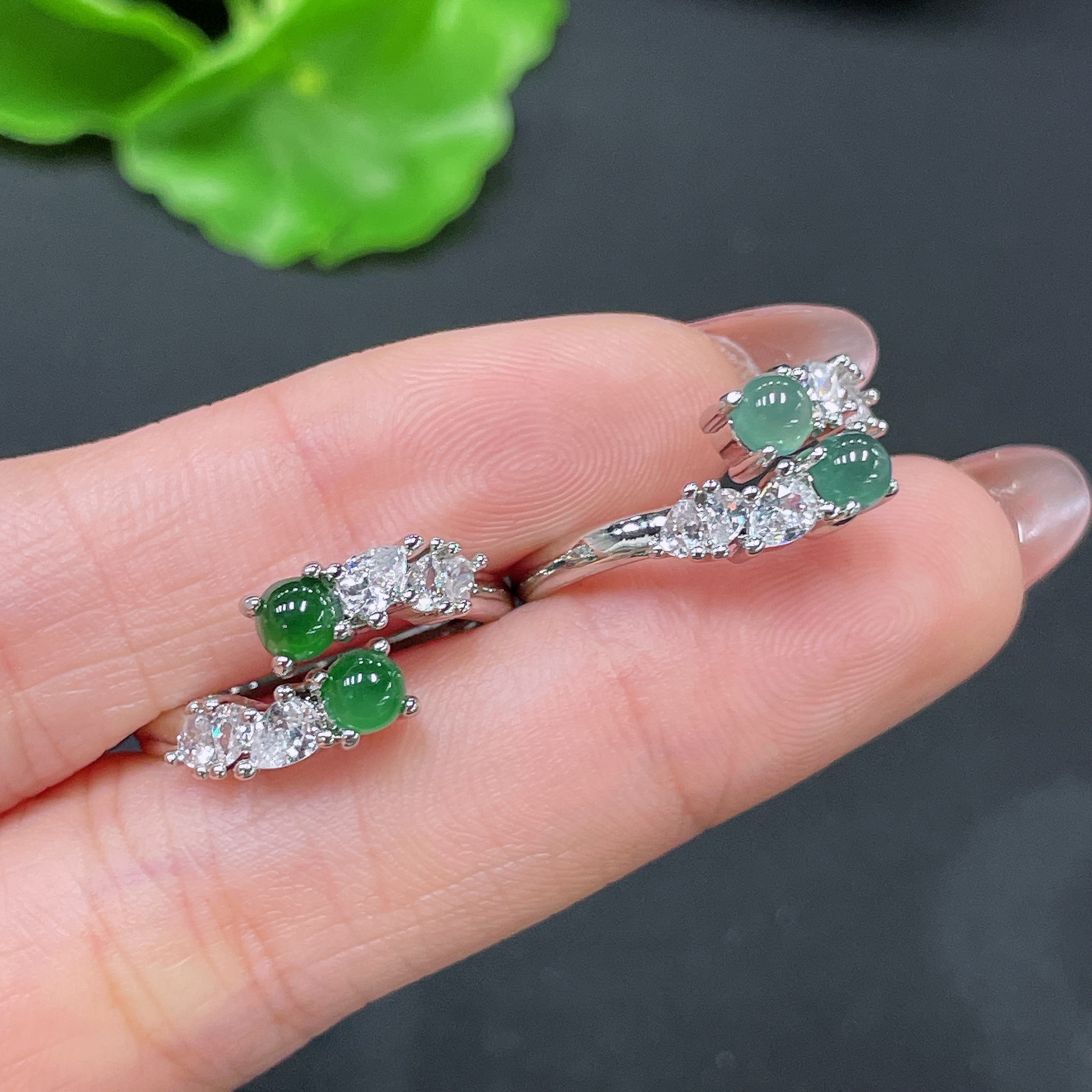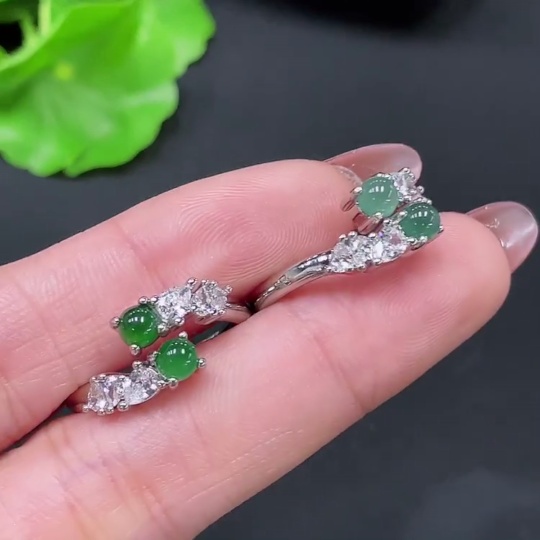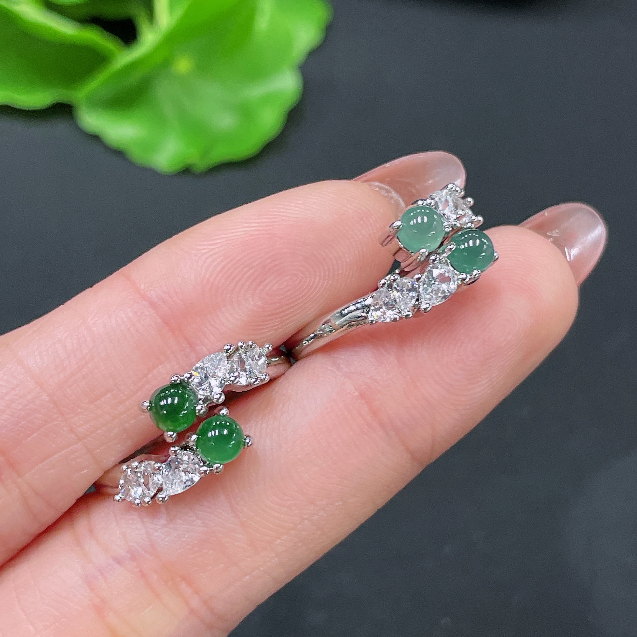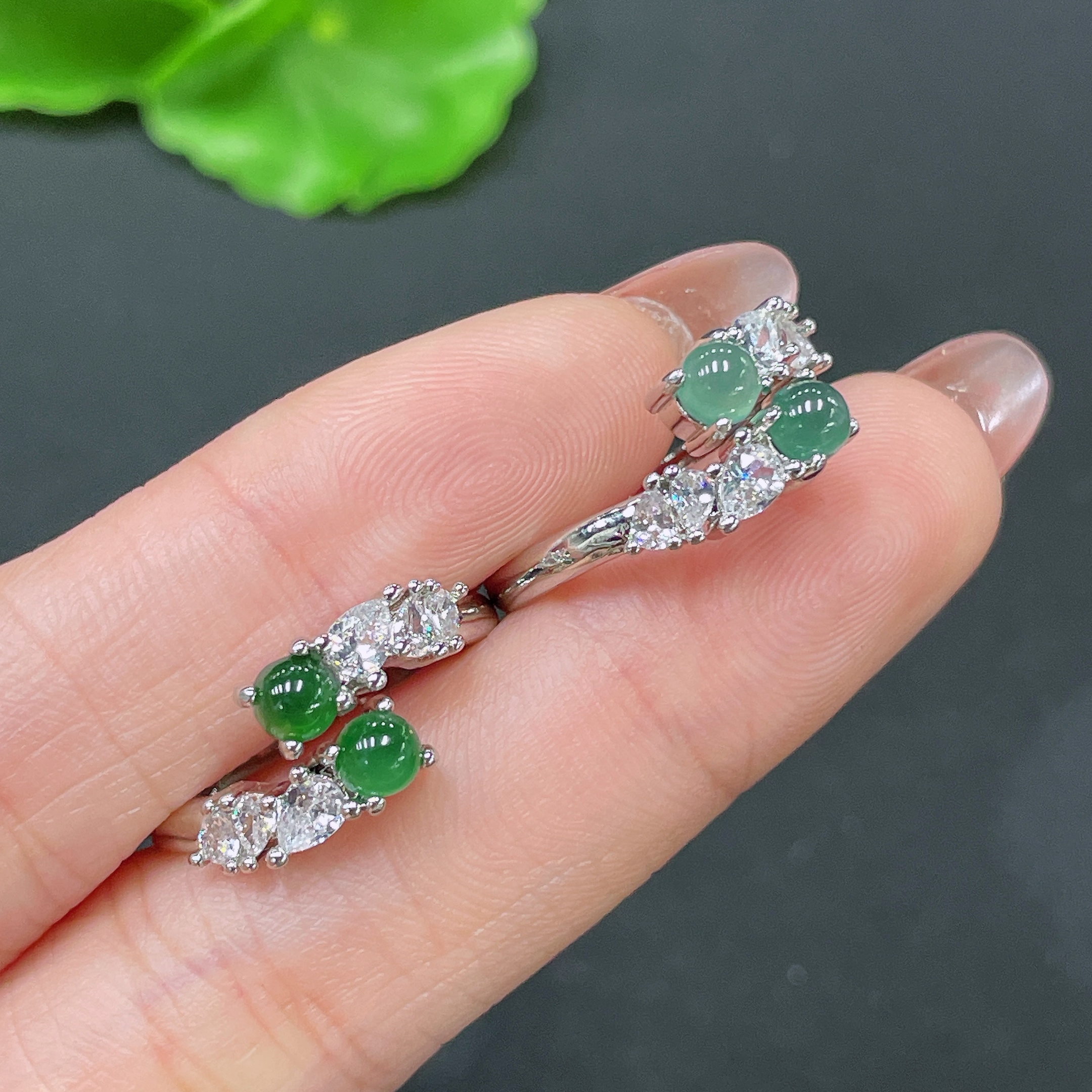 Jadeite Cabochon Inlaid Ring Non-Gold Adjustable