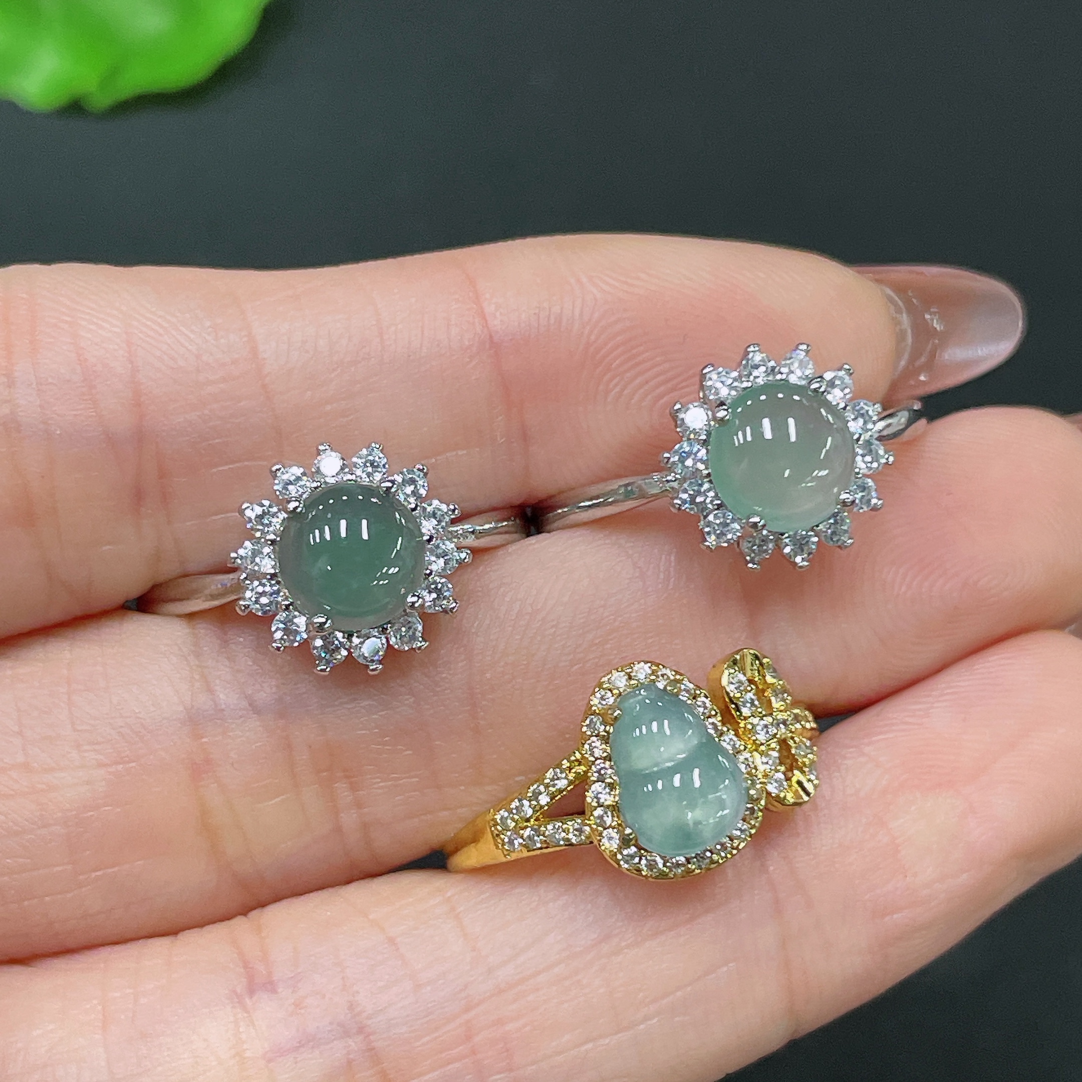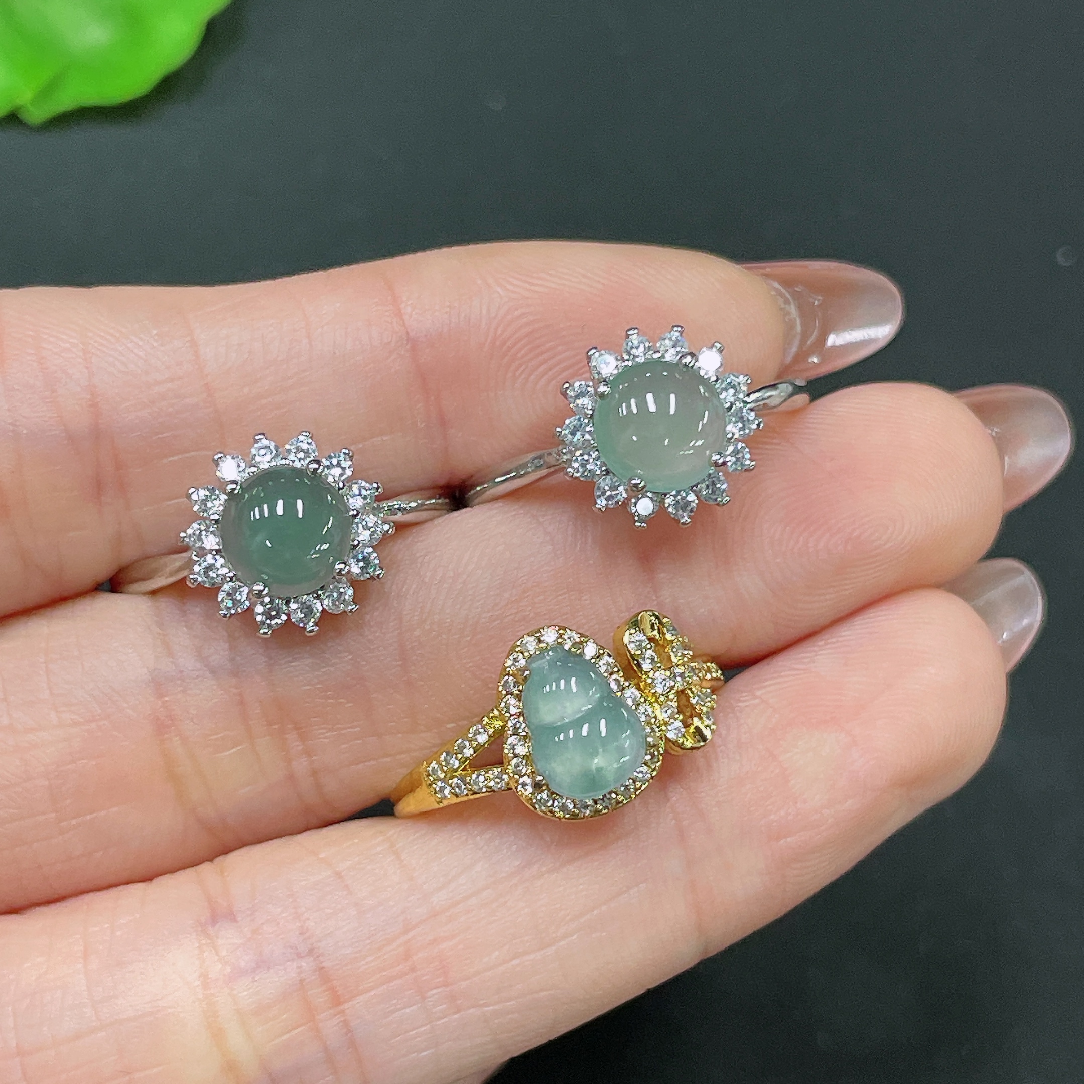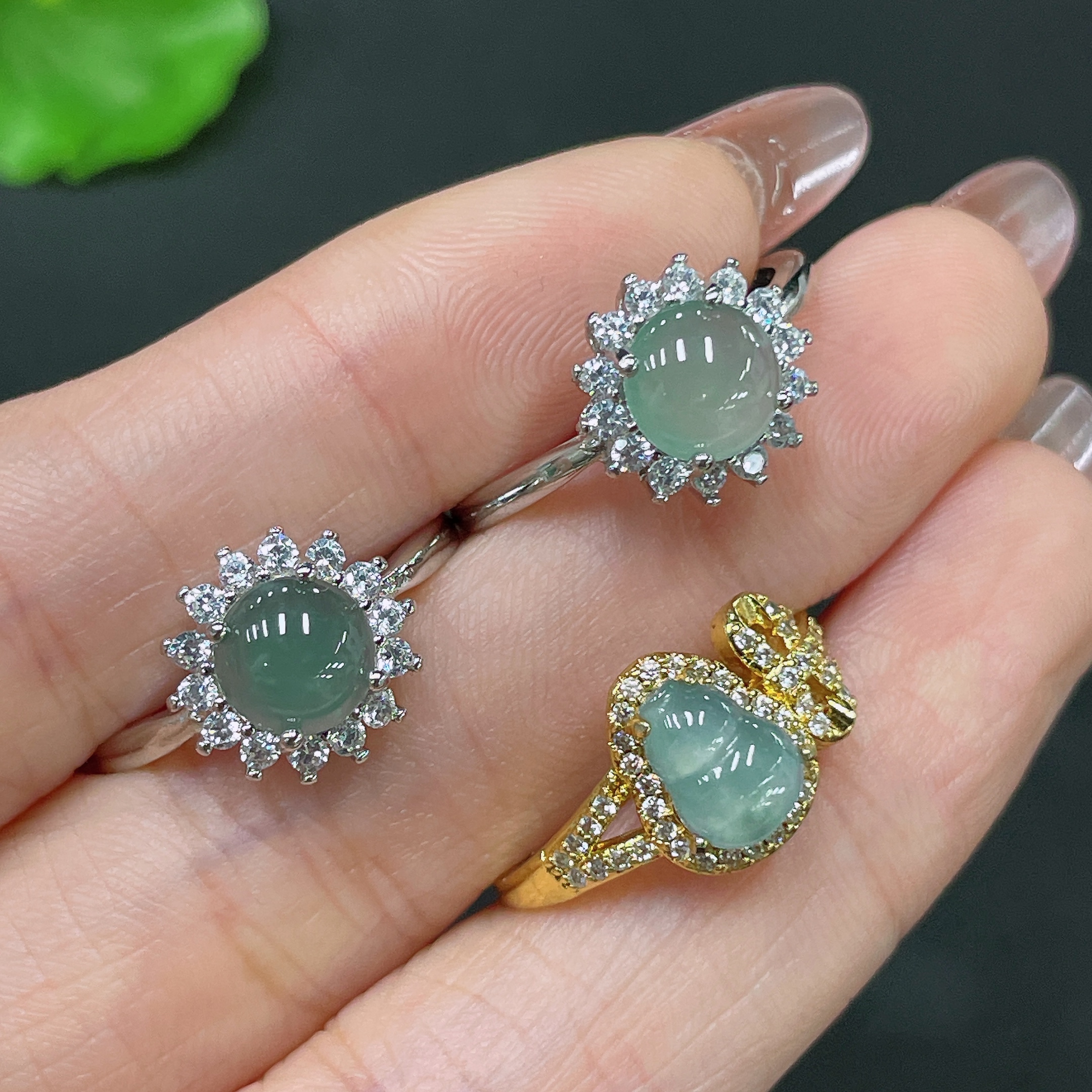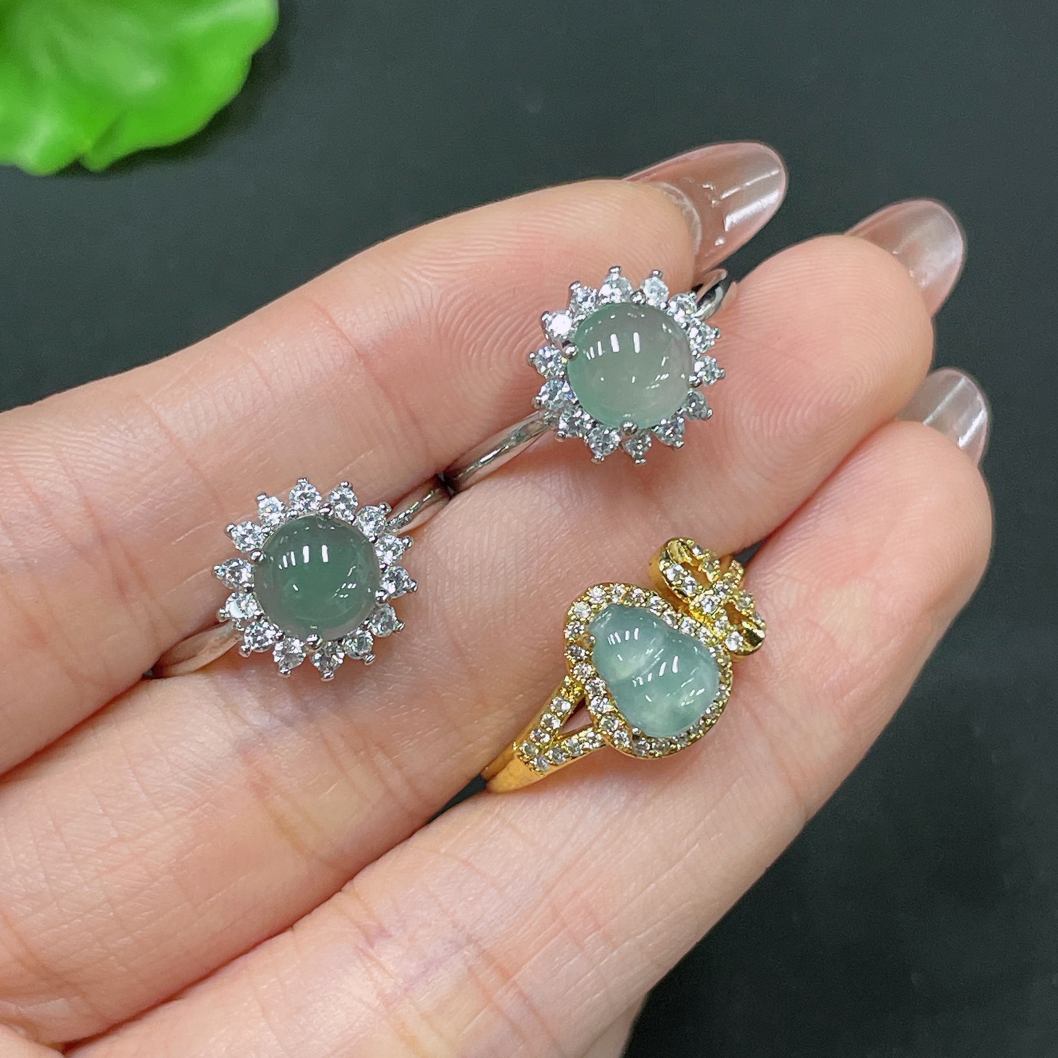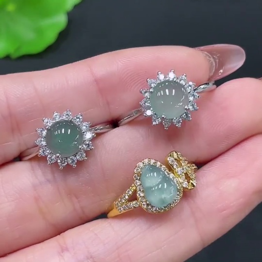 Jadeite Cabochon Inlay Ring Non-Gold Adjustable