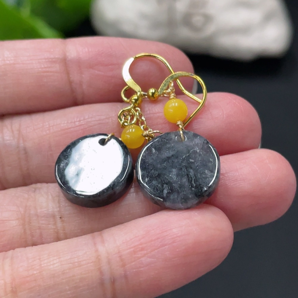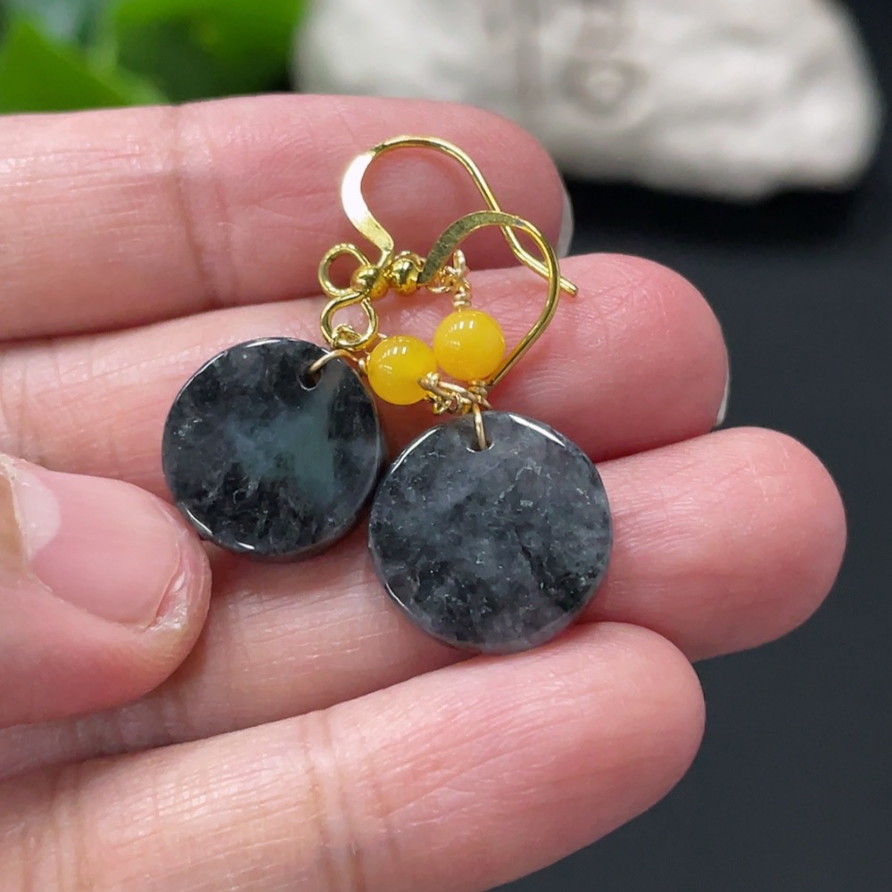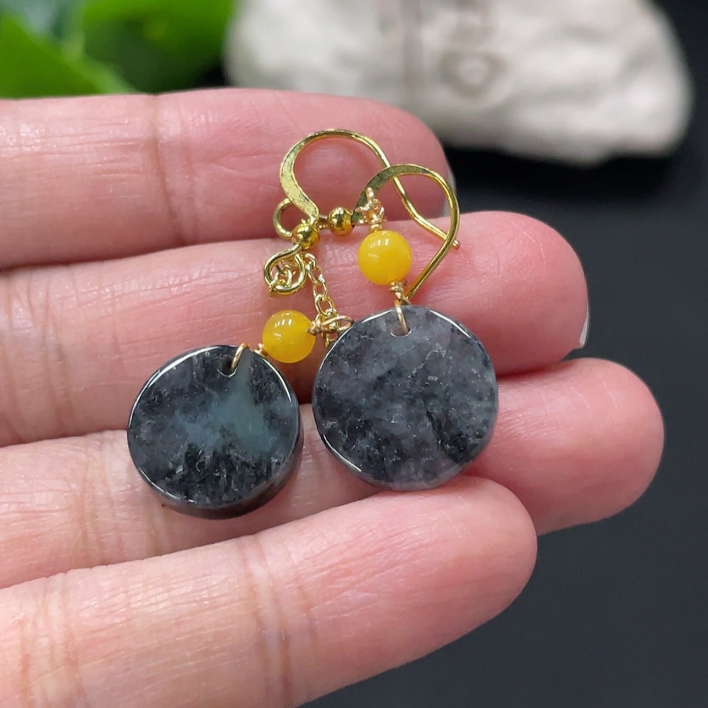 Jadeite Inlaid Earrings Non-Gold Total Weight Approximately 3.7g Beads Non-Grade A
