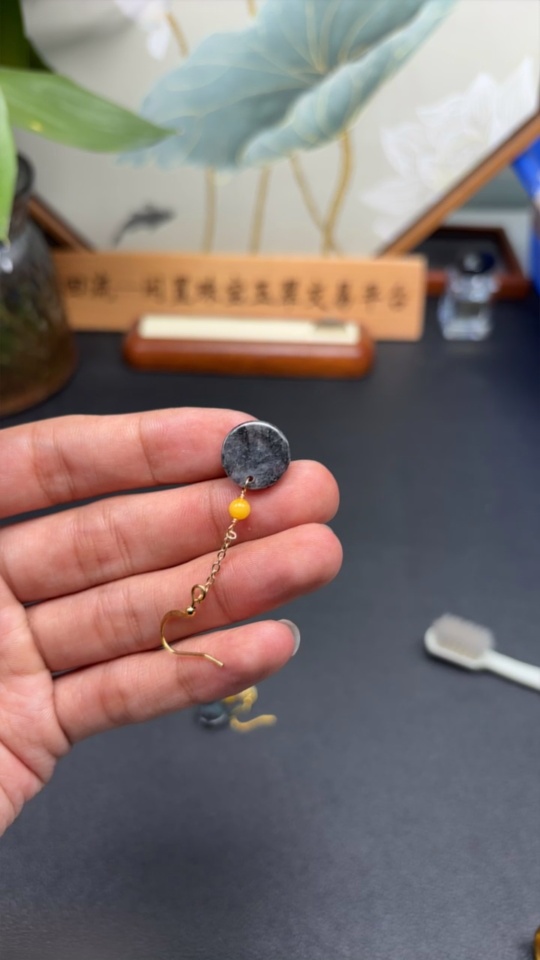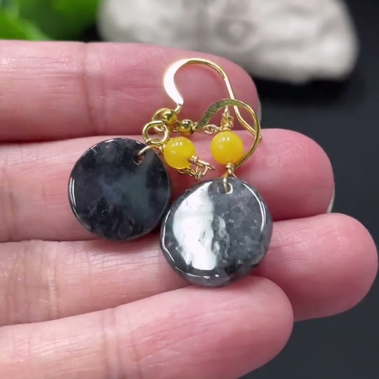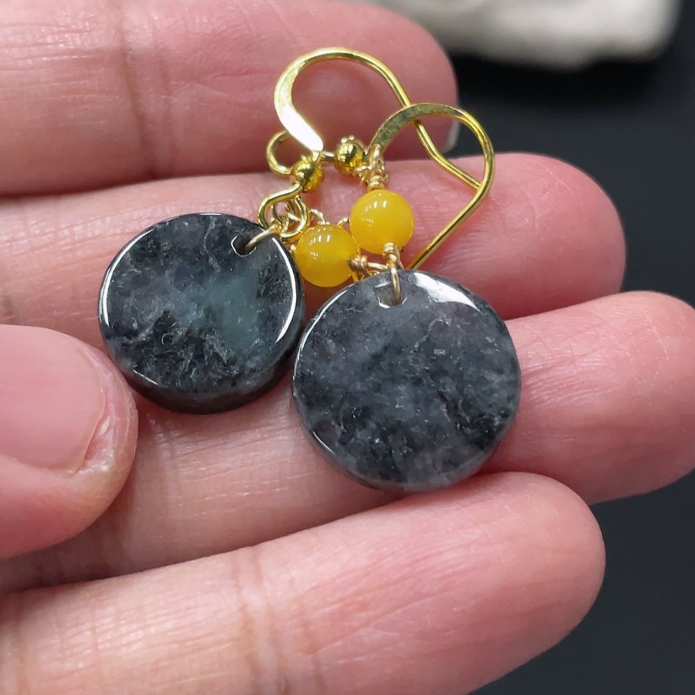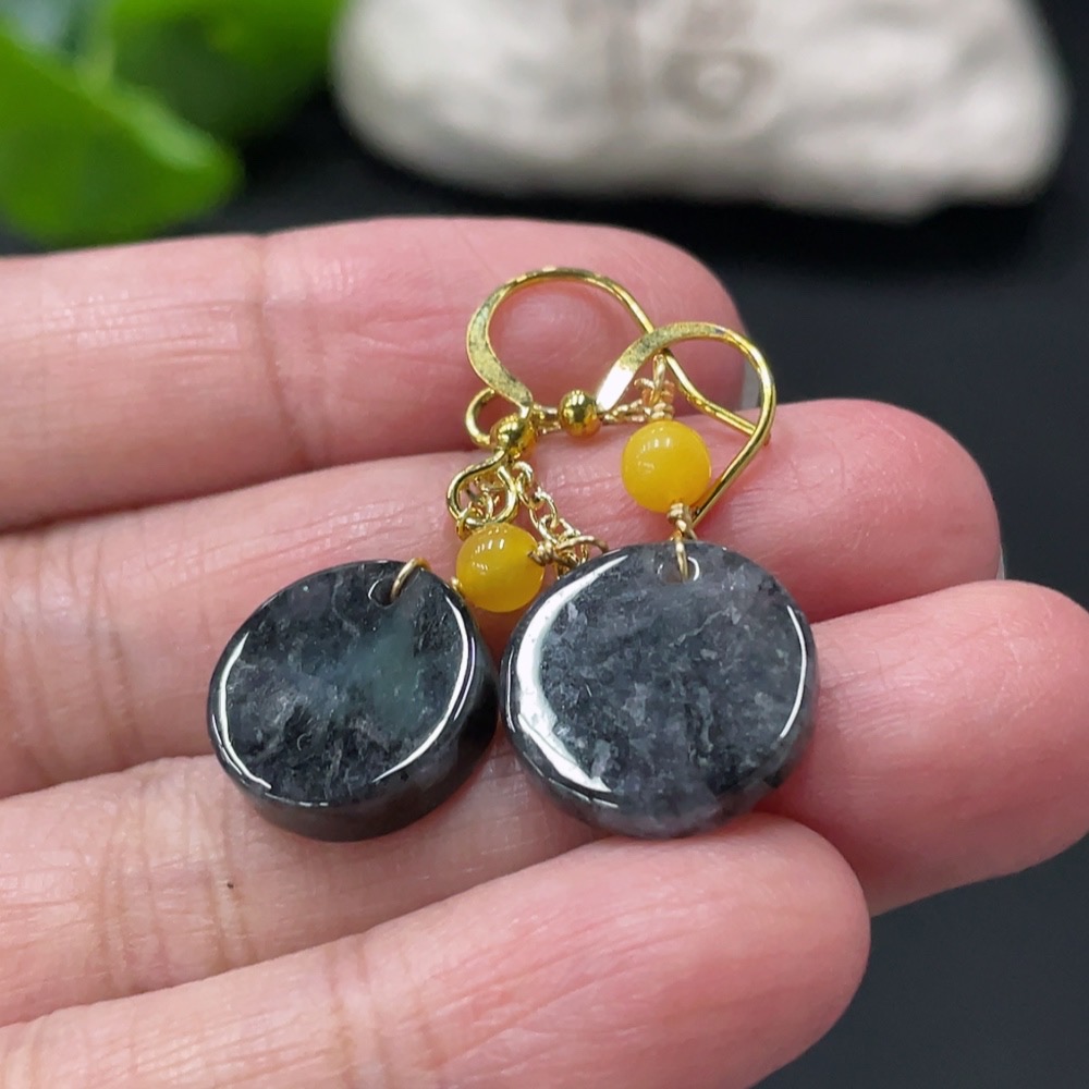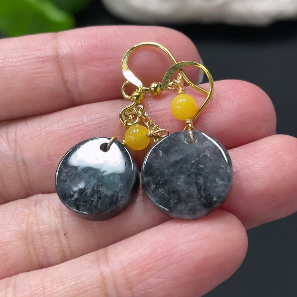 Jadeite Inlaid Earrings Non-Gold Total Weight Approximately 3.7g Beads Non-Grade A