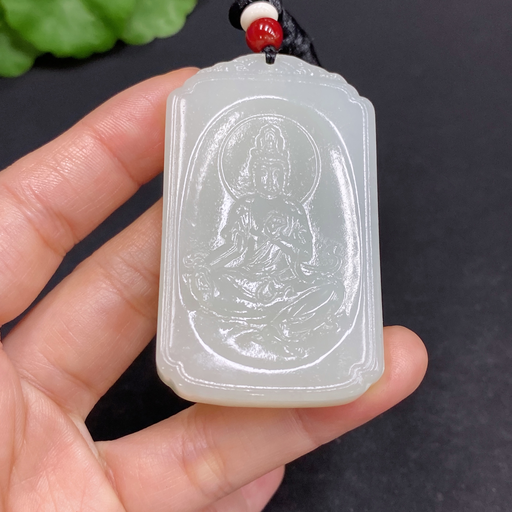 Hetian Jade Pendant Guanyin Gross Weight Approx. (Incl. Cord) 50.2g