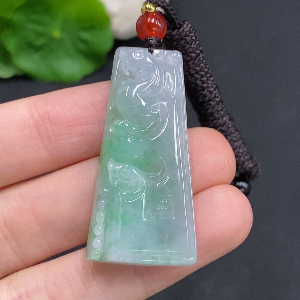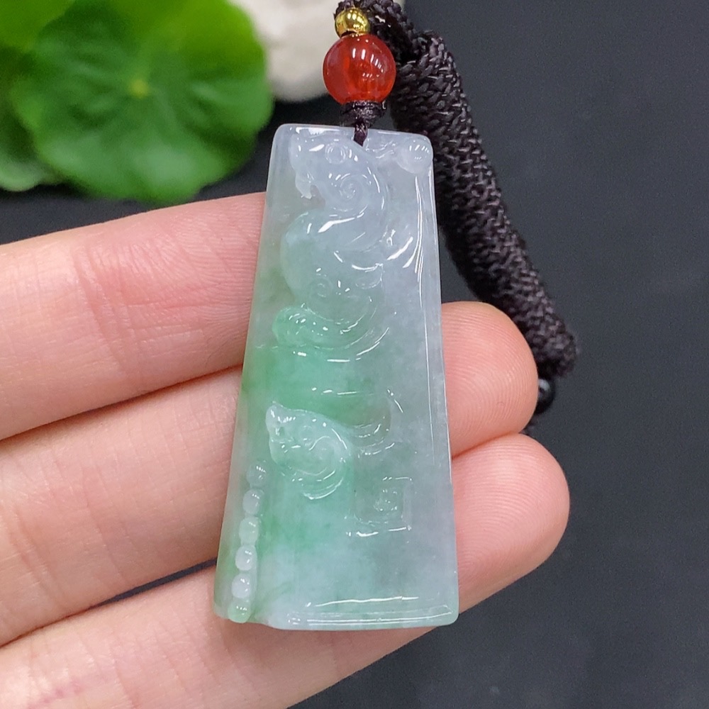 Jadeite Dragon Pendant Total Weight Approx. 11.7g (Including Rope Weight)