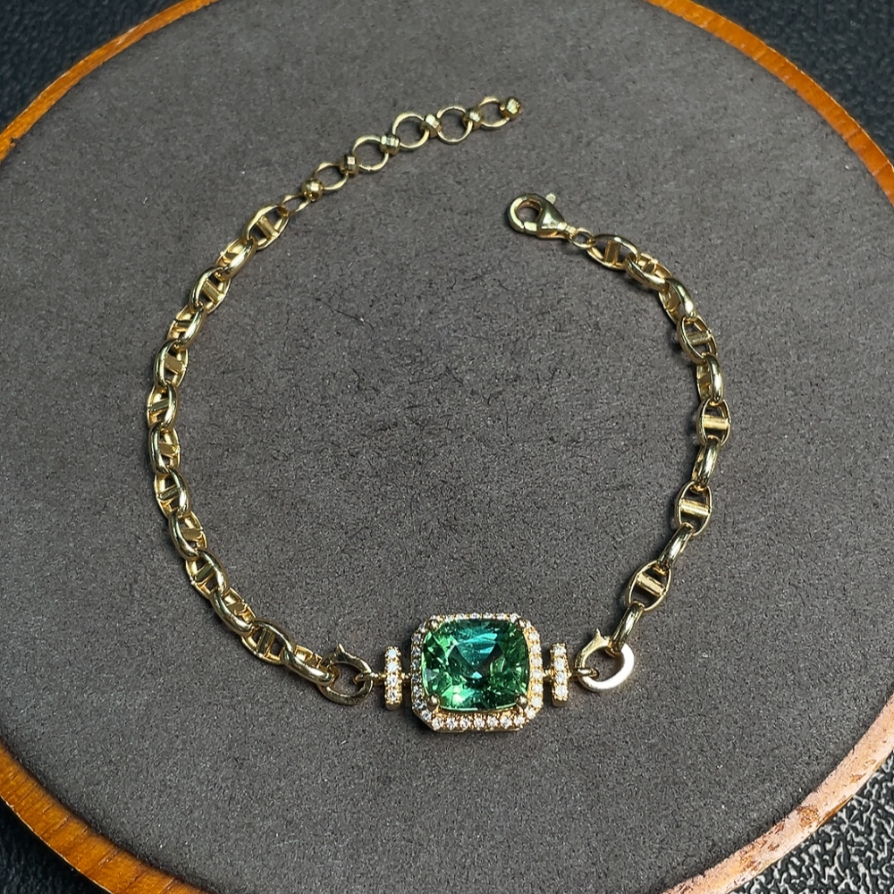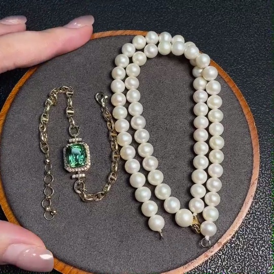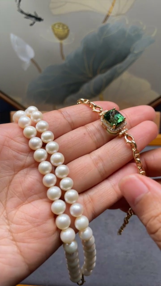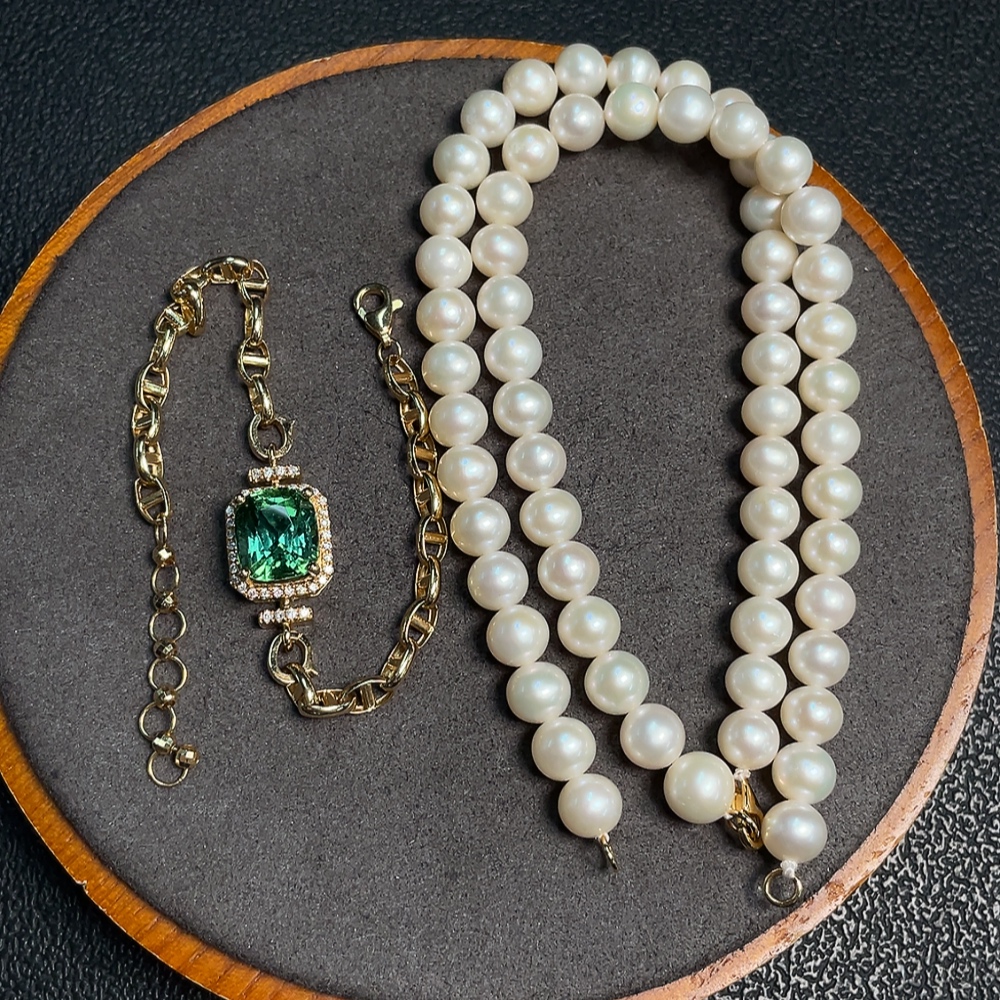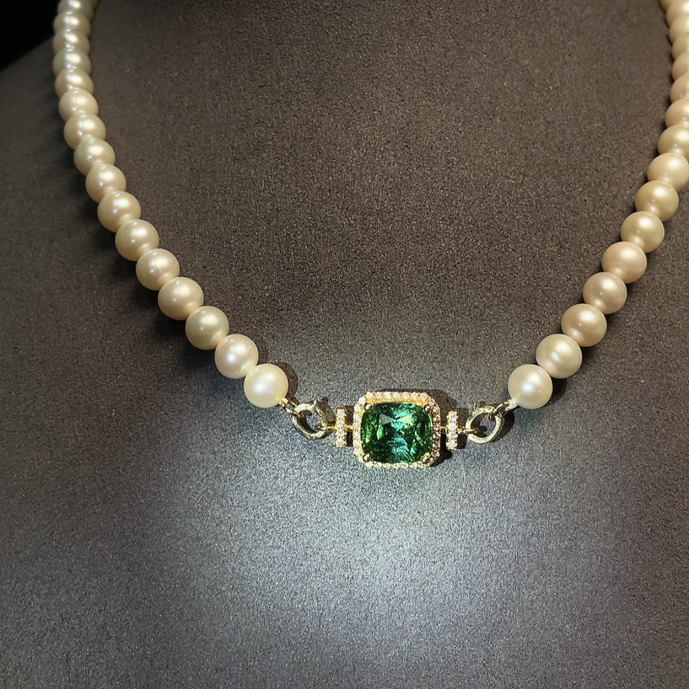 Pearl + Tourmaline Necklace & Bracelet Convertible with Diamonds in 18K Gold, Total Weight Approx. 32.14g, Stone Size About 6.7mm