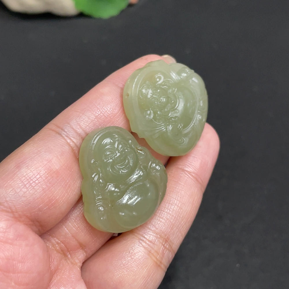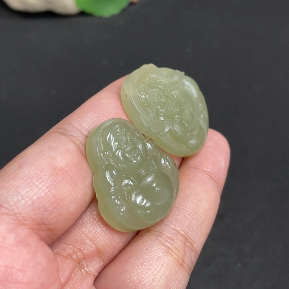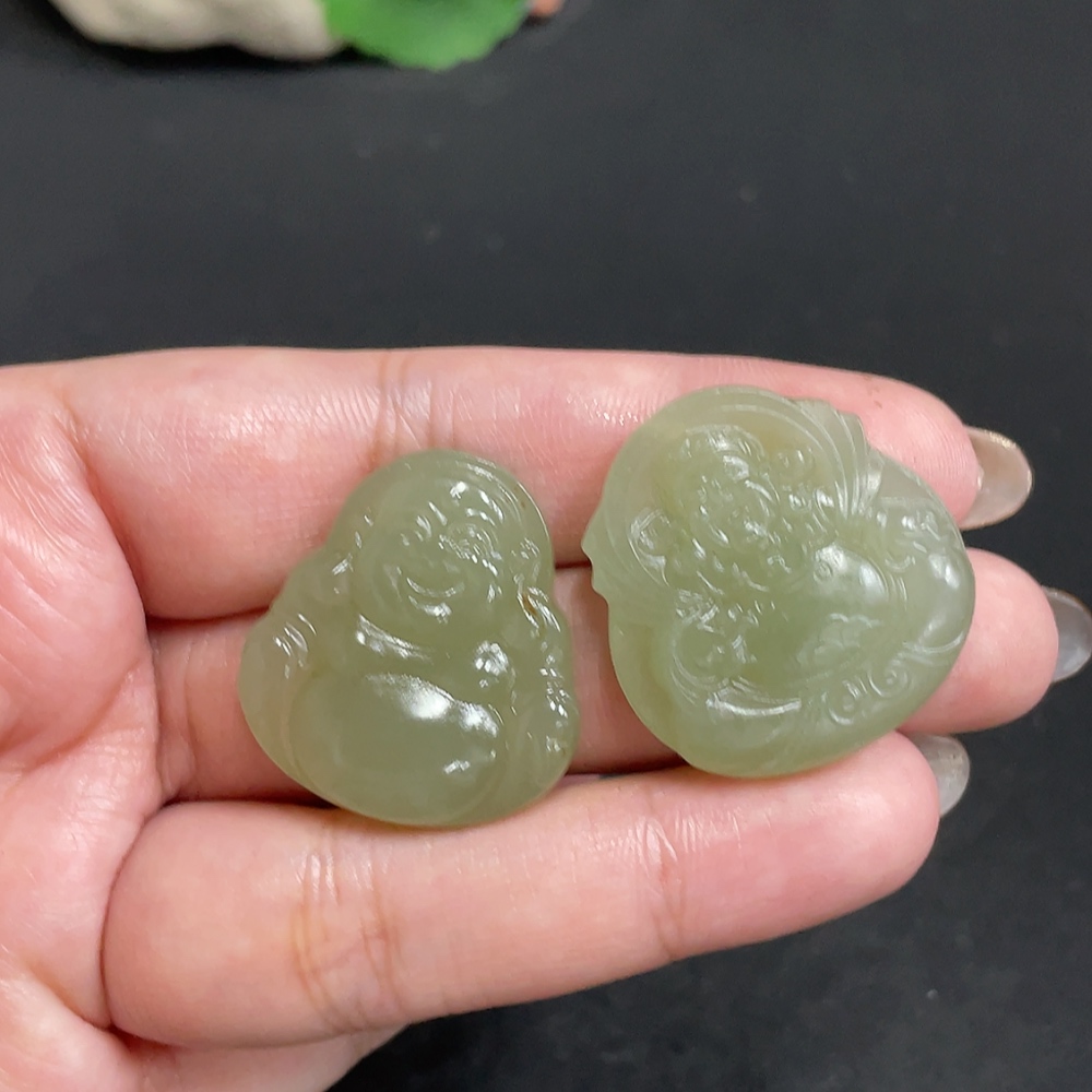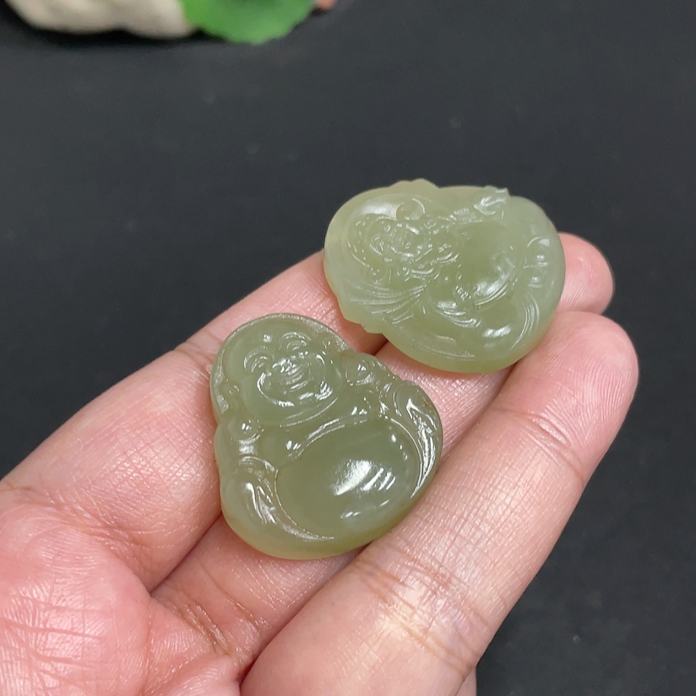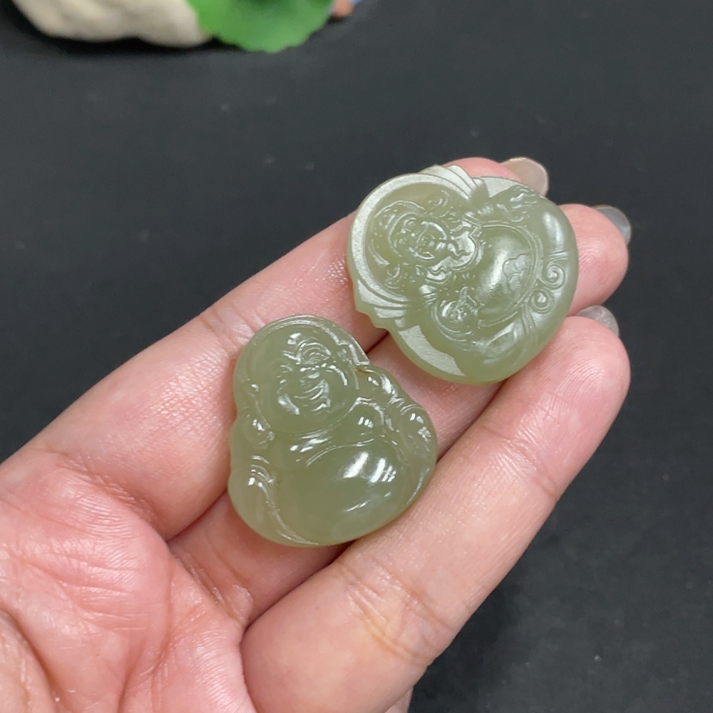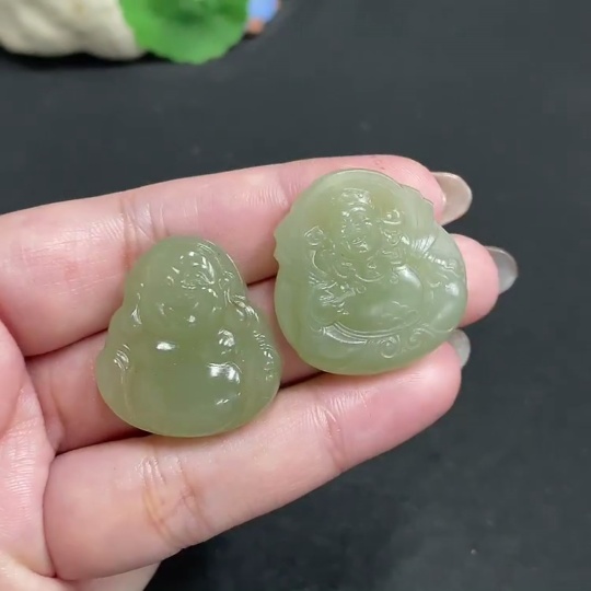 Hetian Jade Pendant - God of Wealth + Buddha, Total Weight Approx. 20.4g, Undetermined Skin Color Origin