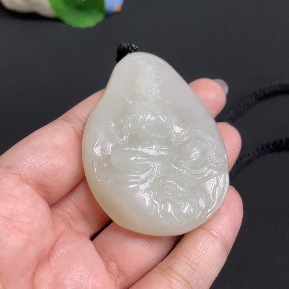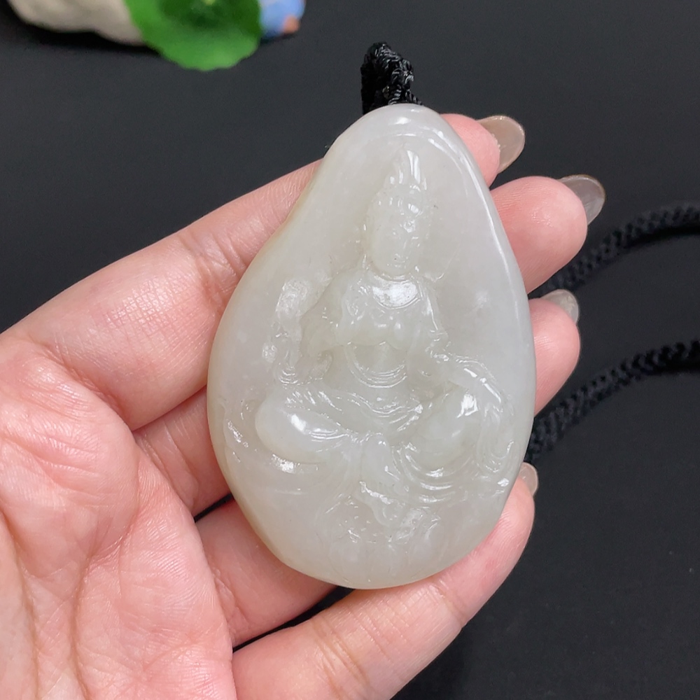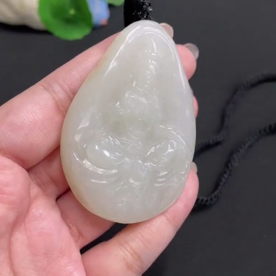Trezaar - Hetian Jade Seed Material Pendant Guanyin Total Weight approx. [with rope] 62.7g