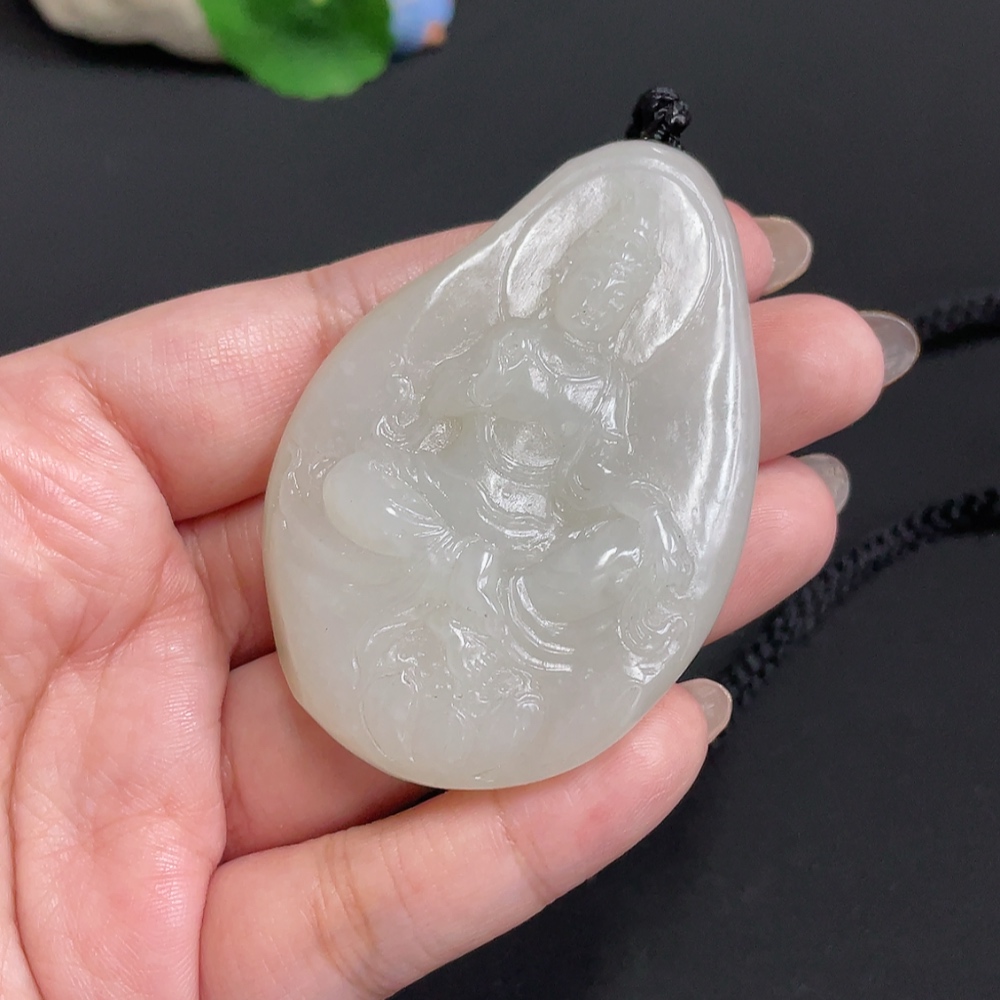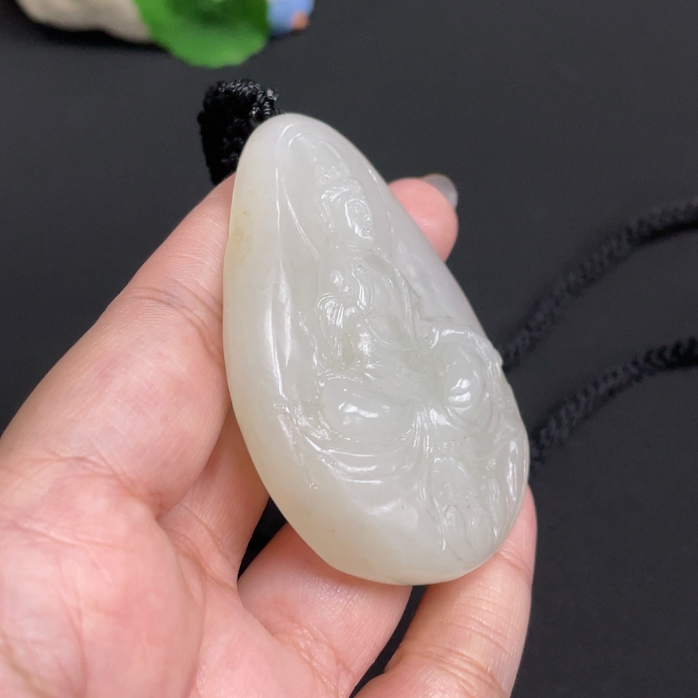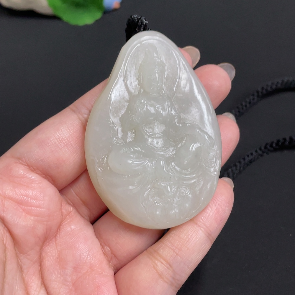 Hetian Jade Seed Material Pendant Guanyin Total Weight approx. [with rope] 62.7g