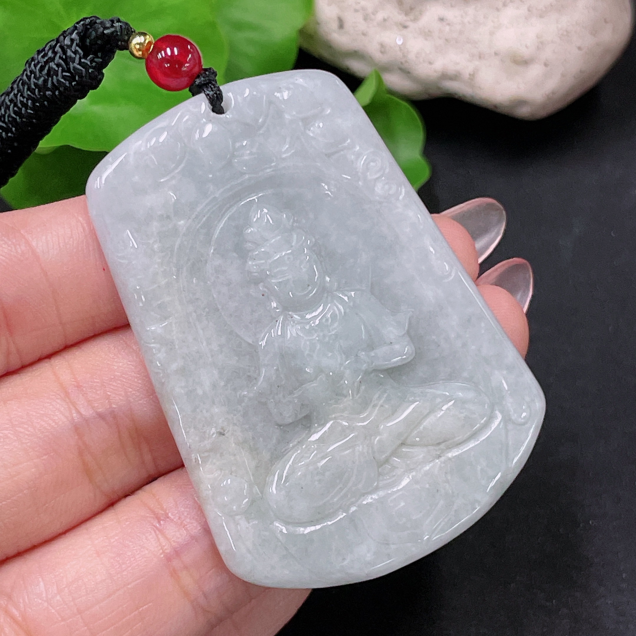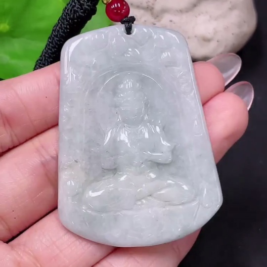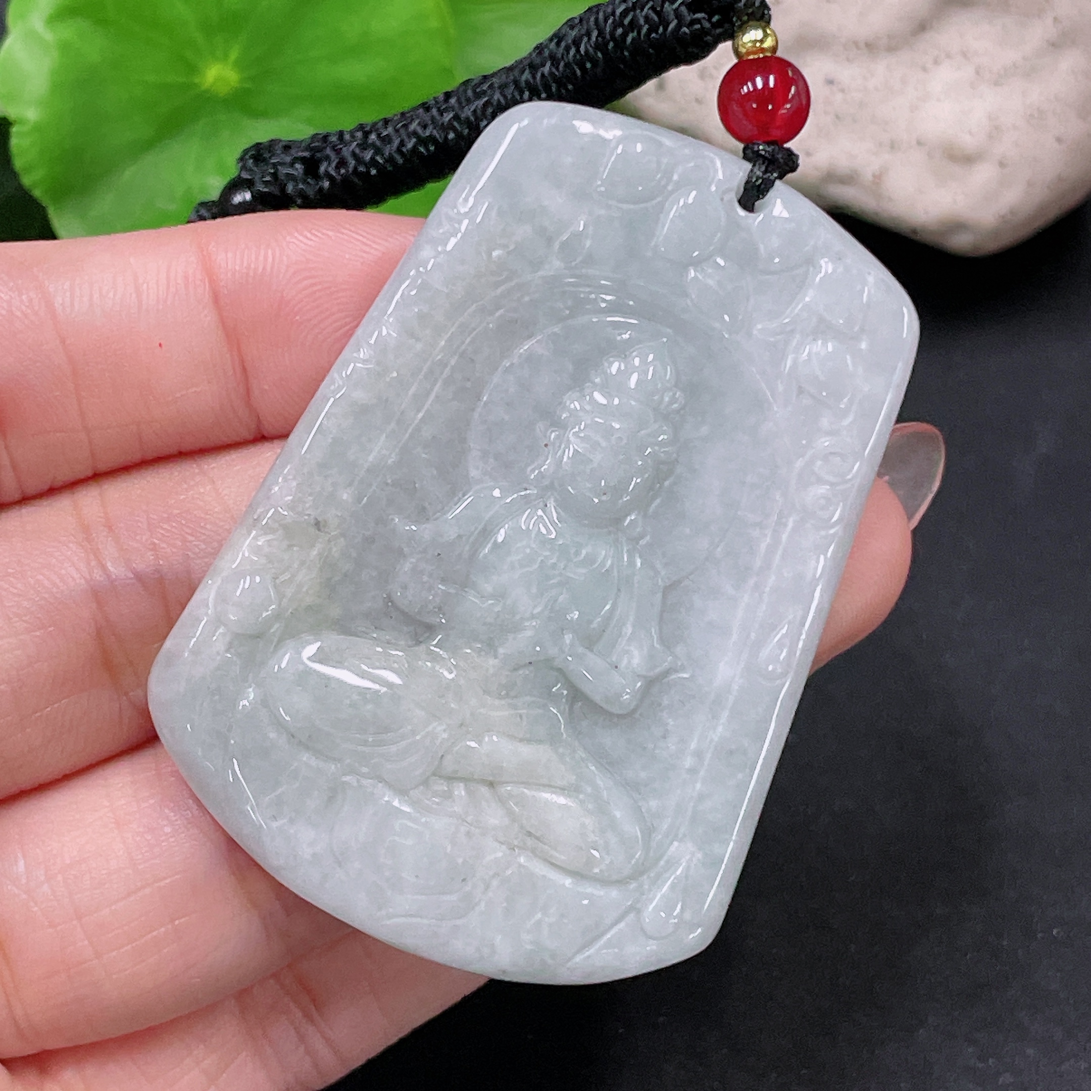 Jadeite Guanyin Pendant Total weight with string approx. 23.2g (Inlaid stones non-A)