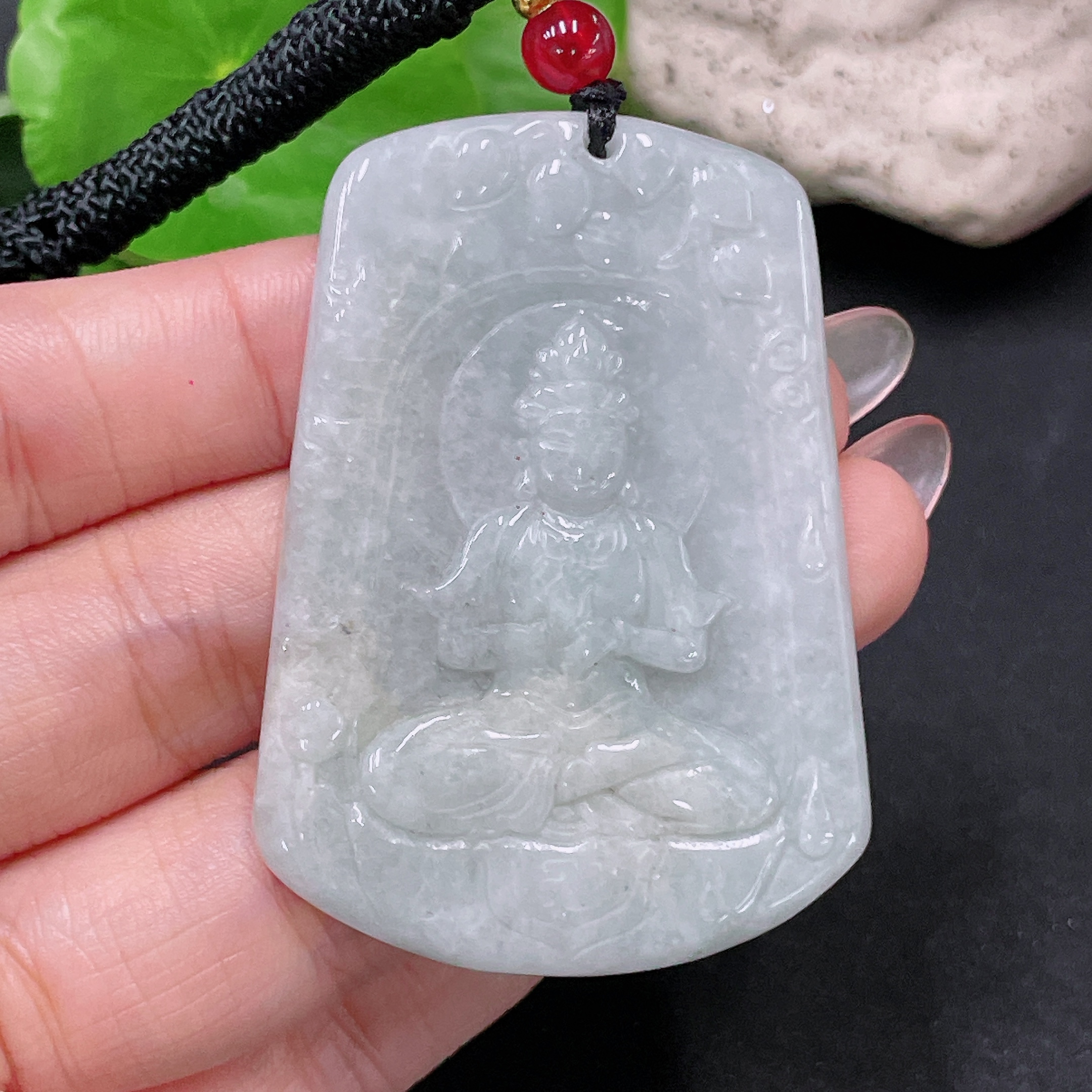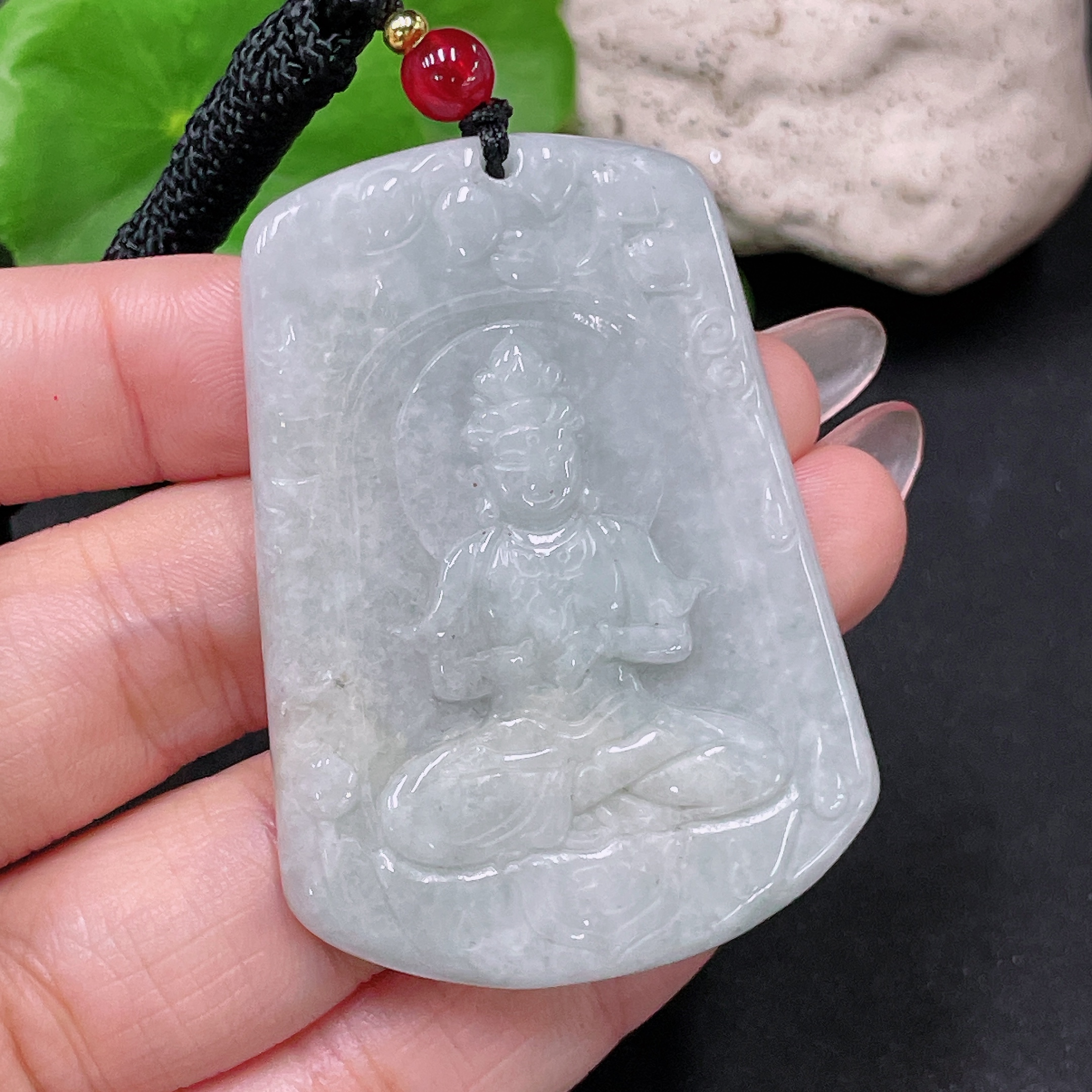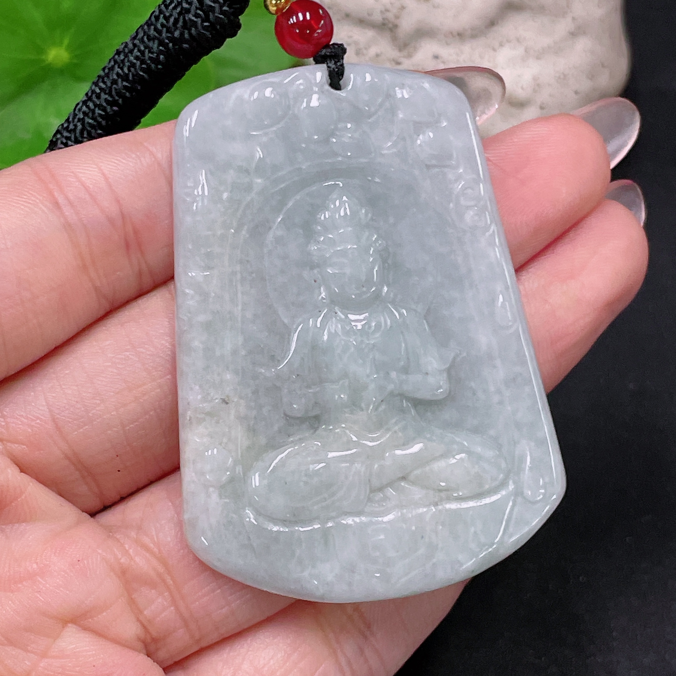 Jadeite Guanyin Pendant Total weight with string approx. 23.2g (Inlaid stones non-A)